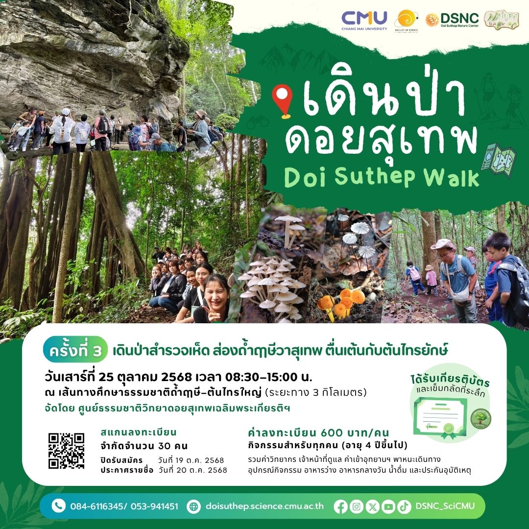 ชมถ้ำฤาษีวาสุเทพตำนานแห่งดอยสุเทพ เดินเล่นในป่าสำรวจเห็ดนานาชนิด แล้วไปตื่นตาตื่นใจกับต้นไทรใหญ่ยักษ์อายุ 400 กว่าปี