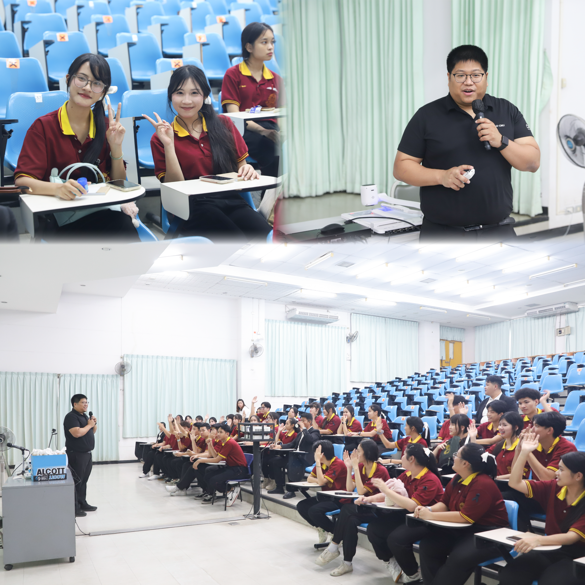 วันที่ 5 พฤศจิกายน 2568 ผศ.ดร.ศุภณัฐ ชัยดี ผู้ช่วยคณบดีคณะวิทยาศาสตร์ กล่าวต้อนรับพร้อมกับบรรยายแนะนำหลักสูตร และภาพรวมการเรียนการสอนของคณะวิทยาศาสตร์ ให้แก่นักเรียนระดับมัธยมศึกษาจากโรงเรียนสว่างบริบูรณ์วิทยา จ.ชลบุรี ที่มาเยี่ยมชมและศึกษาดูงานด้านการเรียนการสอนของคณะฯ ณ ห้อง SCB3100 อาคารเรียนรวมและปฏิบัติการ 3 คณะวิทยาศาสตร์ เพื่อให้นักเรียนมีข้อมูลประกอบการตัดสินใจศึกษาต่อระดับอุมดมศึกษา นอกจากนี้ คณะวิทยาศาสตร์ยังได้เปิดโอกาสให้นักเรียนเข้าเยี่ยมชมบรรยากาศห้องเรียนจริง ณ ภาควิชาธรณีวิทยาและภาควิชาฟิสิกส์และวัสดุศาสตร์อีกด้วย
