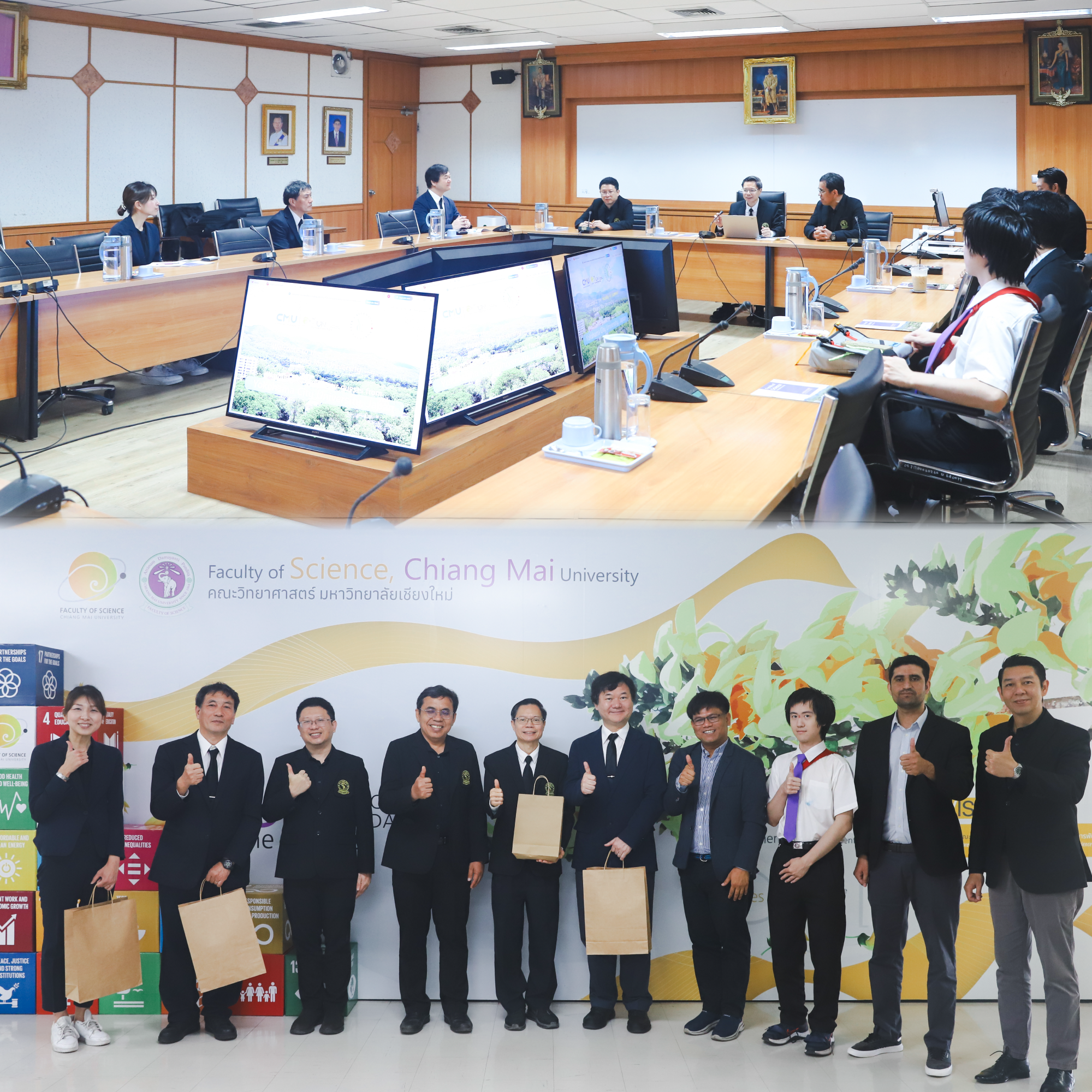 รองศาสตราจารย์ ดร.ปิยะพงศ์ เนียมทรัพย์ คณบดีคณะวิทยาศาสตร์ พร้อมด้วยผู้บริหารและบุคลากร ร่วมให้การต้อนรับอาคันตุกะจาก Yokohama City University ประเทศญี่ปุ่น ซึ่งประกอบด้วย Prof. Dr. Shinji Nonose, Prof. Dr. Masanori Tachikawa และ Ms. Chie Tanaka ในโอกาสเข้าพบปะเพื่อเยี่ยมคาวระ และหารือแลกเปลี่ยนความคิดเห็นทางวิชาการ ในวันที่ 23 มกราคม 2569 ณ ห้องประชุมบัวเรศ คำทอง (ห้องประชุม 2) ชั้น 2 อาคาร 40 ปี คณะวิทยาศาสตร์