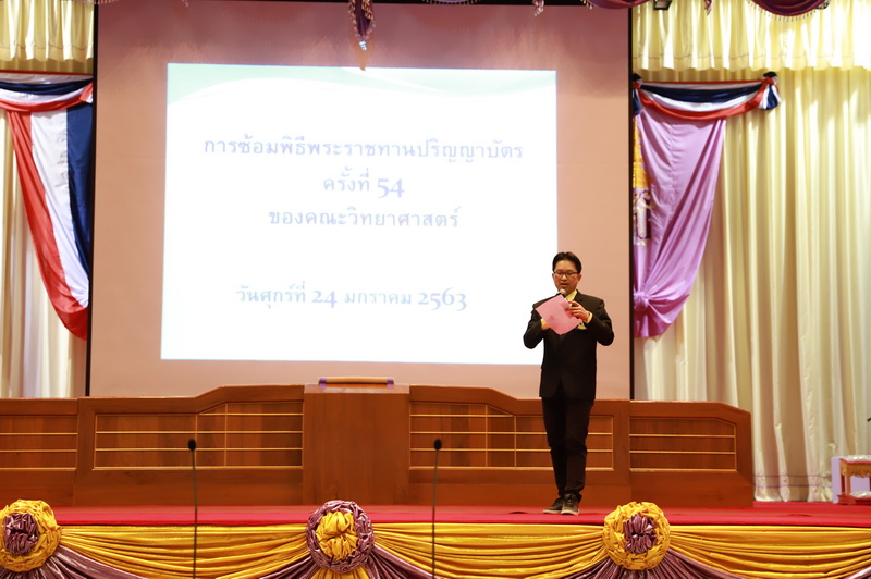 ศาสตราจารย์ ดร.ธรณินทร์ ไชยเรืองศรี คณบดีคณะวิทยาศาสตร์ และคุณวรานนท์ หล้าพระบาง นายกสมาคมศิษย์เก่าคณะวิทยาศาสตร์ กล่าวต้อนรับและแสดงความยินดีกับบัณฑิตใหม่ของคณะวิทยาศาสตร์ที่จะเข้ารับพระราชทานปริญญาบัตร ครั้งที่ 54 ของมหาวิทยาลัยเชียงใหม่ ในการฝึกซ้อมเข้ารับพระราชทานปริญญาบัตรของบัณฑิตคณะวิทยาศาสตร์ เมื่อวันที่ 24 มกราคม 2563 ณ หอประชุมมหาวิทยาลัยเชียงใหม่ โดยในปีนี้ คณะวิทยาศาสตร์มีผู้สำเร็จการศึกษาทั้งดุษฎีบัณฑิต มหาบัณฑิต และบัณฑิต มีสิทธิ์เข้ารับพระราชทานปริญญาบัตร จำนวน 633 คน