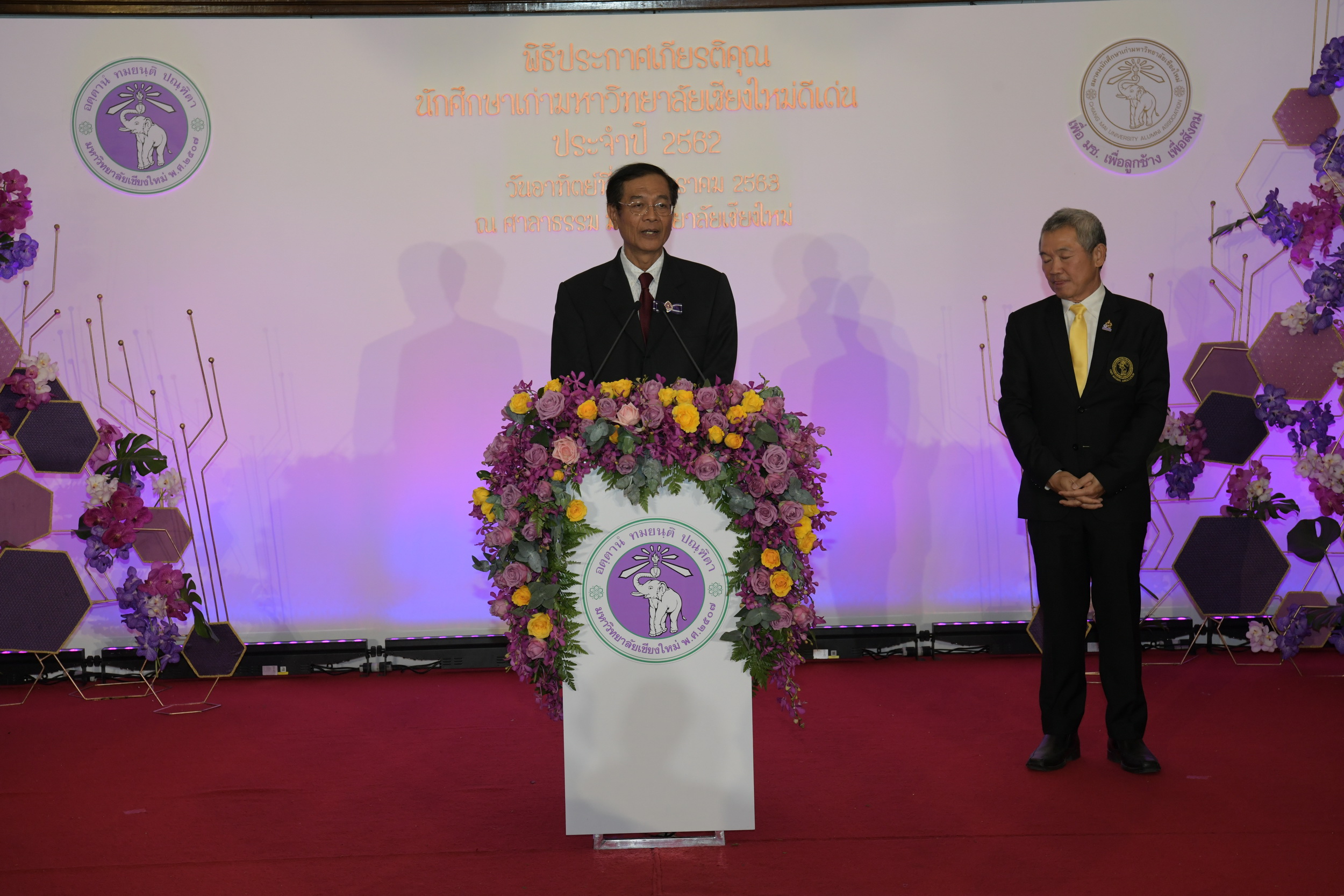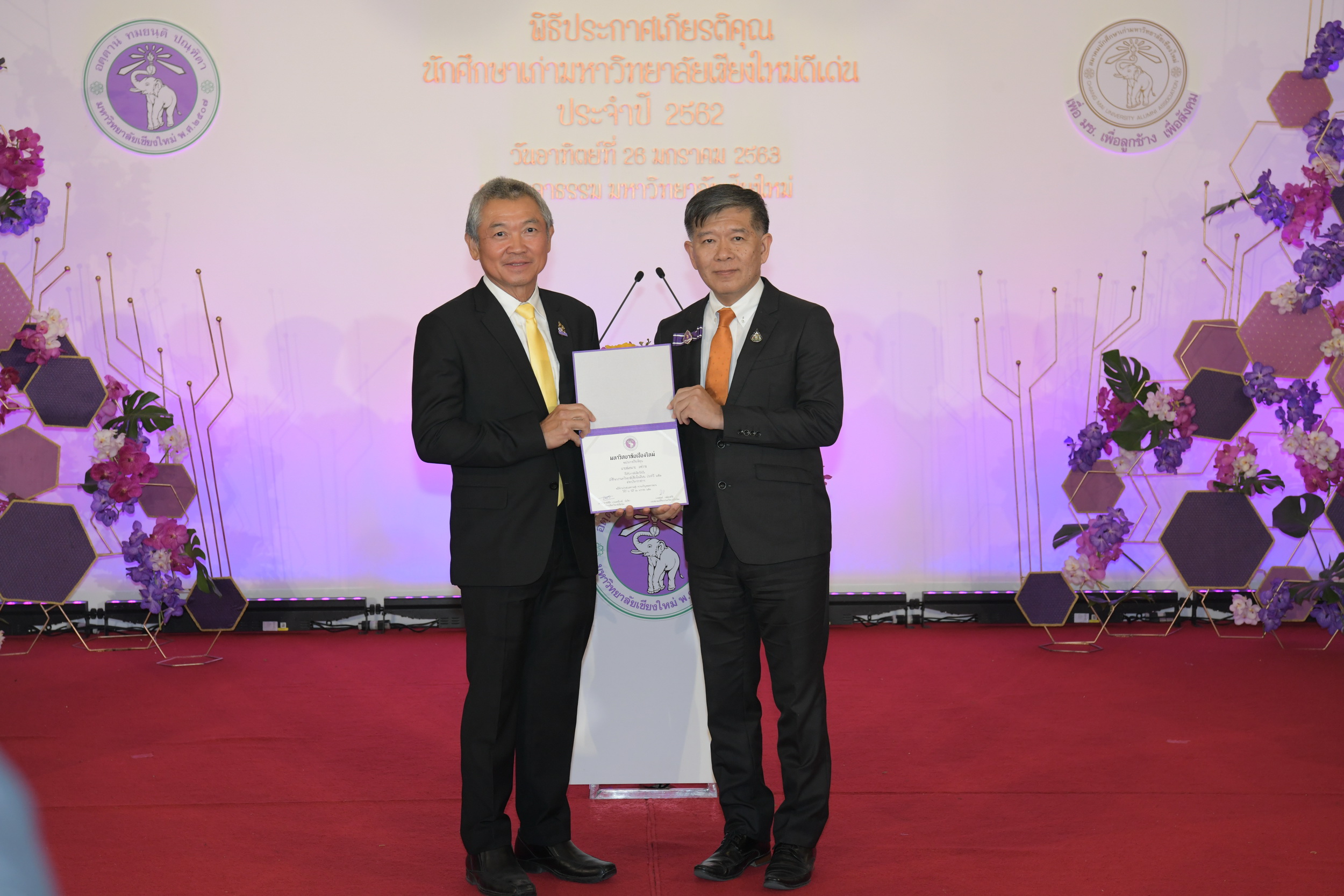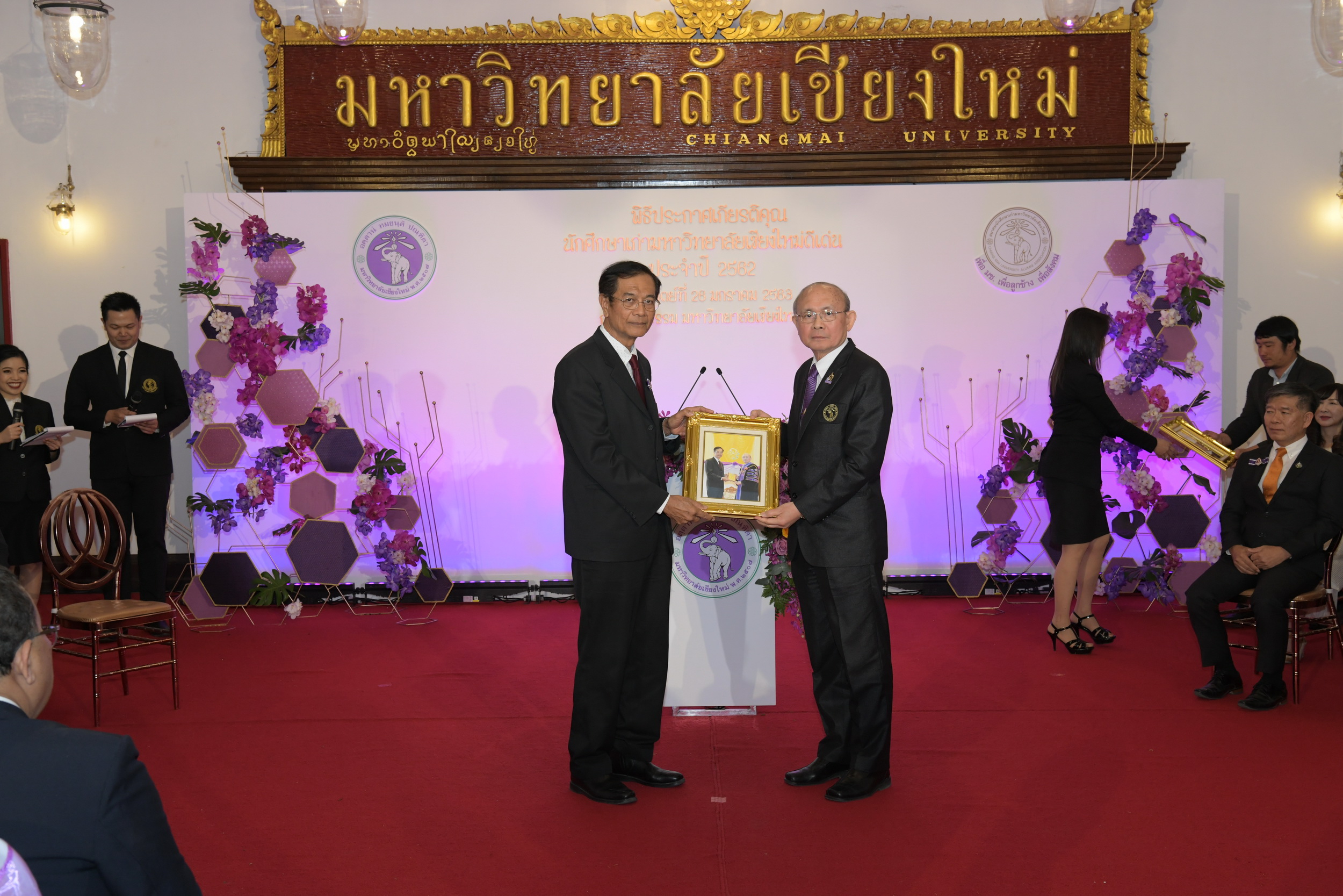 โดยทั้ง ๒ ท่าน ได้เข้ารับการประกาศเกียรติคุณในวันซ้อมใหญ่ พิธีพระราชทานปริญญาบัตร ครั้งที่ ๕๔ ของมหาวิทยาลัยเชียงใหม่ ณ หอประชุมมหาวิทยาลัยเชียงใหม่ และเข้าร่วมงานประกาศเกียรติคุณนักศึกษาเก่าดีเด่น มหาวิทยาลัยเชียงใหม่ ณ ศาลาธรรม มหาวิทยาลัยเชียงใหม่ วันที่ ๒๖ มกราคม ๒๕๖๓
