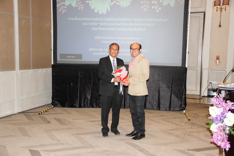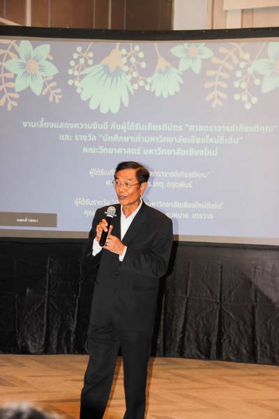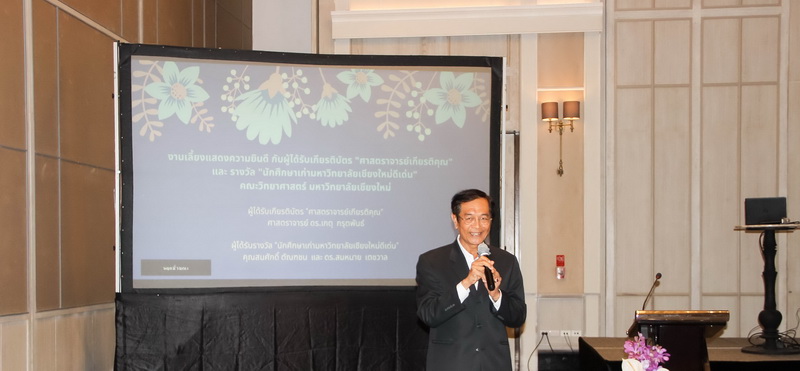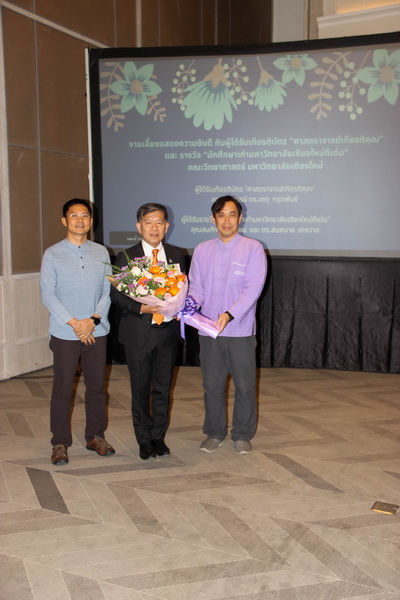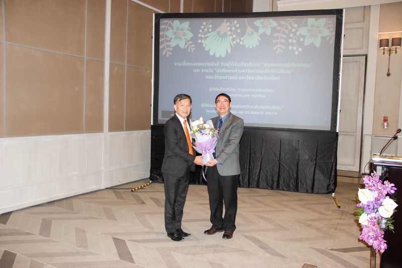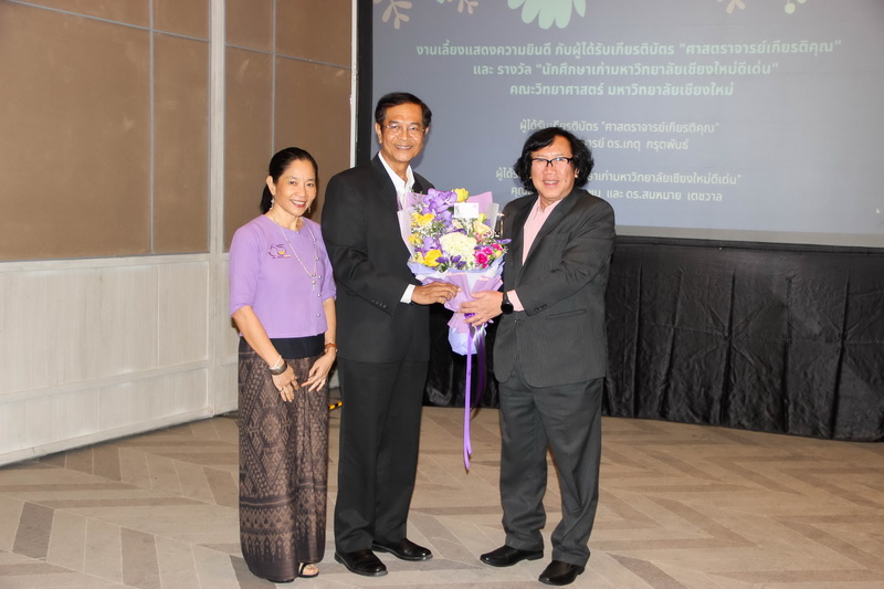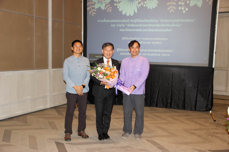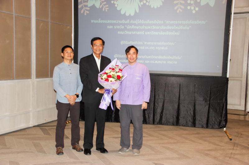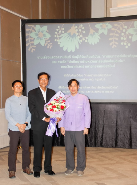 เมื่อวันที่ 26 มกราคม 2563 คณะวิทยาศาสตร์จัดงานแสดงความยินดีกับนักศึกษาเก่าดีเด่น และอาจารย์ที่ได้รับการแต่งตั้งเป็นศาสตราจารย์เกียรติคุณ ณ ONE NIMMAN ประกอบด้วย คุณสมศักดิ์ ตัณฑชน นักศึกษาเก่ามหาวิทยาลัยเชียงใหม่ดีเด่น สาขาบริหารธุรกิจ ตำแหน่งปัจจุบัน ประธานเจ้าหน้าที่บริหารกลุ่มบริษัท ชายน์นิ่งโกลด์ คุณสมหมาย เตชวาล นักศึกษาเก่ามหาวิทยาลัยเชียงใหม่ดีเด่น สาขาบริหารราชการ ตำแหน่งปัจจุบัน อธิบดีกรมทรัพยากรธรณี และศาสตราจารย์ ดร.เกตุ กรุดพันธ์ อาจารย์อาวุโส ประจำภาควิชาเคมี คณะวิทยาศาสตร์ ที่ได้รับการแต่งตั้งเป็นศาสตราจารย์เกียรติคุณ สาขาวิชาเคมี โดยมีศาสตราจารย์ ดร.ธรณินทร์ ไชยเรืองศรี คณบดีคณะวิทยาศาสตร์ พร้อมด้วยผู้บริหาร และบุคลากร ร่วมแสดงความยินดี