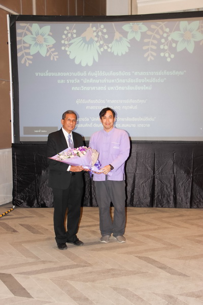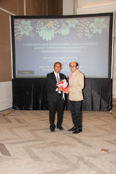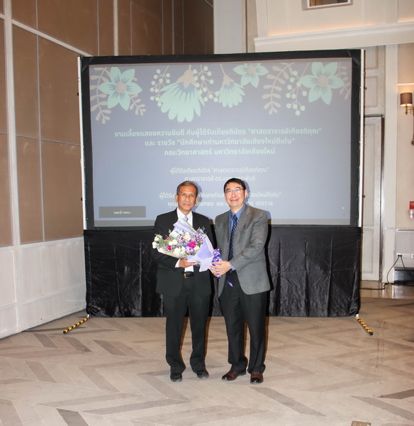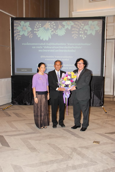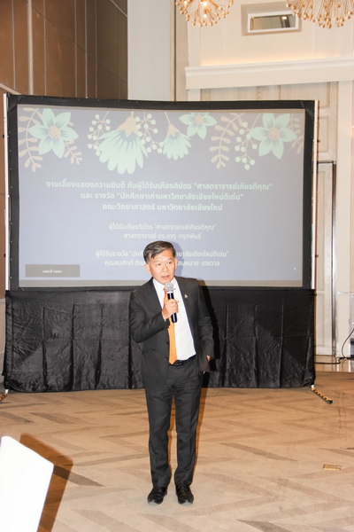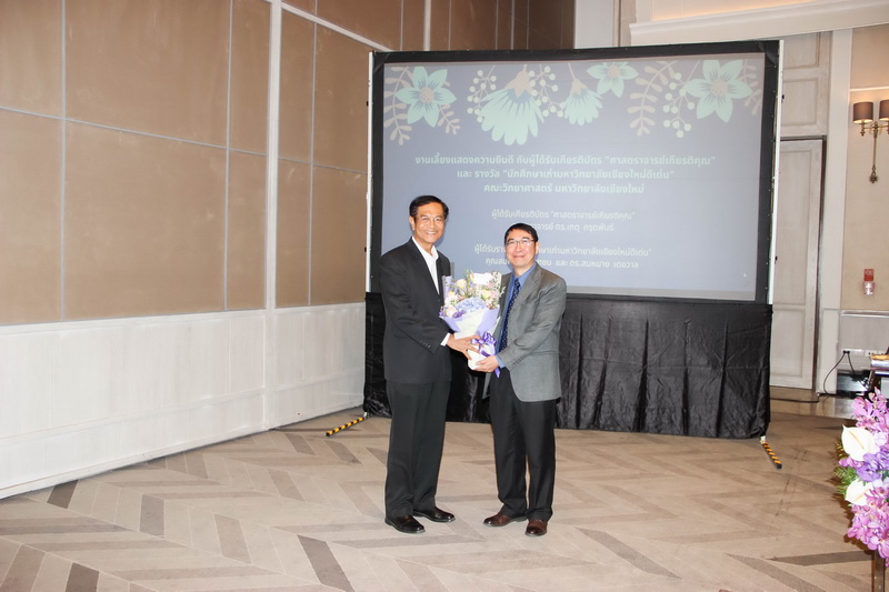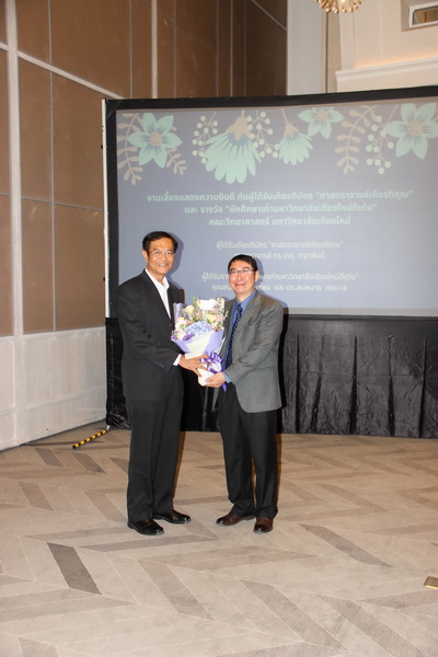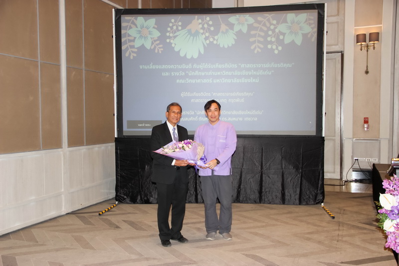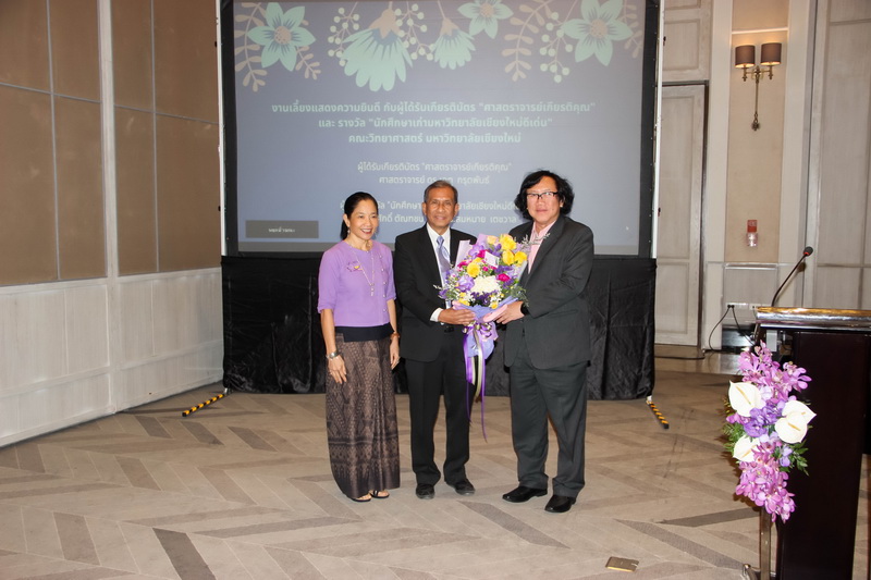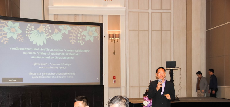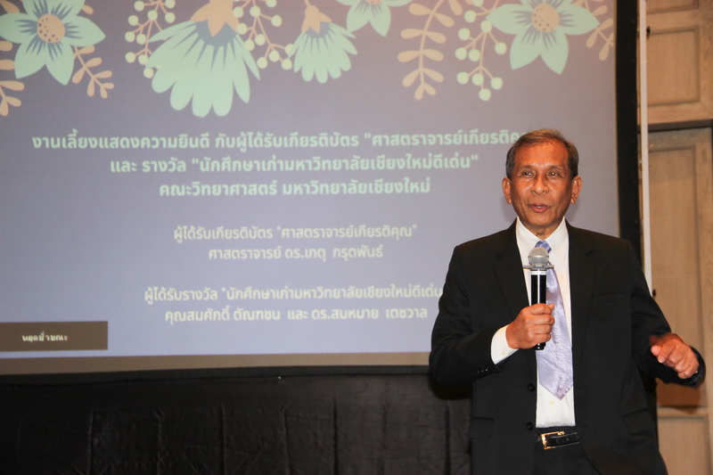 เมื่อวันที่ 26 มกราคม 2563 คณะวิทยาศาสตร์จัดงานแสดงความยินดีกับนักศึกษาเก่าดีเด่น และอาจารย์ที่ได้รับการแต่งตั้งเป็นศาสตราจารย์เกียรติคุณ ณ ONE NIMMAN ประกอบด้วย คุณสมศักดิ์ ตัณฑชน นักศึกษาเก่ามหาวิทยาลัยเชียงใหม่ดีเด่น สาขาบริหารธุรกิจ ตำแหน่งปัจจุบัน ประธานเจ้าหน้าที่บริหารกลุ่มบริษัท ชายน์นิ่งโกลด์ คุณสมหมาย เตชวาล นักศึกษาเก่ามหาวิทยาลัยเชียงใหม่ดีเด่น สาขาบริหารราชการ ตำแหน่งปัจจุบัน อธิบดีกรมทรัพยากรธรณี และศาสตราจารย์ ดร.เกตุ กรุดพันธ์ อาจารย์อาวุโส ประจำภาควิชาเคมี คณะวิทยาศาสตร์ ที่ได้รับการแต่งตั้งเป็นศาสตราจารย์เกียรติคุณ สาขาวิชาเคมี โดยมีศาสตราจารย์ ดร.ธรณินทร์ ไชยเรืองศรี คณบดีคณะวิทยาศาสตร์ พร้อมด้วยผู้บริหาร และบุคลากร ร่วมแสดงความยินดี