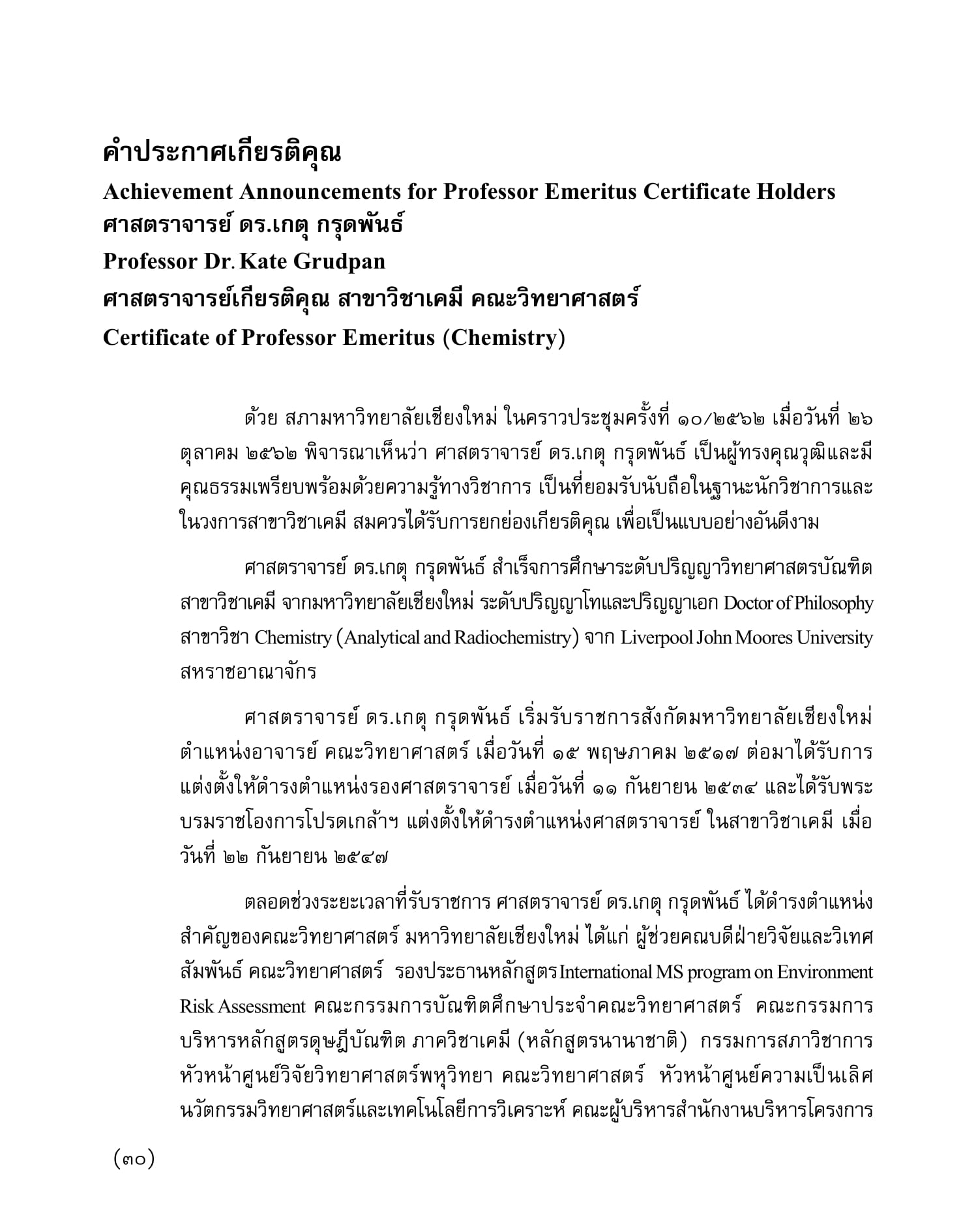 คณะวิทยาศาสตร์ขอแสดงความยินดีกับ ศาสตราจารย์ ดร.เกตุ กรุดพันธ์ อาจารย์อาวุโส ประจำภาควิชาเคมี คณะวิทยาศาสตร์ ที่ได้เข้ารับพระราชทานเกียรติบัตร ศาสตราจารย์เกียรติคุณ สาขาวิชาเคมี จากสมเด็จพระกนิษฐาธิราชเจ้า กรมสมเด็จพระเทพรัตนราชสุดาฯ สยามบรมราชกุมารี ในพิธีพระราชทานปริญญาบัตร ครั้งที่ 54 ของมหาวิทยาลัยเชียงใหม่ วันจันทร์ที่ 27 มกราคม 2563 ณ หอประชุมมหาวิทยาลัยเชียงใหม่