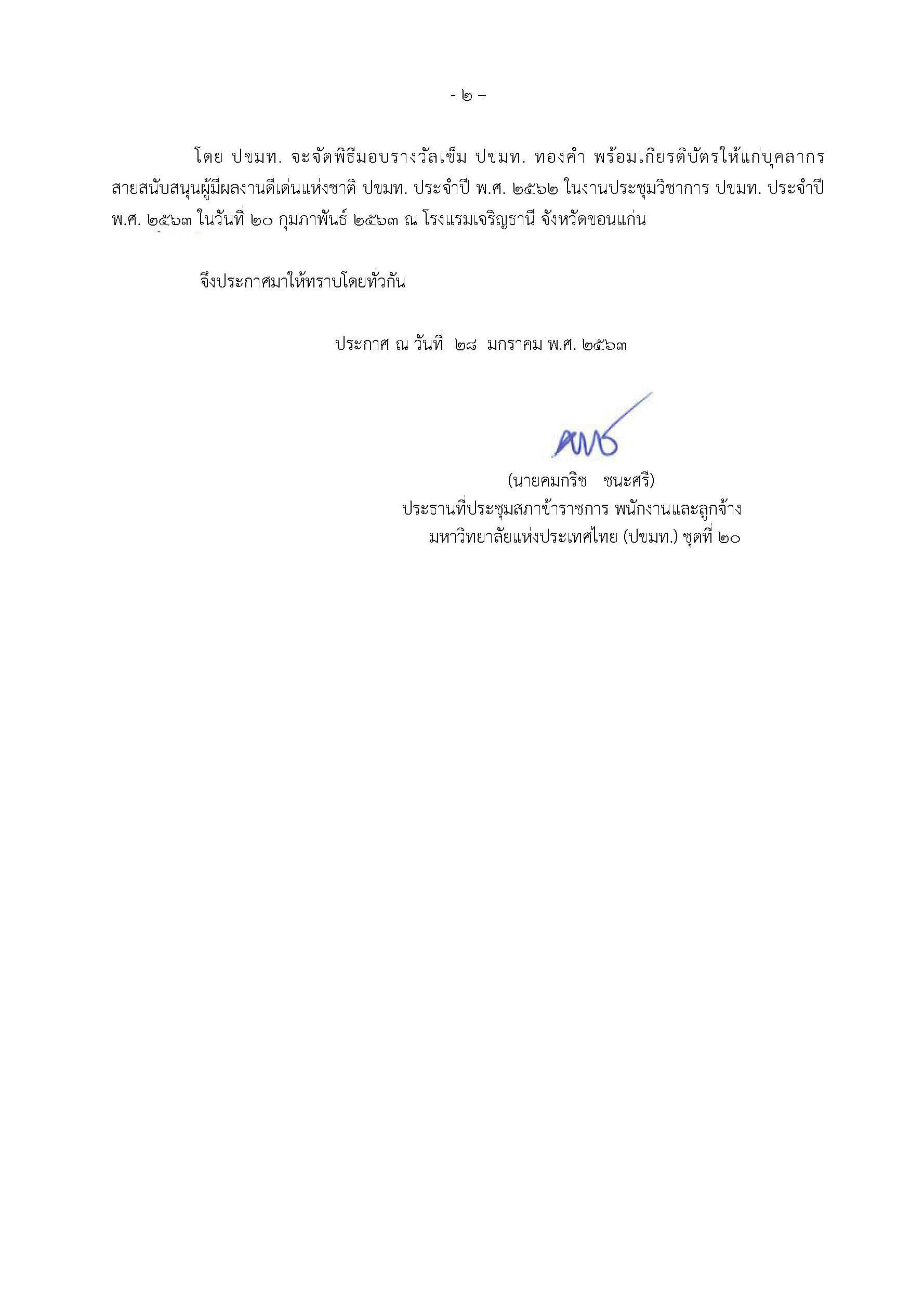คณะวิทยาศาสตร์ขอแสดงความยินดีกับ นายพร พรมมหาราช เลขานุการคณะวิทยาศาสตร์ ที่ได้รับคัดเลือกเป็นบุคลากรสายสนับสนุนผู้มีผลงานดีเด่นแห่งชาติ ปขมท. ประจำปี พ.ศ. 2562 "ด้านบริหารดีเด่น" จากที่ประชุมสภาข้าราชการ พนักงาน และลูกจ้างมหาวิทยาลัยแห่งประเทศไทย (ปขมท.) โดยจะได้เข้ารับรางวัลเข็ม ปขมท. ทองคำ พร้อมเกียรติบัตร ในงานประชุมวิชาการ ปขมท. ประจำปี 2563 ในวันที่ 20 กุมภาพันธ์ 2563 ณ โรงแรมเจริญธานี จังหวัดขอนแก่น