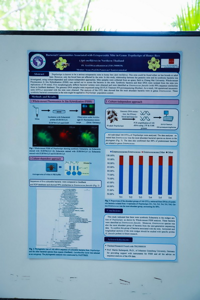 ภายในงานมีการบรรยาย แสดงวิสัยทัศน์ และแลกเปลี่ยนความรู้เชิงวิชาการเกี่ยวกับผึ้ง สุขภาพผึ้ง รวมไปถึงผลิตภัณฑ์ผึ้ง นอกจากนี้ยังมีการอบรมเชิงปฏิบัติการ (workshop) สำหรับเกษตรกรและผู้สนใจ เกี่ยวกับการตลาดและการค้าน้ำผึ้ง รวมถึงการปฏิบัติทางการเกษตรที่ดี (GAP) โดยในงานจะมีนักวิชาการและนักวิจัย กว่า 30 ท่าน จาก 20 ประเทศทั่วโลก คือ Canada, China, France, Greece, Indonesia, Israel, Japan, Myanmar, Nepal, Netherland, Poland, Romania, Slovenia, South Korea, Switzerland, Taiwan, Thailand, Turkey, UK และ Vietnam โดยมีนักวิชาการหลักจากสมาคม COLOSS (Prevention of honey bee COlony LOSSes) ซึ่งเป็นสมาคมระหว่างประเทศที่ไม่หวังผลกำไร มุ่งเน้นการฟื้นฟูสุขภาพของผึ้งในระดับโลก ซึ่งสมาคมประกอบด้วยนักวิทยาศาสตร์ผู้เชี่ยวชาญมากมาย ได้แก่ นักวิจัย สัตวแพทย์ เกษตรกรผู้เชี่ยวชาญ และนักศึกษา มีหน้าที่หลัก คือ การทำงานในระดับโลกเพื่อพัฒนาให้ผึ้งมีสุขภาพที่ดี โดยเฉพาะผึ้งเลี้ยง (Apis mellifera) และมีเป้าหมายเพื่อสนับสนุนให้เรื่องผึ้งและสุขภาพของผึ้งไปสู่ภาครัฐในระดับนโยบาย สร้างความร่วมมือการวิจัยระดับนานาชาติ อบรมและเผยแพร่ความรู้ที่เกี่ยวกับการสร้างสุขภาพที่ดีของผึ้ง นอกจากนี้สมาคมยังมีเป้าหมายทำงานที่สนใจในด้านแมลงศัตรูและโรค สภาพแวดล้อม การผสมพันธุ์รวมถึงการอนุรักษ์ผึ้ง