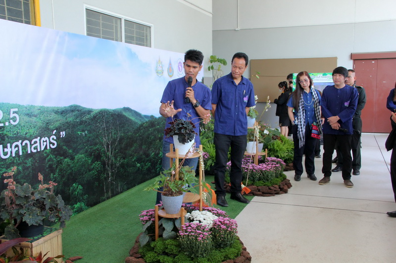 ภายในงานประกอบด้วยการจัดนิทรรศการให้ความรู้เกี่ยวกับ PM2.5 พร้อมชมการสาธิตเครื่องฟอกอากาศ จากหน่วยงานเครือข่าย การบรรยาย เรื่อง การปลดปล่อย PM2.5 จากการเผาชีวมวล โดย ผศ.ดร. สมพร จันทระ หัวหน้าศูนย์วิจัยวิทยาศาสตร์สิ่งแวดล้อม คณะวิทยาศาสตร์ มหาวิทยาลัยเชียงใหม่ เรื่อง พรรณไม้ที่มีศักยภาพดูดซับฝุ่นละอองในอากาศ โดย ดร.ธรรมรัตน์ พุทธไทย นักวิจัยประจำพิพิธภัณฑ์พืชแห่งภาคตะวันตกและอาจารย์ประจำคณะสิ่งแวดล้อมและทรัพยากรศาสตร์ มหาวิทยาลัยมหิดล วิทยาเขตกาญจนบุรี เรื่อง พืชที่ช่วยดักจับ PM2.5 โดย ดร.เจนจิรา หมื่นเร็ว นักวิชาการพฤกษศาสตร์ จากองค์การสวนพฤกษศาสตร์ และการเสวนา ในหัวข้อ PM2.5 ภัยร้ายใกล้ตัวควบคุมได้ด้วยตัวเรา