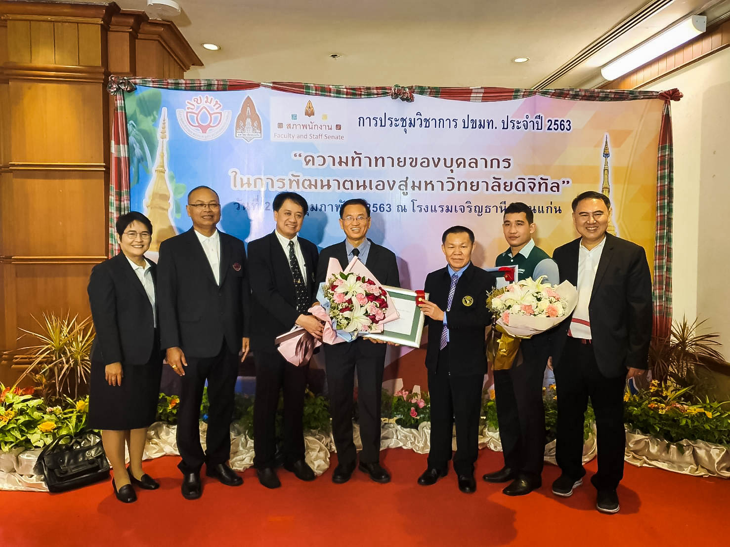 คณะวิทยาศาสตร์ขอแสดงความยินดีกับ นายพร พรมมหาราช เลขานุการคณะวิทยาศาสตร์ ในโอกาสที่ได้รับรางวัล บุคลากรสายสนับสนุนผู้มีผลงานดีเด่นแห่งชาติ ปขมท. ประจำปี พ.ศ. 2562 "ด้านบริหารดีเด่น" จากที่ประชุมสภาข้าราชการ พนักงาน และลูกจ้างมหาวิทยาลัยแห่งประเทศไทย (ปขมท.) โดยเข้ารับรางวัลเข็ม ปขมท. ทองคำ โล่เชิดชูเกียรติ และเกียรติบัตร จาก ดร.ณรงค์ชัย อัครเศรณี นายกสภามหาวิทยาลัยขอนแก่น ในงานประชุมวิชาการ ปขมท. ประจำปี 2563 วันที่ 20 กุมภาพันธ์ 2563 ณ โรงแรมเจริญธานี จังหวัดขอนแก่น