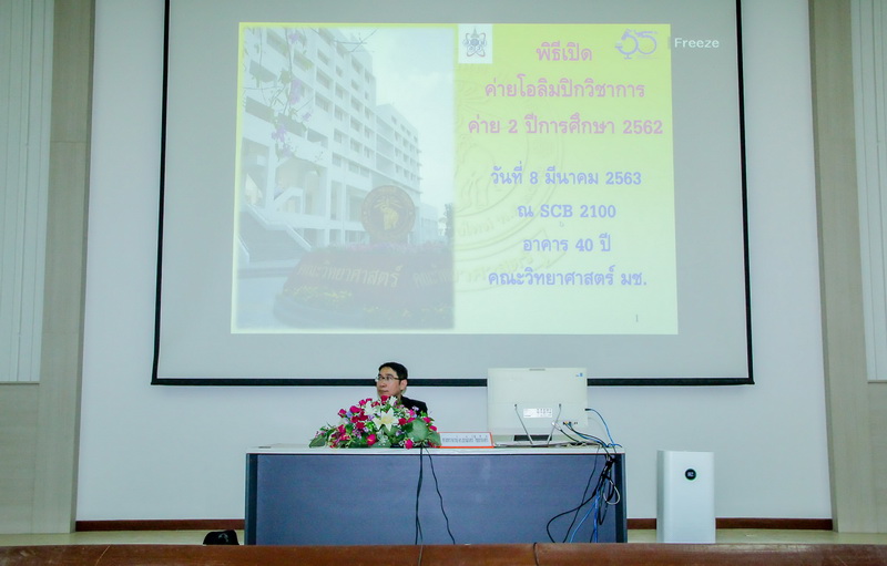 ศาสตราจารย์ ดร.ธรณินทร์ ไชยเรืองศรี คณบดีคณะวิทยาศาสตร์ เป็นประธานในพิธีเปิดค่ายโอลิมปิกวิชาการ ค่าย 2 ปีการศึกษา 2562 โดยมีผู้ช่วยศาสตราจารย์ ดร.จิรัฏฐ์ แสนทน รองคณบดีฝ่ายวิชาการ คณะวิทยาศาสตร์ กล่าวรายงานความเป็นมาในการจัดค่าย และนายพร พรมมหาราช เลขานุการคณะวิทยาศาสตร์ ชี้แจงรายละเอียดการเข้าค่าย ณ ห้องบรรยาย SCB2100 อาคาร 40 ปี คณะวิทยาศาสตร์ เมื่อวันที่ 9 มีนาคม 2563