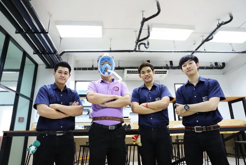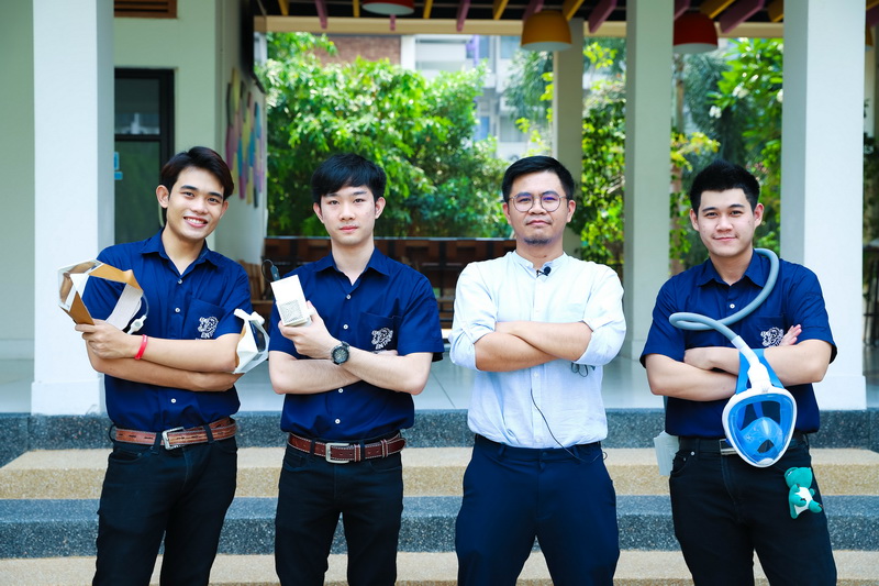 นายณัฐภัทร สูงติวงค์ (เบส) นายจตุพร สุขอ่วม (เอม) และนายจารุกิตติ์ เหล่ากาวี (ออโต้) นักศึกษาชั้นปีที่ 4 วิศวฯ มช. คือกลุ่มนักศึกษาที่เริ่มต้นคิดค้นนวัตกรรมหน้ากากความดันบวก หรือ Positive pressure ที่พวกเขาตั้งชื่อว่า “MasquraX”