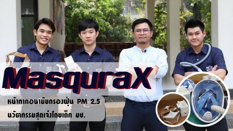 “MasquraX” Gen 1 คิดค้นขึ้นเพื่อให้ทุกคนสามารถสวมใส่หน้ากากอนามัยที่มีประสิทธิภาพ โดยสามารถป้องกันฝุ่น PM 2.5 ได้มากถึง 99% และยังสวมใส่สบาย กระชับกับใบหน้า และสามารถใช้งานได้ในระยะยาว เหมาะกับนักผจญเพลิง เจ้าหน้าที่ดับไฟป่า หรือผู้ที่ต้องทำกิจกรรมกลางแจ้ง โดยนวัตกรรมนี้ได้รับการสนับสนุนจากภาควิชาวิศวกรรมเครื่องกล คณะวิศวกรรมศาสตร์ มหาวิทยาลัยเชียงใหม่ โดย รองศาสตราจารย์ ดร.ธงชัย ฟองสมุทร หัวหน้าภาควิชาฯ และศูนย์วิจัยวิทยาศาสตร์สิ่งแวดล้อม คณะวิทยาศาสตร์ มหาวิทยาลัยเชียงใหม่ โดย อาจารย์ ดร.ว่าน วิริยา ผู้ช่วยหัวหน้าศูนย์ฯ ที่ได้ร่วมเป็นที่ปรึกษาในการออกแบบ และสนับสนุนการทำงานของนักศึกษาในทุกๆ ด้าน ทั้งในเรื่องของเทคโนโลยี วัสดุอุปกรณ์ สถานที่ทำงาน และองค์ความรู้ต่างๆ