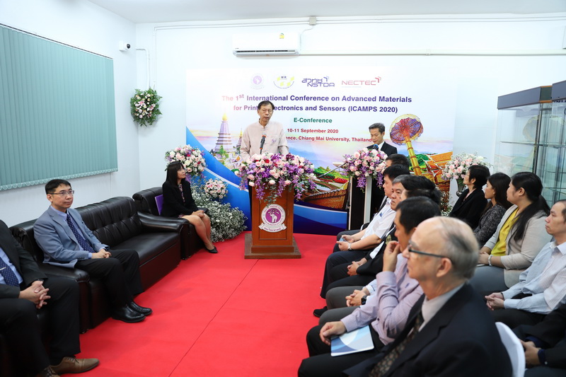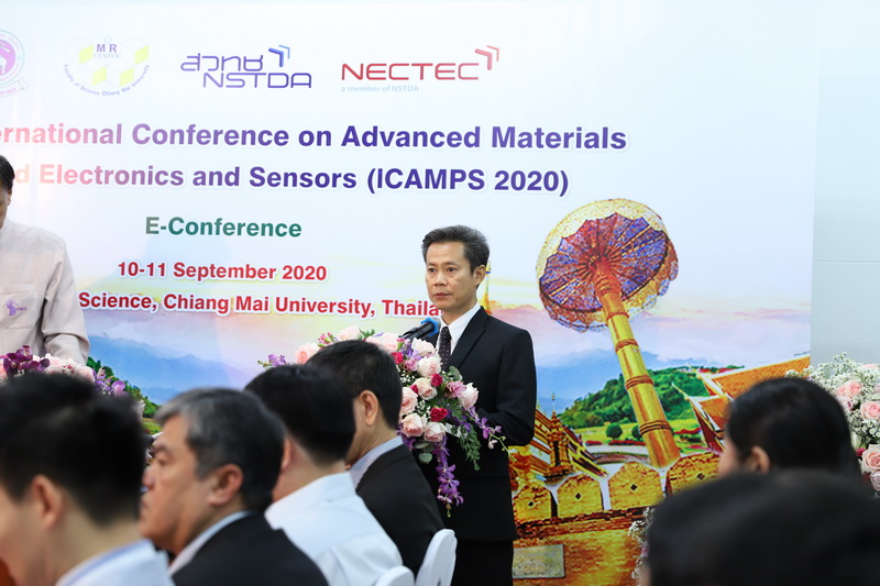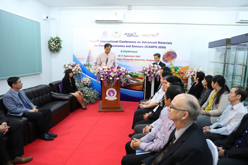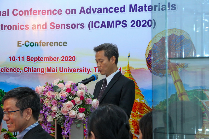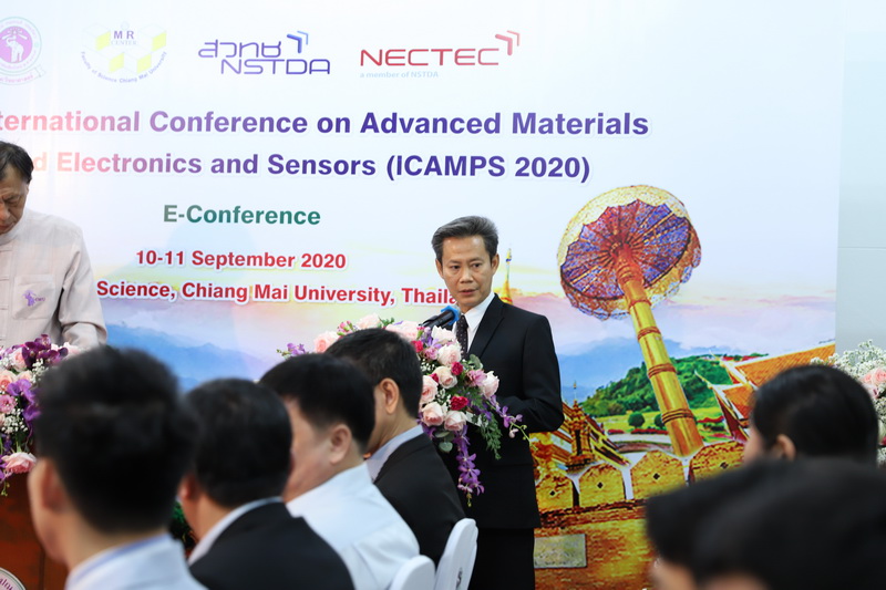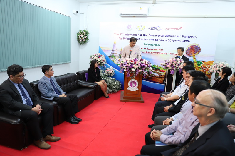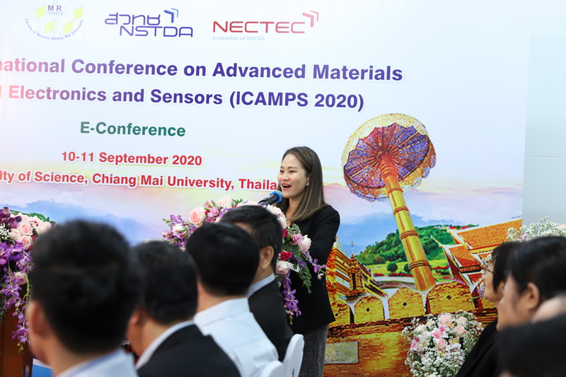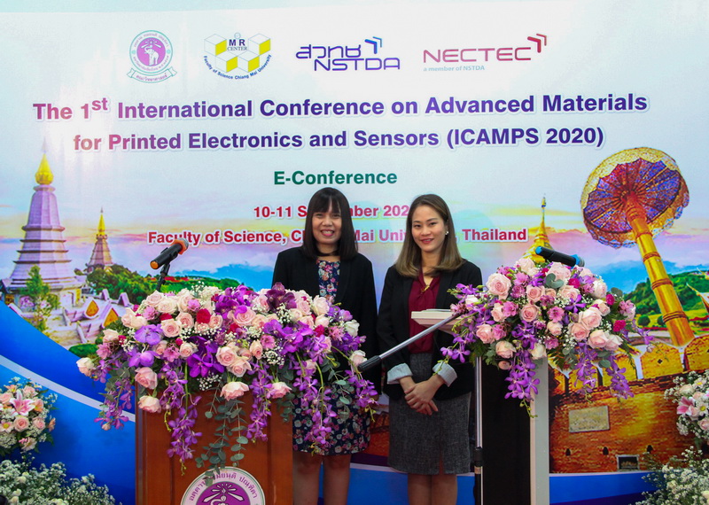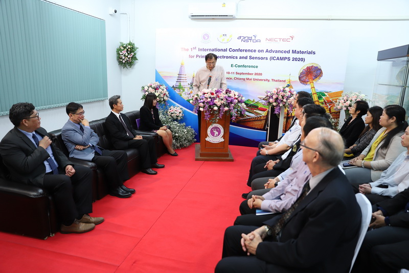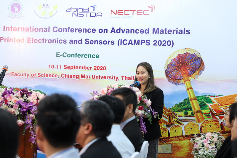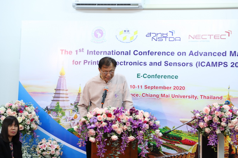 ศูนย์วิจัยวัสดุศาสตร์ คณะวิทยาศาสตร์ มหาวิทยาลัยเชียงใหม่ ร่วมกับศูนย์เทคโนโลยีอิเล็กทรอนิกส์และคอมพิวเตอร์แห่งชาติ (NECTEC) สำนักงานพัฒนาวิทยาศาสตร์และเทคโนโลยีแห่งชาติ (สวทช.) จัดการประชุมวิชาการนานาชาติ The 1st International Conference on Advanced Materials for Printed Electronics and Sensors (iCAMPS 2020) ระหว่างวันที่ 10-11 กันยายน 2563 ณ คณะวิทยาศาสตร์ มหาวิทยาลัยเชียงใหม่ ในรูปแบบกึ่งออนไลน์ โดยได้รับเกียรติจาก รองศาสตราจารย์ ดร.สัมพันธ์ สิงหราชวราพันธ์ รองอธิการบดีมหาวิทยาลัยเชียงใหม่ เป็นประธานในพิธีเปิดงาน รองศาสตราจารย์ ดร.พิศิษฐ์ สิงห์ใจ โครงการศูนย์ความรู้เฉพาะด้านวัสดุขั้นสูงสำหรับอิเล็กทรอนิกส์พิมพ์ได้และเซนเซอร์ กล่าวรายงานความเป็นมาในการจัดงาน และผู้ช่วยศาสตราจารย์ ดร.วินิตา บุณโยดม หัวหน้าศูนย์วิจัยวัสดุศาสตร์ กล่าวต้อนรับผู้เข้าร่วมงาน เมื่อวันที่ 10 กันยายน 2563 ณ ห้องประชุมศูนย์วิจัยวัสดุศาสตร์ ชั้น 4 อาคาร 40 ปี คณะวิทยาศาสตร์
