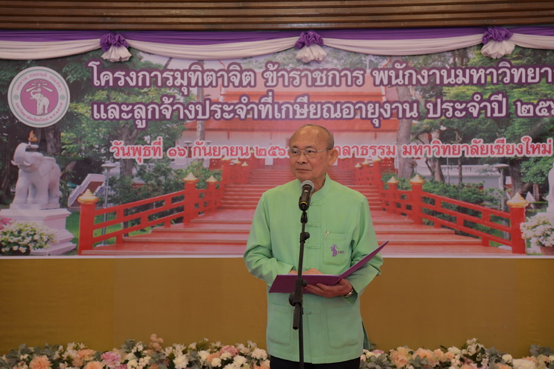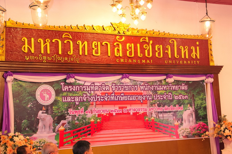 ศาสตราจารย์ ดร.ธรณินทร์ ไชยเรืองศรี คณบดีคณะวิทยาศาสตร์ พร้อมด้วยนายพร พรมมหาราช เลขานุการคณะฯ และผู้เกษียณอายุงานคณะวิทยาศาสตร์ ร่วมพิธีแสดงมุทิตาจิตแด่ข้าราชการ พนักงานมหาวิทยาลัย และลูกจ้างประจำของมหาวิทยาลัยเชียงใหม่ที่เกษียณอายุงาน ประจำปี 2563 เมื่อวันที่ 16 กันยายน พ.ศ. 2563 ณ ศาลาธรรม มหาวิทยาลัยเชียงใหม่ ซึ่งจัดโดย กองบริหารงานบุคคล สำนักงานมหาวิทยาลัย มหาวิทยาลัยเชียงใหม่ โดยมีศาสตราจารย์คลินิก นายแพทย์นิเวศน์ นันทจิต อธิการบดีมหาวิทยาลัยเชียงใหม่ เป็นประธานในพิธีฯ เพื่อเชิดชูเกียรติและระลึกถึงคุณงามความดีของผู้เกษียณอายุงาน ที่ได้อุทิศตนปฏิบัติหน้าที่ด้วยแรงกายแรงใจ มีความมานะ อุตสาหะ พากเพียรพยายาม และมุ่งมั่นสรรค์สร้างพัฒนามหาวิทยาลัยเชียงใหม่ จนครบวาระการทำงาน ในโอกาสนี้ คณาจารย์และบุคลากรของคณะวิทยาศาสตร์ที่เกษียณอายุงาน ประจำปี 2563 ได้เข้ารับการเชิดชูเกียรติในพิธีฯ ดังกล่าวด้วย