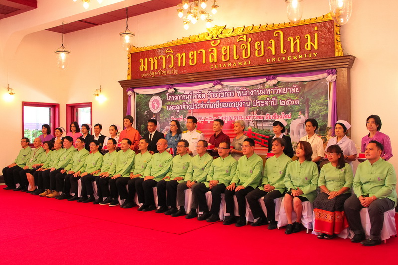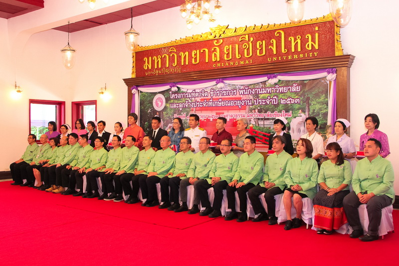 ผู้บริหารและผู้เกษียณอายุงานคณะวิทยาศาสตร์ร่วมพิธีแสดงมุทิตาจิตแด่ข้าราชการ พนักงานมหาวิทยาลัย และลูกจ้างประจำ มช. ที่เกษียณอายุงาน ประจำปี 2563