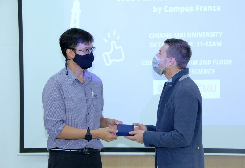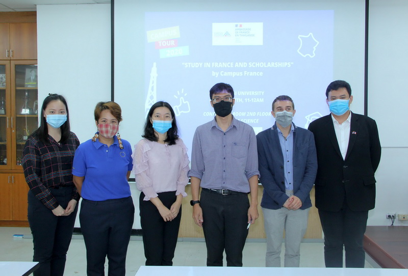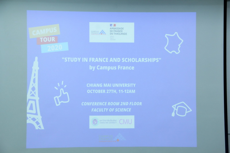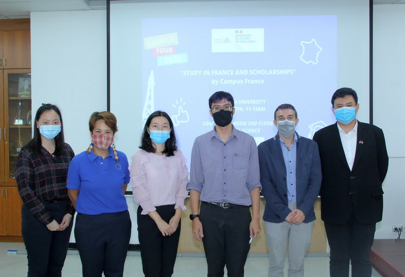 แคมปัสฟรานซ์-สถานทูตฝรั่งเศส จัดการบรรยายเรื่อง "การศึกษาต่อประเทศฝรั่งเศสและทุนการศึกษาโดยรัฐบาลฝรั่งเศส" ณ ห้องสัมมนา ชั้น 2 อาคาร 40 ปี คณะวิทยาศาสตร์ เมื่อวันที่ 27 ตุลาคม 2563 โดยมีผู้ช่วยศาสตราจารย์ ดร.จิรัฏฐ์ แสนทน รองคณบดีฝ่ายวิชาการ คณะวิทยาศาสตร์ ร่วมให้การต้อนรับ
