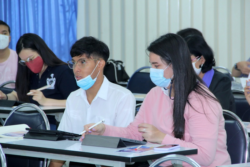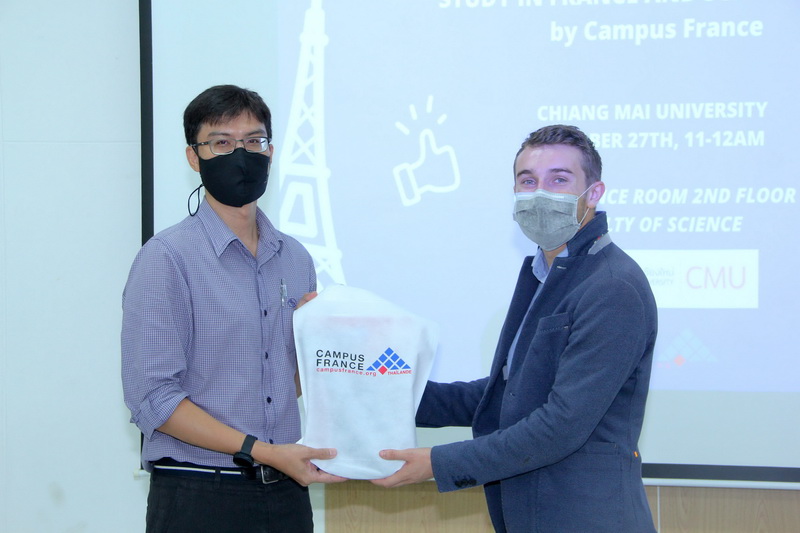 โดยคณะจากสถานทูตฝรั่งเศสที่เดินทางมาร่วมบรรยาย ประกอบด้วย Ms.Wanpen SIRAPAT, Scholarship and Budget Coordinator, Ms.Jutaporn KANJANAKUHA, Assistant to Attaché for Scientific and Higher Education Cooperation, Mr.Benjamin APOCHER, Campus France Team และ Mr.Pollawat KANTAPOM, Campus France Team