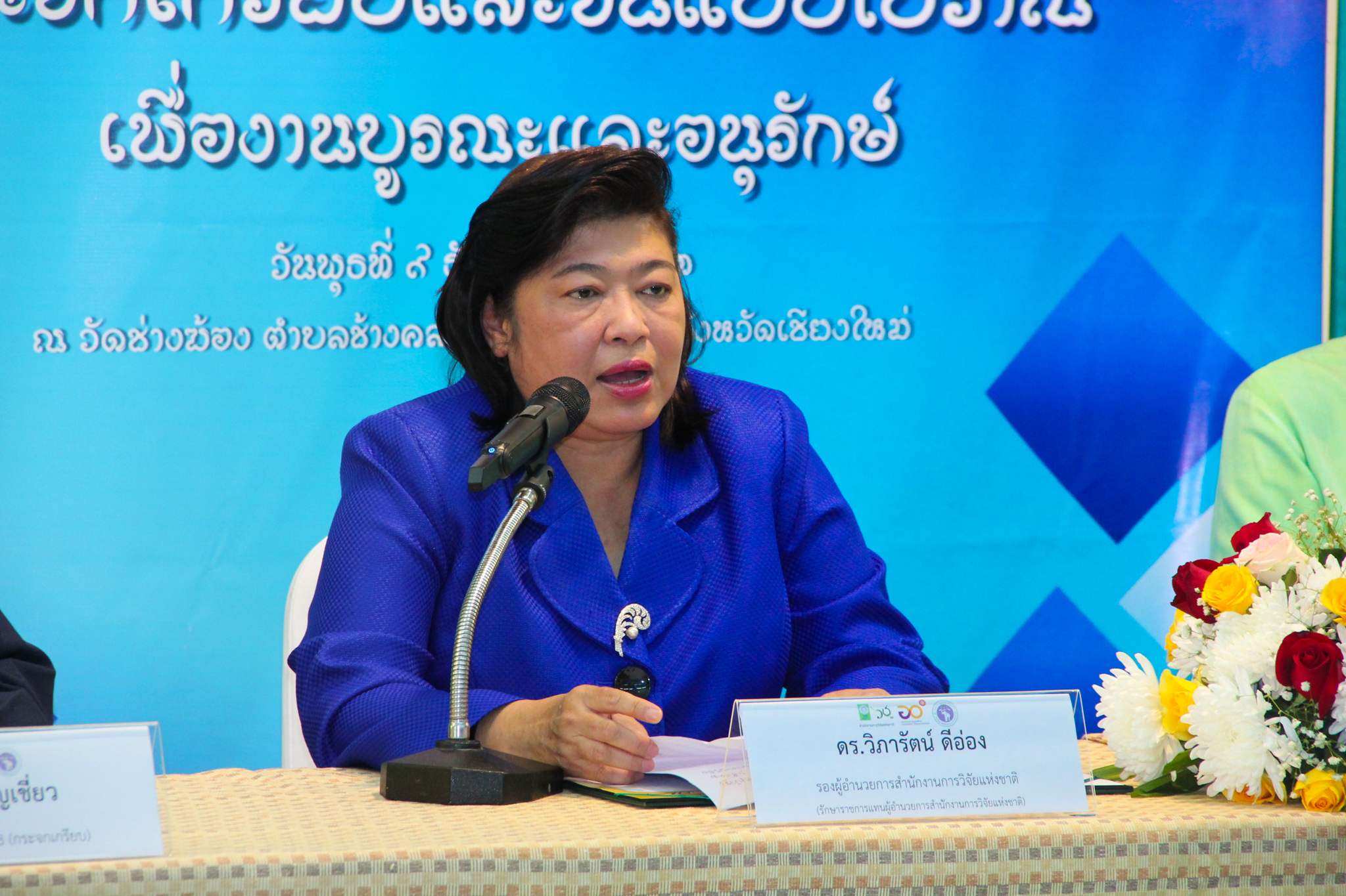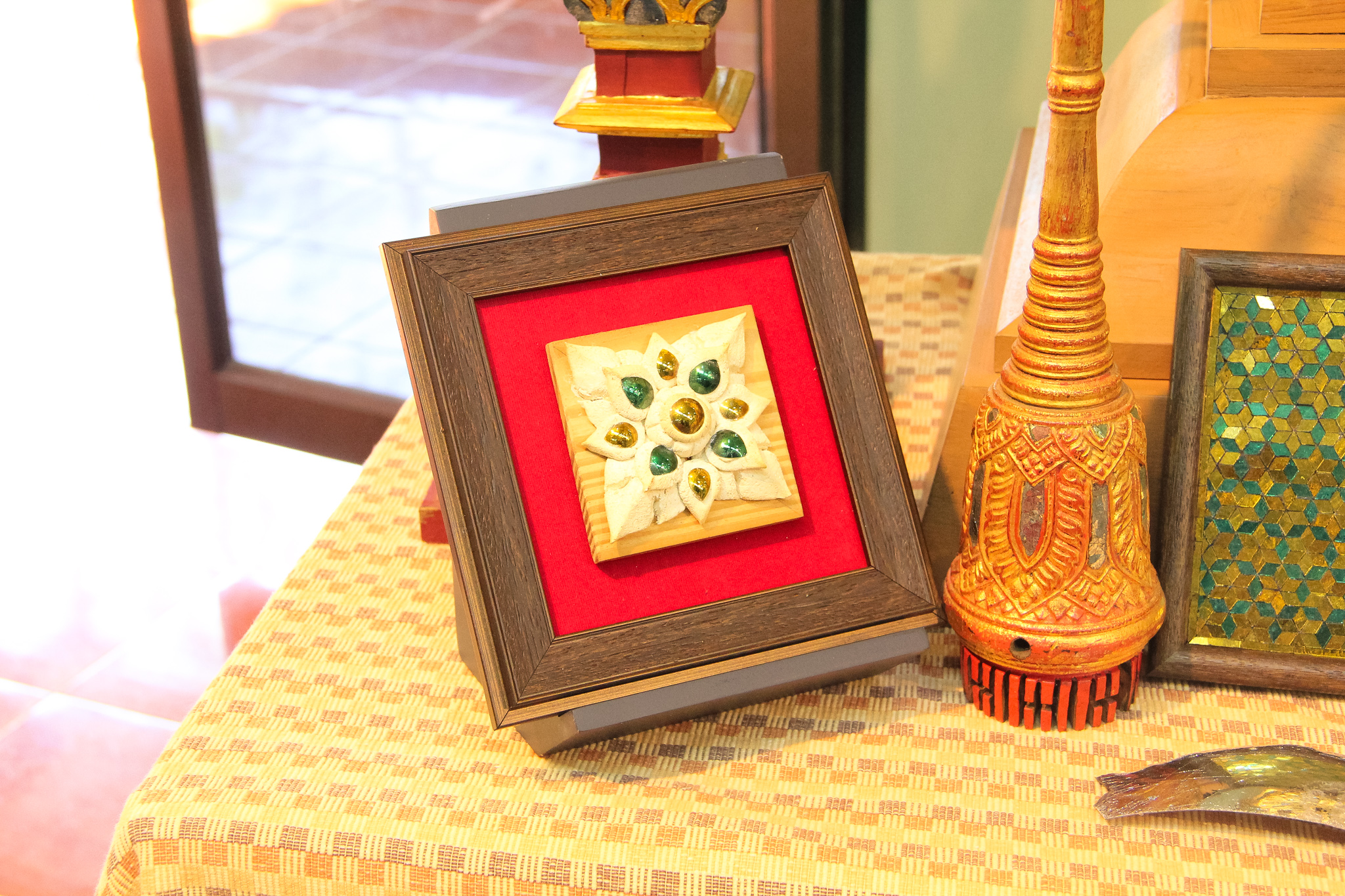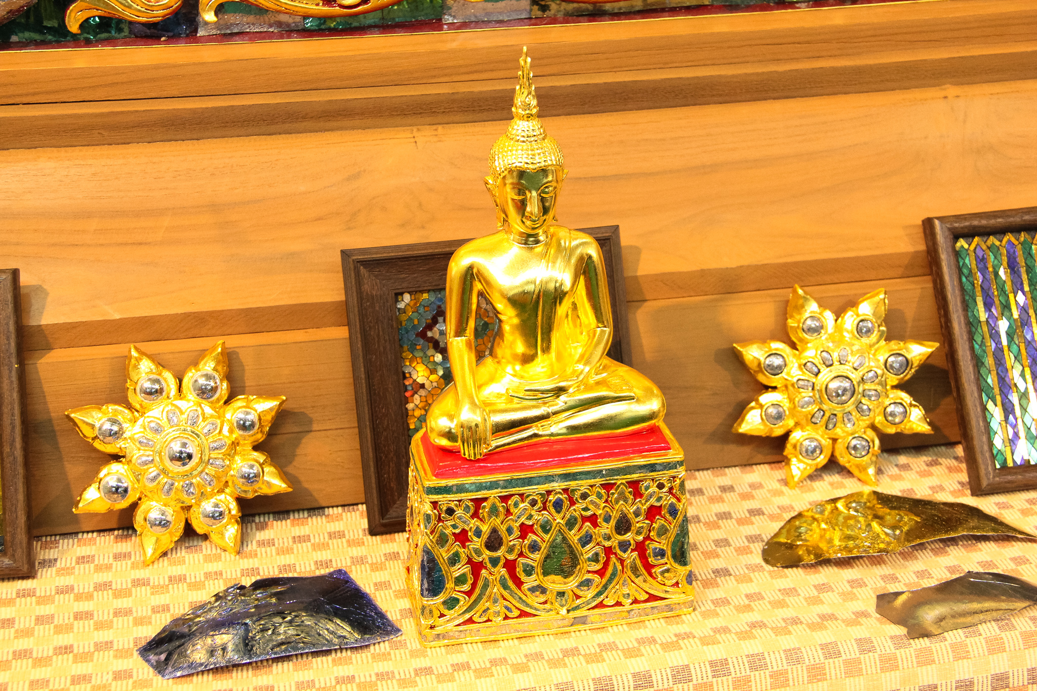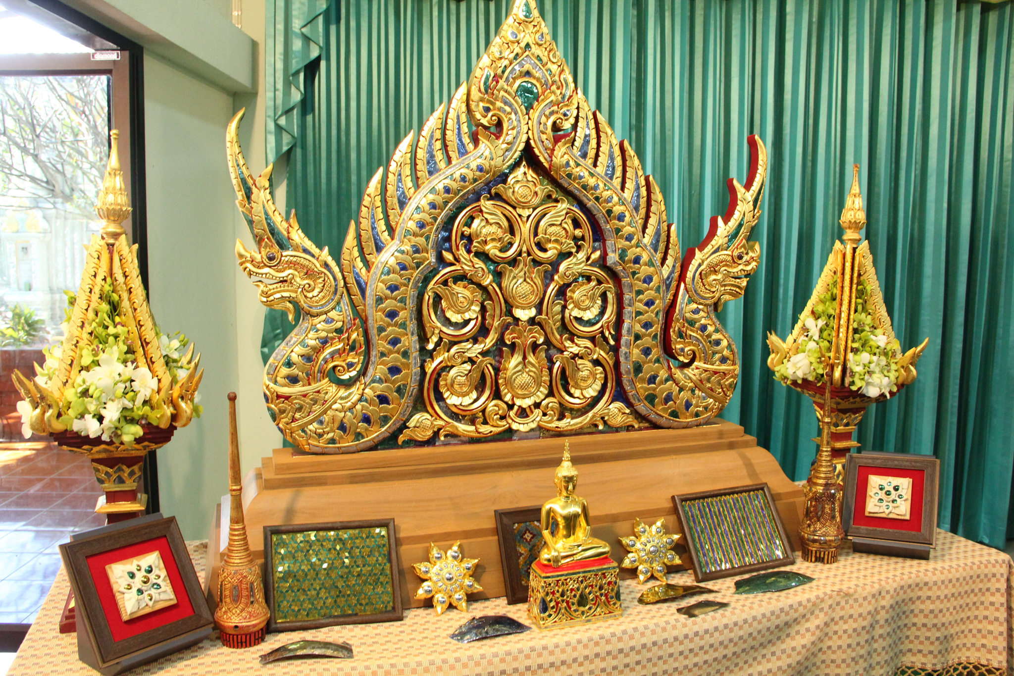 และเมื่อวันที่ 9 ธันวาคม 2563 วช. ได้ถวายสัตภัณฑ์ที่ประดับกระจกจืน ซึ่งเป็นกระจกที่ได้จากงานวิจัย ณ วัดช่างฆ้อง อำเภอเมือง จังหวัดเชียงใหม่ โดยได้รับความร่วมมือจาก ศิลปิน “ฝุ่น หอสูง” นายชาญยุทธ โตบัณฑิต ออกแบบและสร้างสัตภัณฑ์ เป็นความสำเร็จอย่างเป็นรูปธรรมของการนำผลงานวิจัยจากห้องปฏิบัติการ ที่สามารถต่อยอดทั้งเชิงพาณิชย์และสามารถนำไปทำนุบำรุงศิลปวัฒนธรรมของประเทศไทย เพื่อรักษามรดกอันทรงคุณค่าให้คงอยู่เคียงคู่คนไทยสืบไป