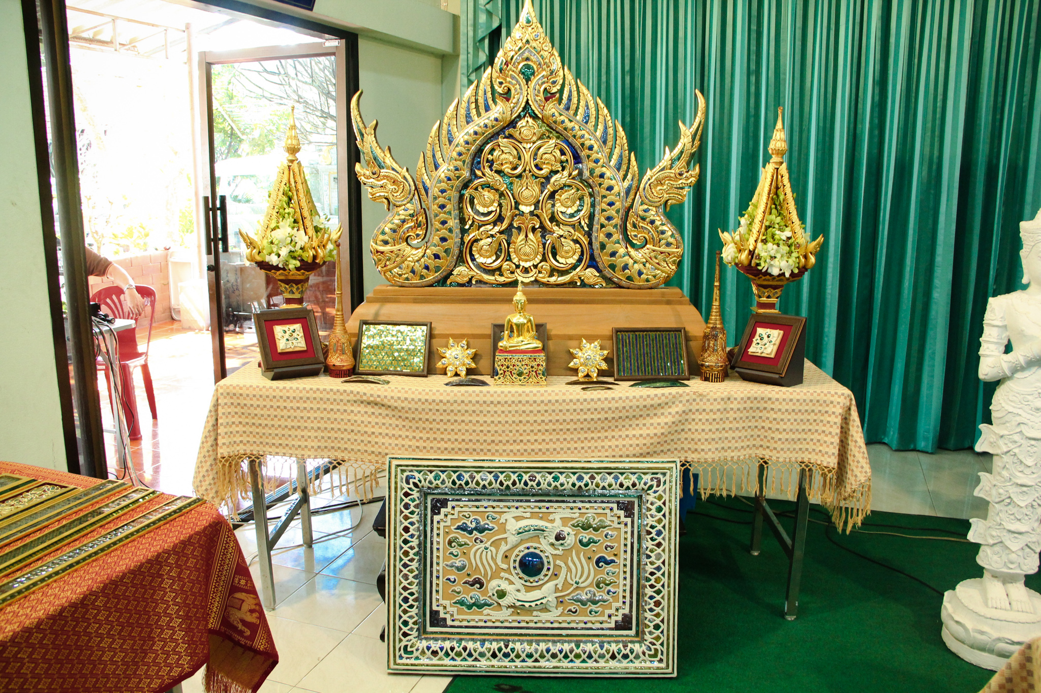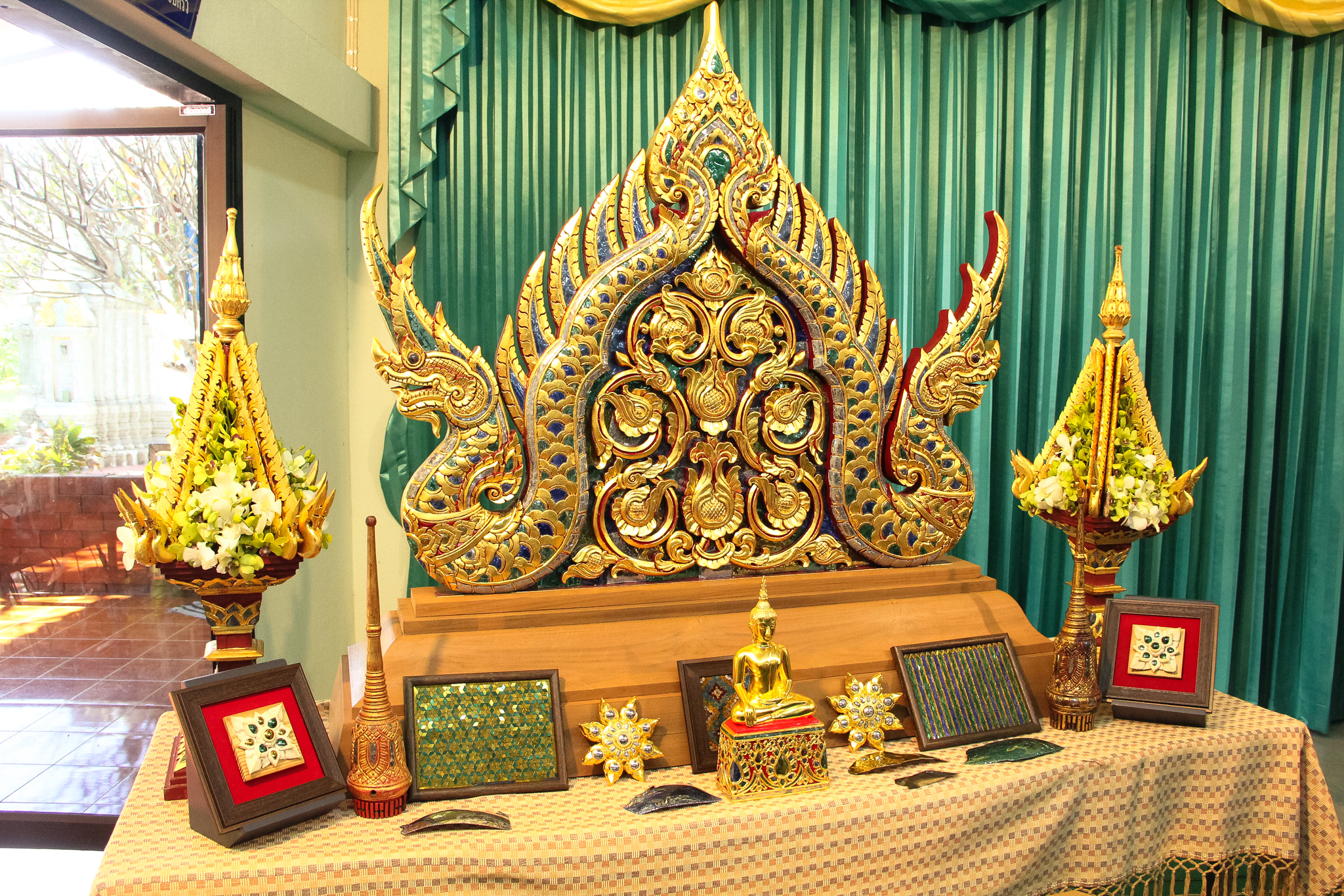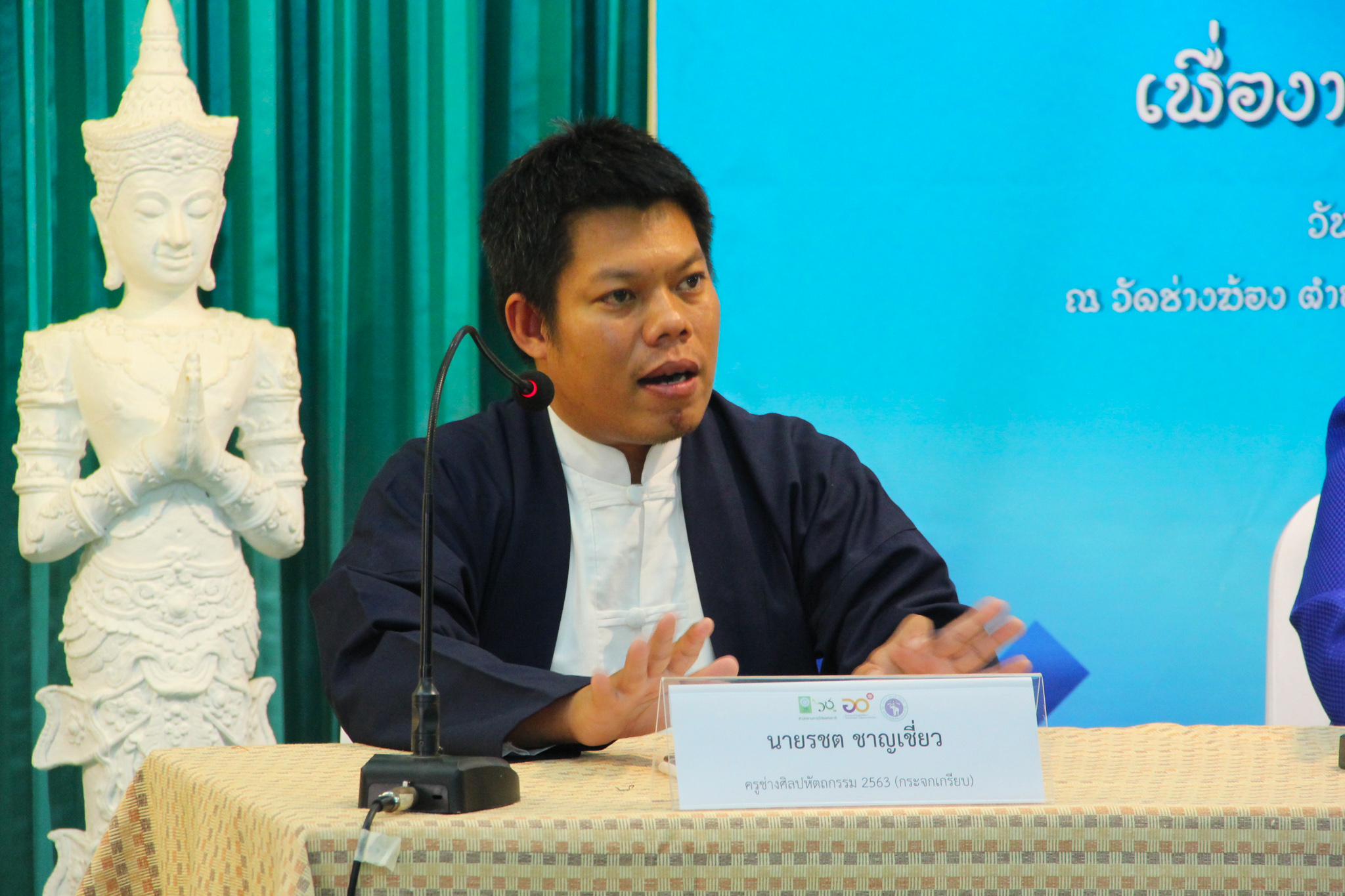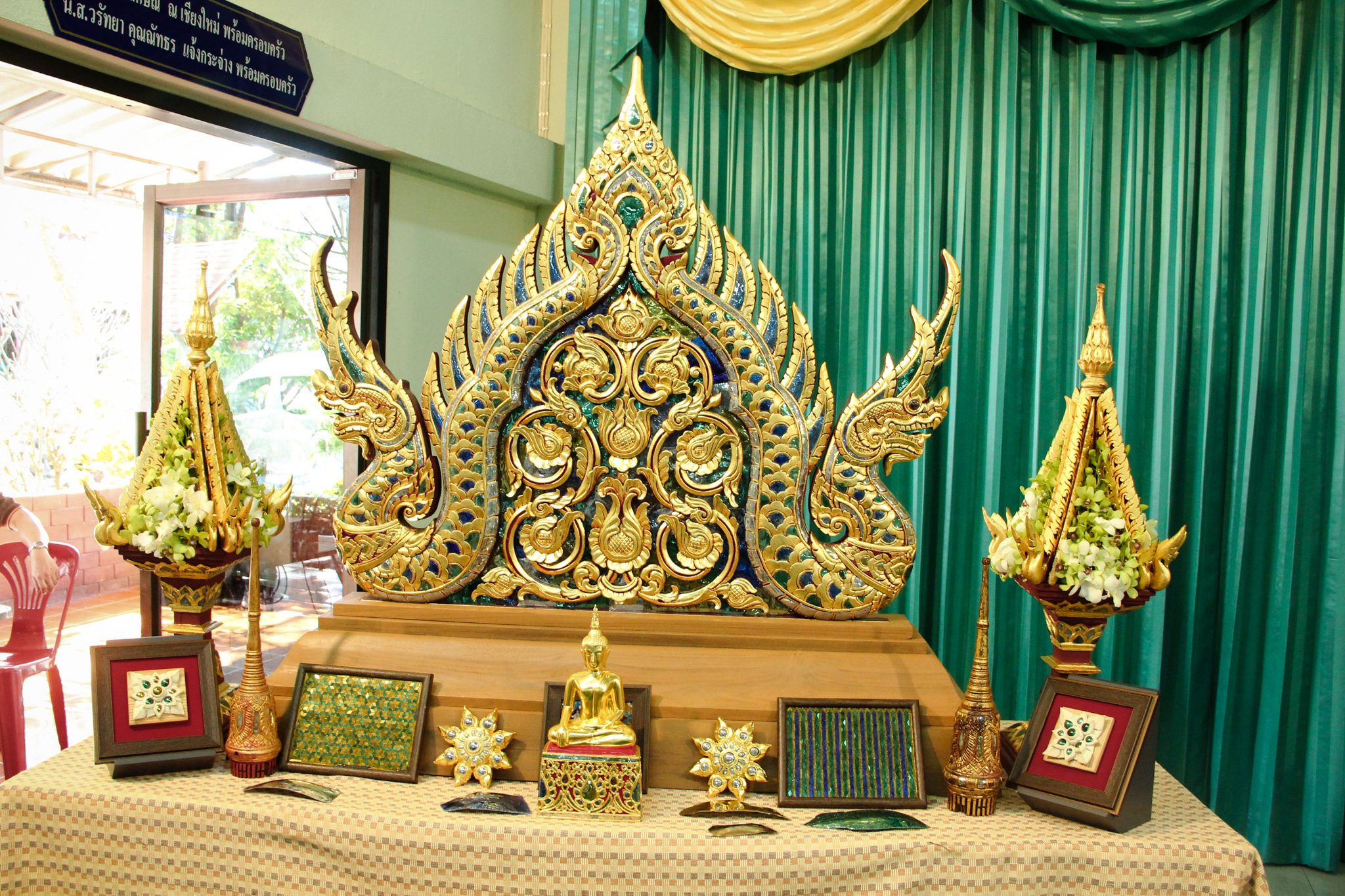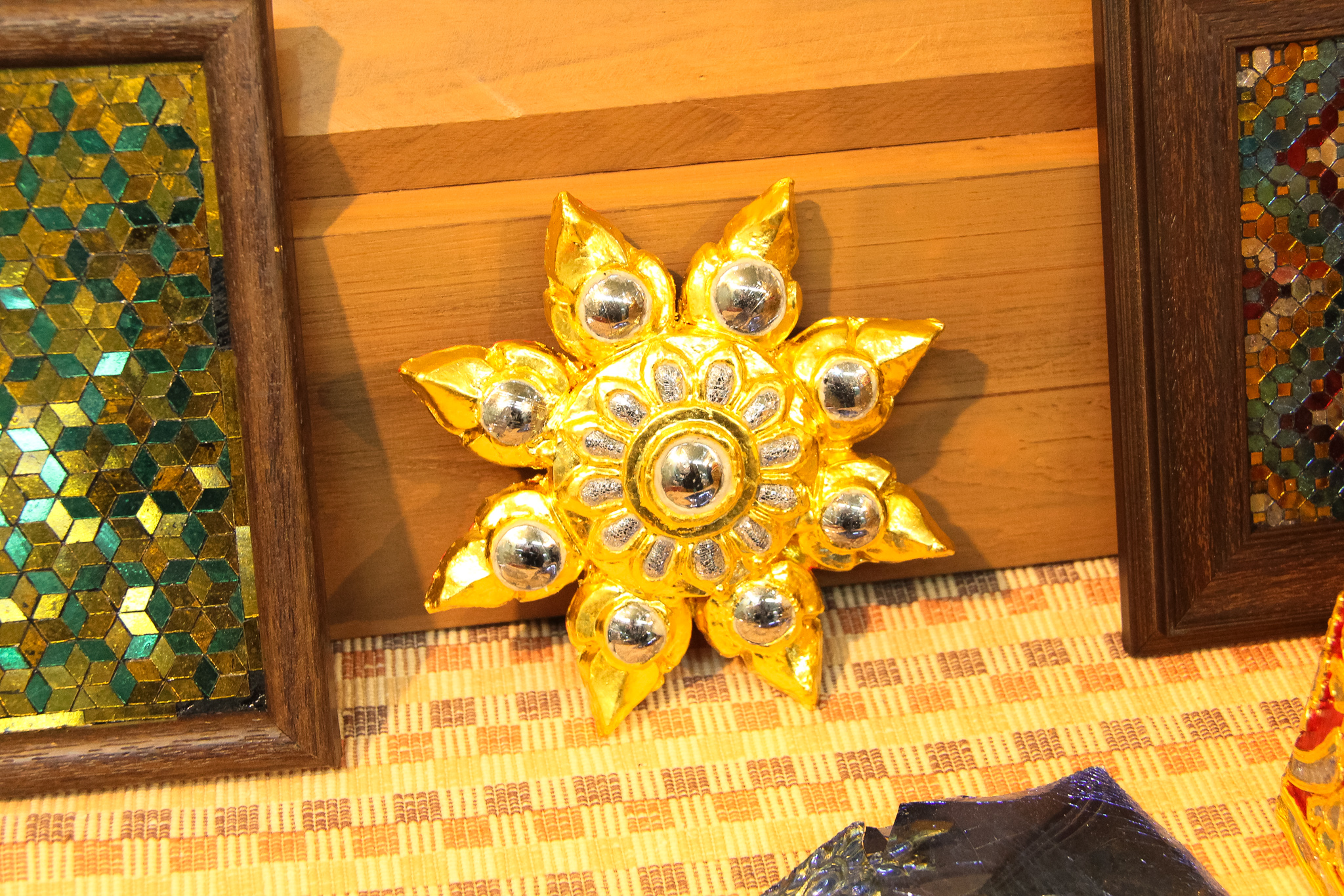 และเมื่อวันที่ 9 ธันวาคม 2563 วช. ได้ถวายสัตภัณฑ์ที่ประดับกระจกจืน ซึ่งเป็นกระจกที่ได้จากงานวิจัย ณ วัดช่างฆ้อง อำเภอเมือง จังหวัดเชียงใหม่ โดยได้รับความร่วมมือจาก ศิลปิน “ฝุ่น หอสูง” นายชาญยุทธ โตบัณฑิต ออกแบบและสร้างสัตภัณฑ์ เป็นความสำเร็จอย่างเป็นรูปธรรมของการนำผลงานวิจัยจากห้องปฏิบัติการ ที่สามารถต่อยอดทั้งเชิงพาณิชย์และสามารถนำไปทำนุบำรุงศิลปวัฒนธรรมของประเทศไทย เพื่อรักษามรดกอันทรงคุณค่าให้คงอยู่เคียงคู่คนไทยสืบไป