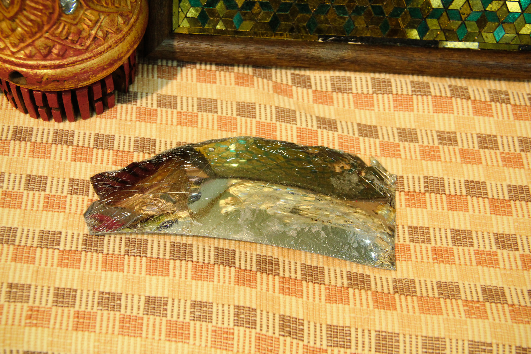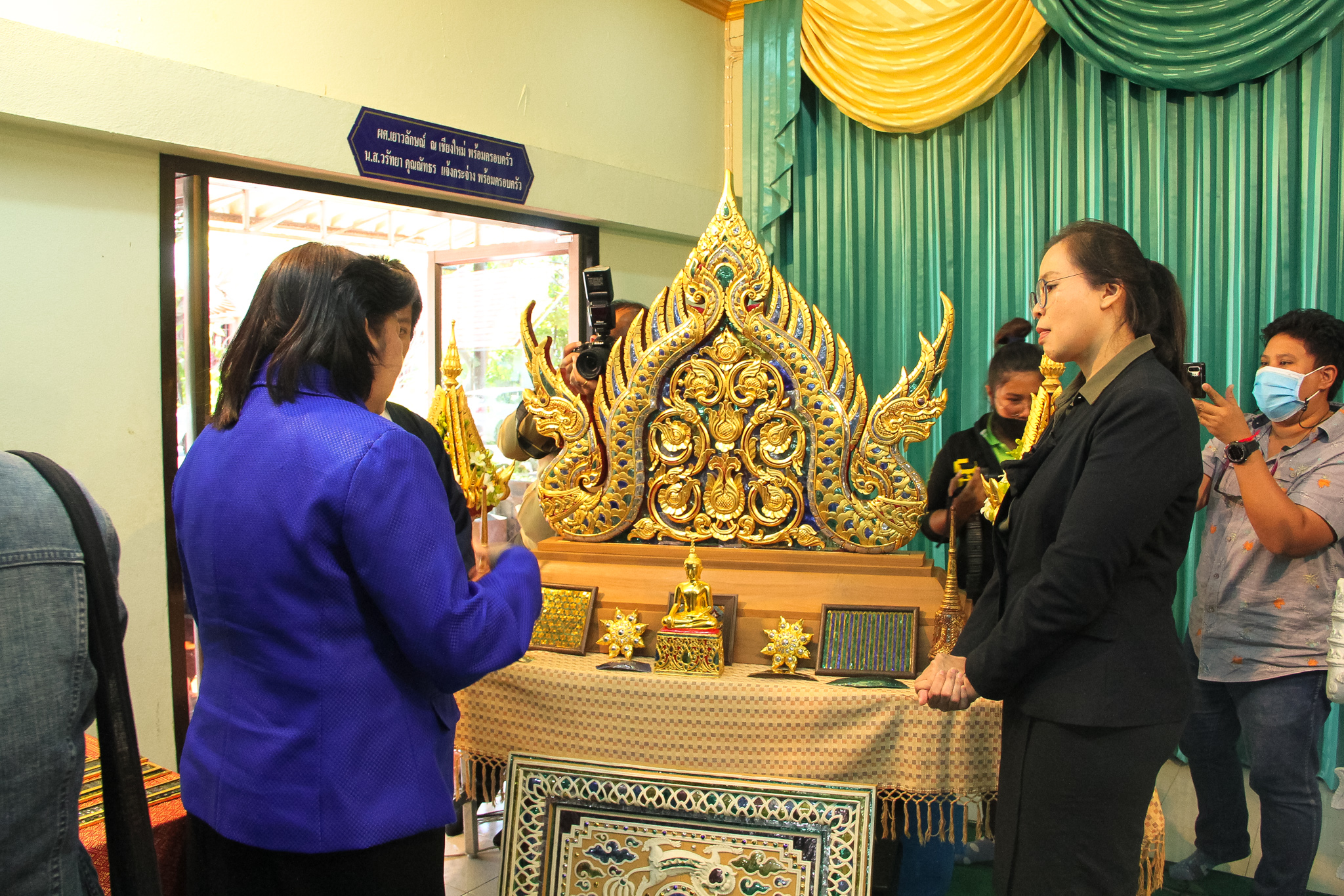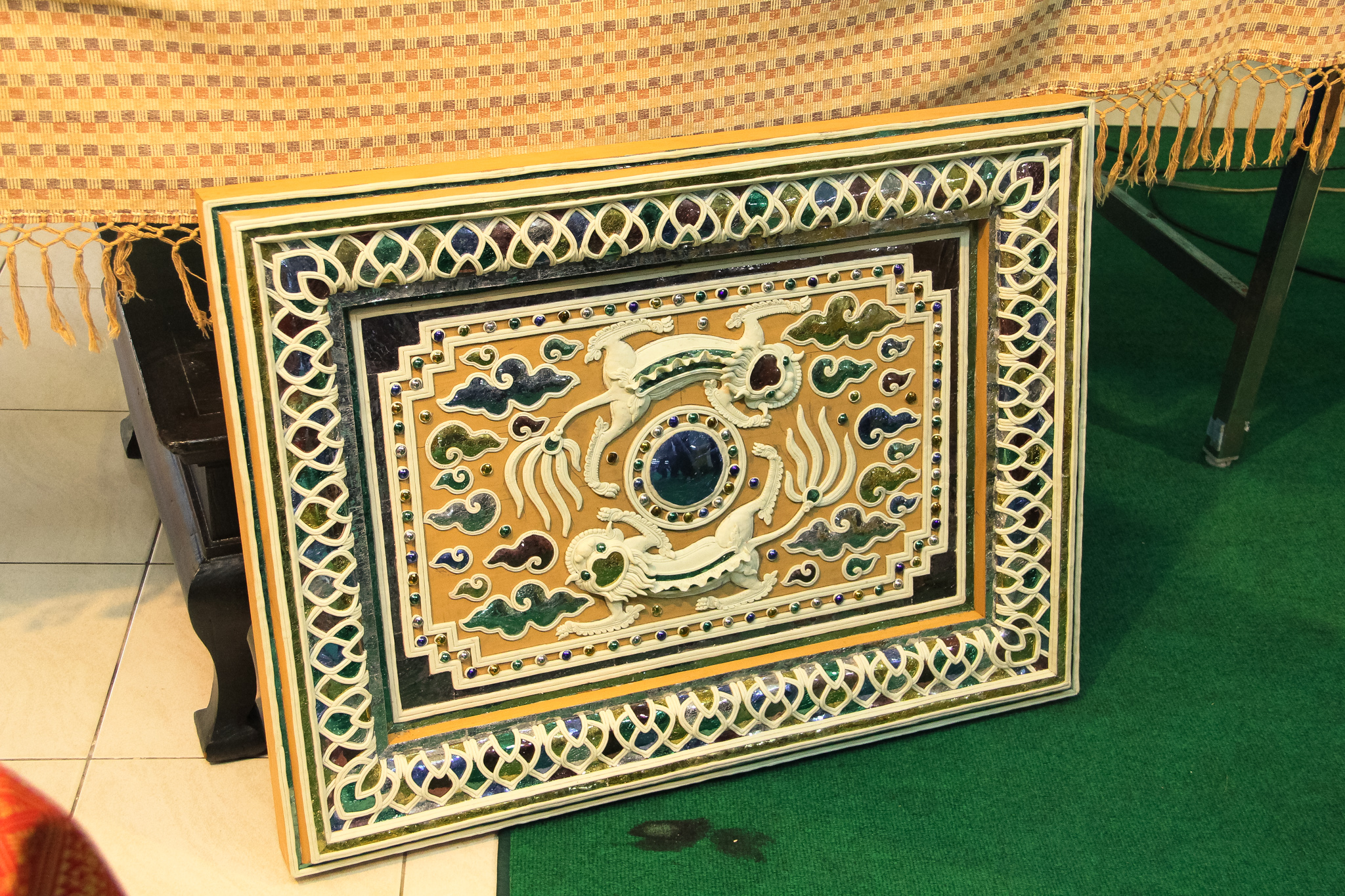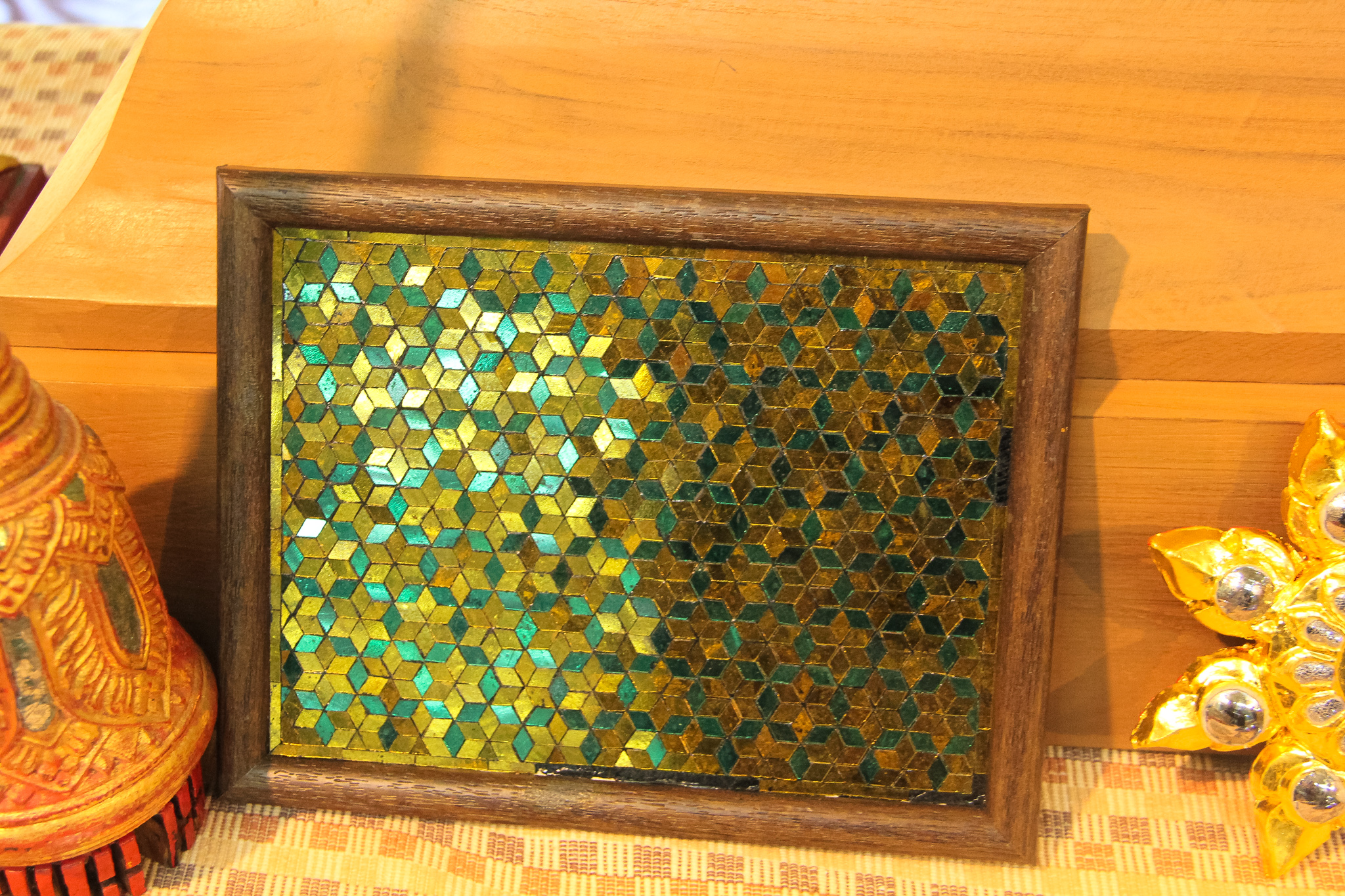 และเมื่อวันที่ 9 ธันวาคม 2563 วช. ได้ถวายสัตภัณฑ์ที่ประดับกระจกจืน ซึ่งเป็นกระจกที่ได้จากงานวิจัย ณ วัดช่างฆ้อง อำเภอเมือง จังหวัดเชียงใหม่ โดยได้รับความร่วมมือจาก ศิลปิน “ฝุ่น หอสูง” นายชาญยุทธ โตบัณฑิต ออกแบบและสร้างสัตภัณฑ์ เป็นความสำเร็จอย่างเป็นรูปธรรมของการนำผลงานวิจัยจากห้องปฏิบัติการ ที่สามารถต่อยอดทั้งเชิงพาณิชย์และสามารถนำไปทำนุบำรุงศิลปวัฒนธรรมของประเทศไทย เพื่อรักษามรดกอันทรงคุณค่าให้คงอยู่เคียงคู่คนไทยสืบไป