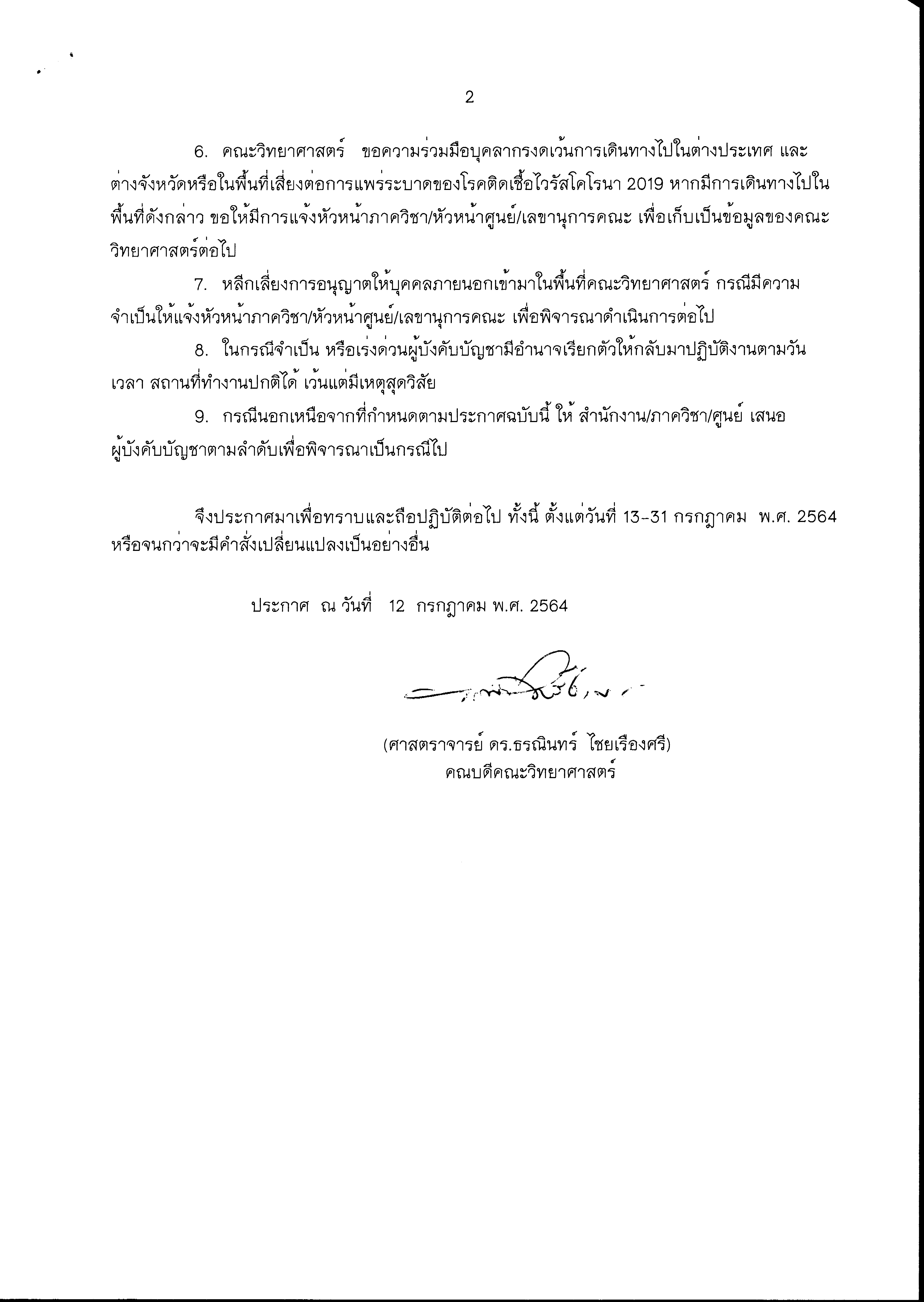 ประกาศคณะวิทยาศาสตร์ เรื่อง แนวปฏิบัติการ Work from Home ในสถานการณ์ COVID-19 (12 ก.ค. 64)