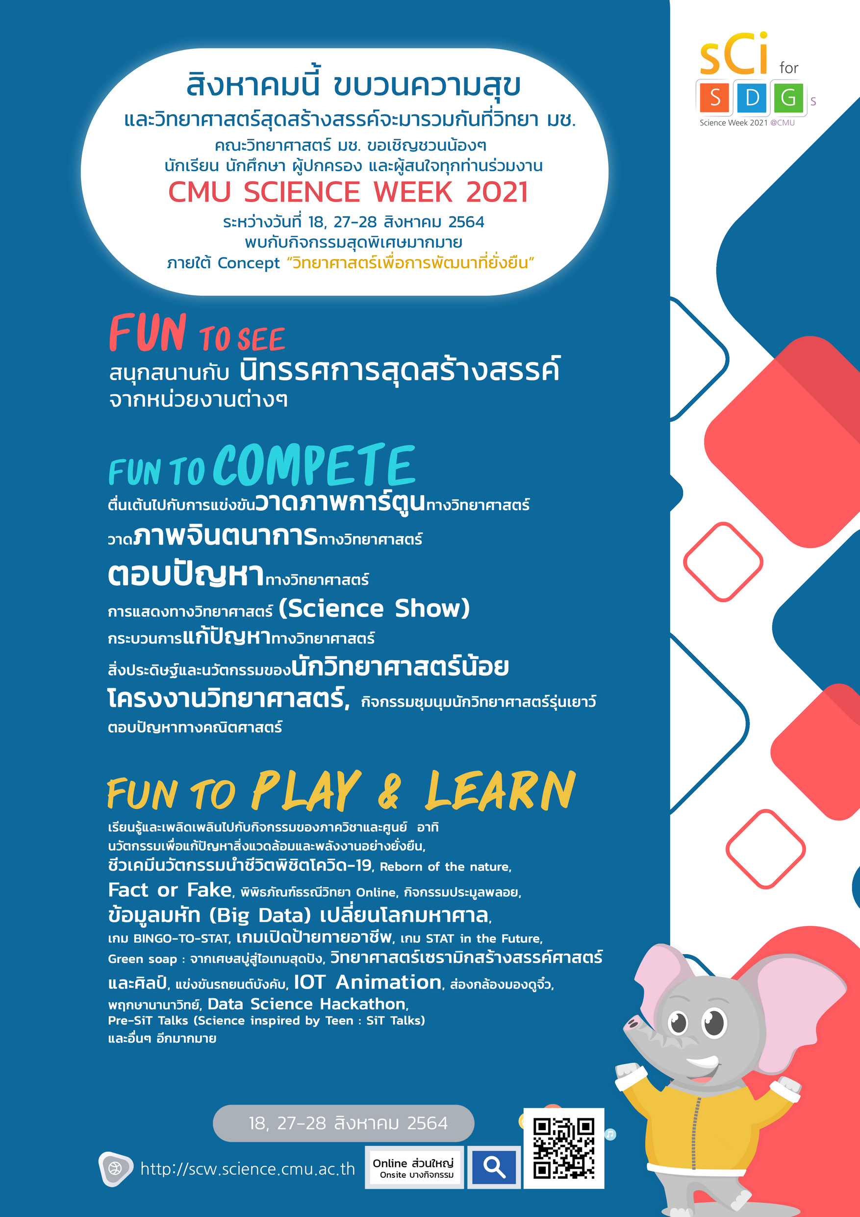 CMU SCIENCE WEEK กลับมาแล้ว !! 18, 27-28 สิงหาคมนี้ ขบวนความสุขและวิทยาศาสตร์สุดสร้างสรรค์ จะมารวมกันที่วิทยา มช.
