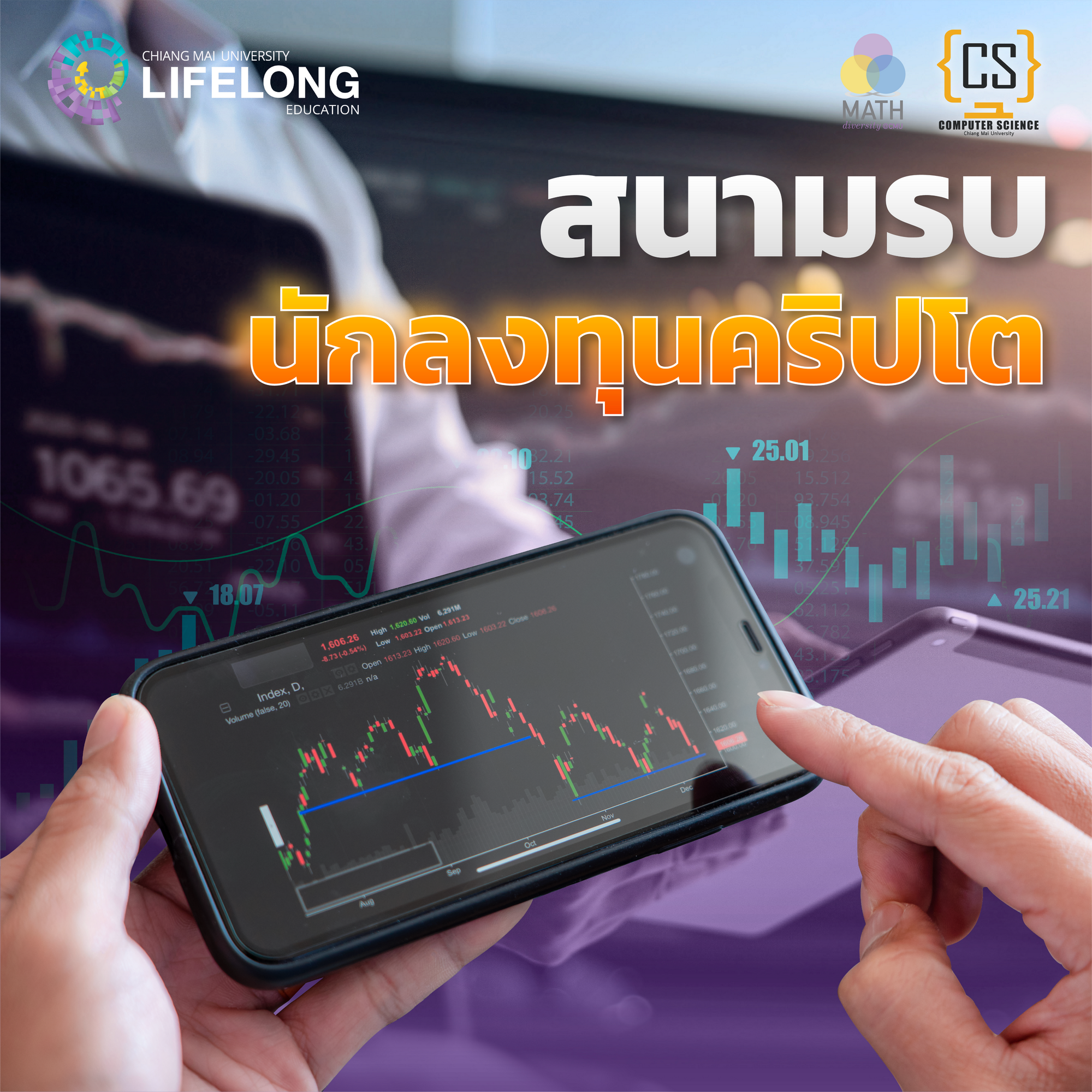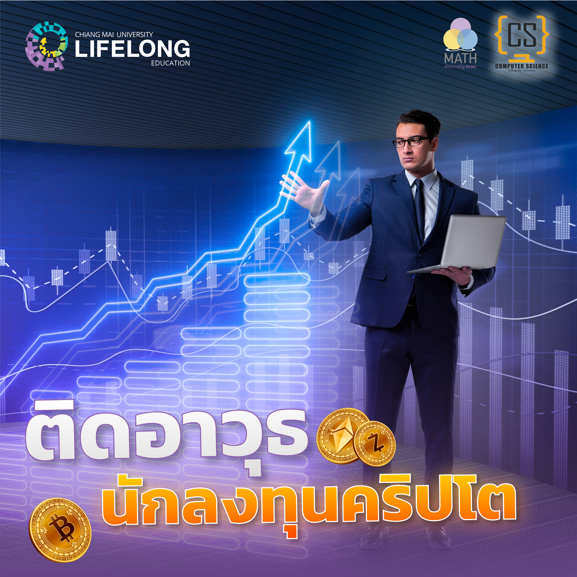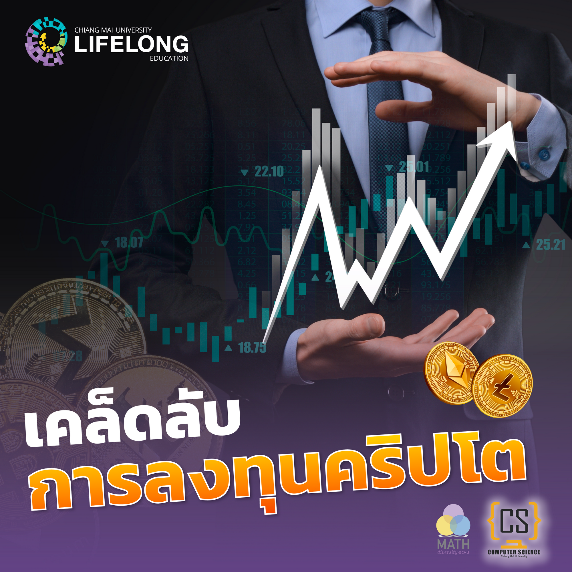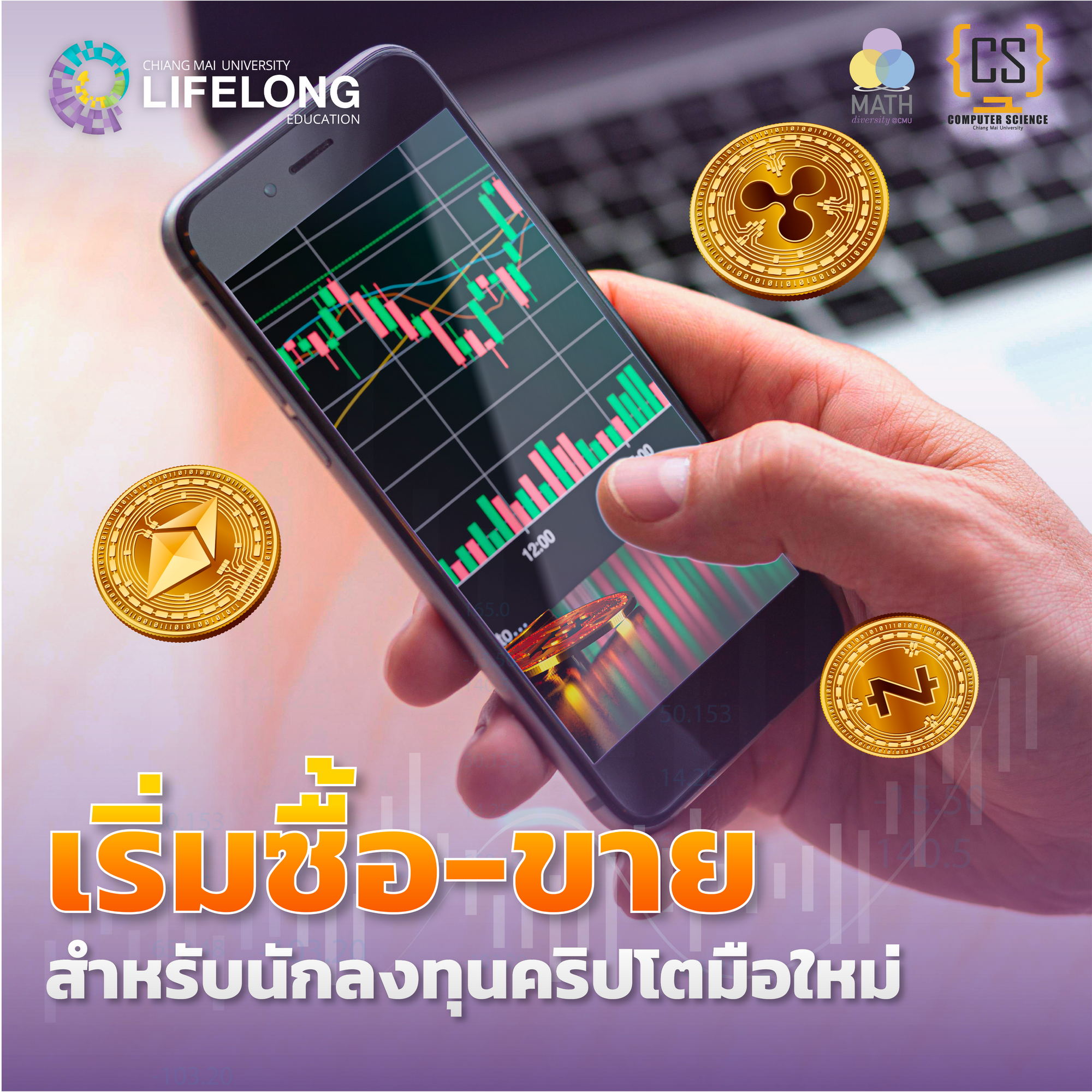 คณะวิทยาศาสตร์ มช. โดย ภาควิชาวิทยาการคอมพิวเตอร์ และภาควิชาคณิตศาสตร์ ชวนผู้สนใจการลงทุนทุกคน “มาลับคมอาวุธนักลงทุน Cryptocurrency”