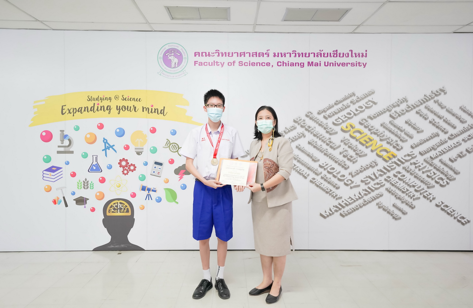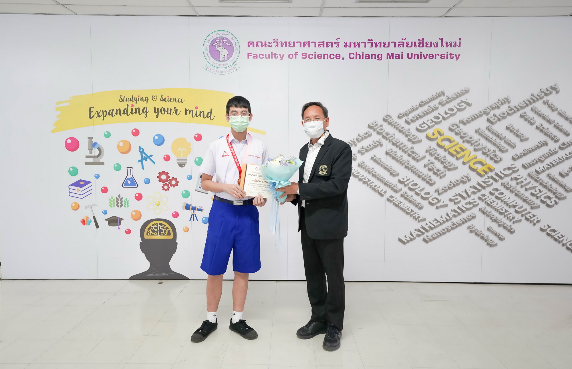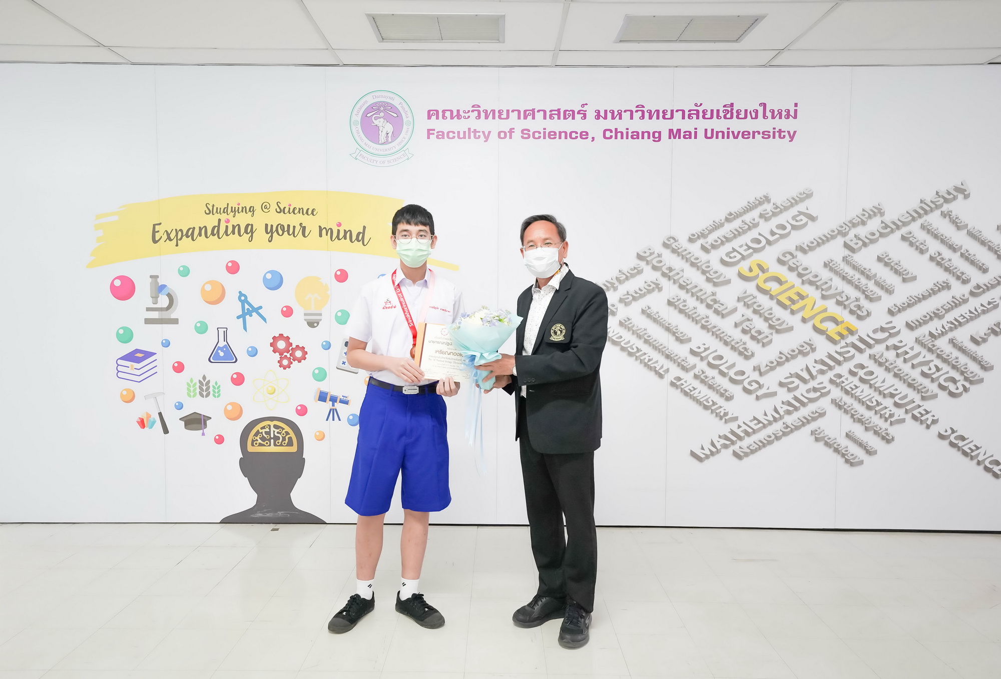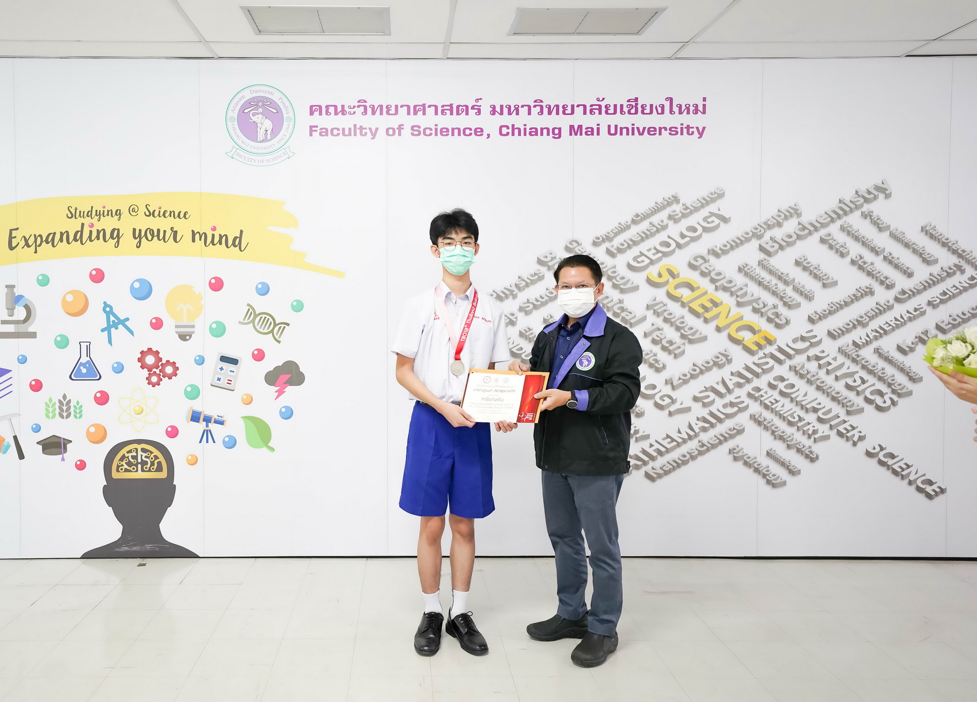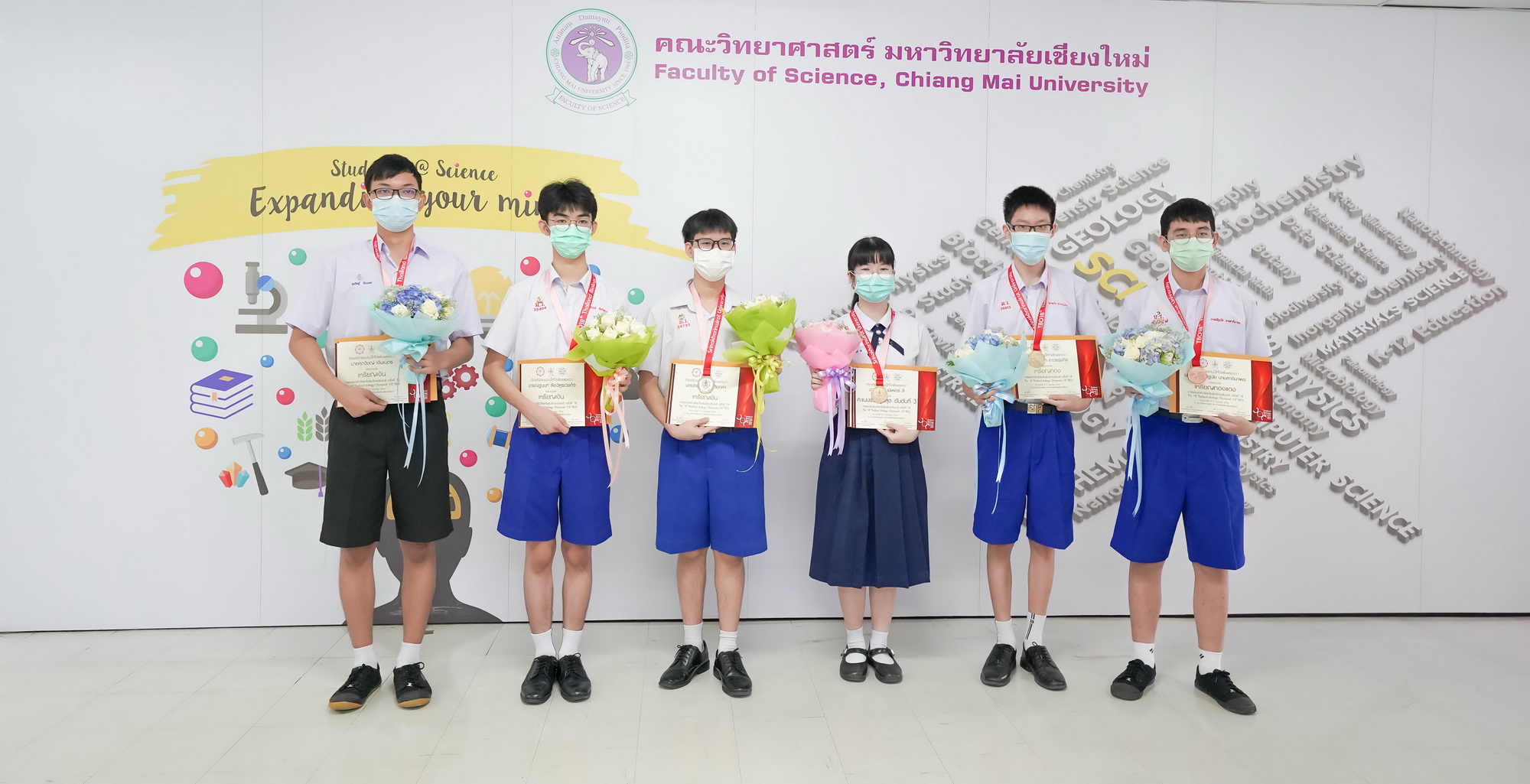 วันที่ 22 กรกฎาคม 2564 คณะวิทยาศาสตร์จัดพิธีมอบเกียรติบัตร เหรียญรางวัล และช่อดอกไม้ เพื่อแสดงความยินดีกับนักเรียนผู้แทนศูนย์ สอวน. มหาวิทยาลัยเชียงใหม่ ที่เข้าร่วมการแข่งขันชีววิทยาโอลิมปิกระดับชาติ ครั้งที่ 18 (18th Thailand Biology Olympiad: 18th TBO) ระหว่างวันที่ 8-11 มิถุนายน 2564 ซึ่งจัดโดยมหาวิทยาลัยศรีนครินทรวิโรฒ ในรูปแบบออนไลน์ โดยมีผู้ช่วยศาสตราจารย์ ดร.ภควรรณ พวงสมบัติ รองคณบดีฝ่ายวิชาการ คณะวิทยาศาสตร์ พร้อมด้วย รองศาสตราจารย์ ดร.หทัยชนก เนียมทรัพย์ รองคณบดีฝ่ายบริหาร ผู้ช่วยศาสตราจารย์ ดร.ชิตชล ผลารักษ์ หัวหน้าภาควิชาชีววิทยา ผู้ช่วยศาสตราจารย์ ดร.สิริพร โรจน์อารยานนท์ ประธานสาขาชีววิทยา ศูนย์ สอวน. มหาวิทยาลัยเชียงใหม่ และนายพร พรมมหาราช เลขานุการคณะวิทยาศาสตร์ ร่วมมอบเกียรติบัตร เหรียญรางวัล และช่อดอกไม้ ให้กับนักเรียนผู้แทนศูนย์ สอวน. มหาวิทยาลัยเชียงใหม่ จำนวน 6 คน ที่เข้าร่วมการแข่งขัน ซึ่งมีผู้เข้าแข่งขันทั้งสิ้น 95 คน จาก 13 ศูนย์ทั่วประเทศ และมีผลการแข่งขัน ดังนี้