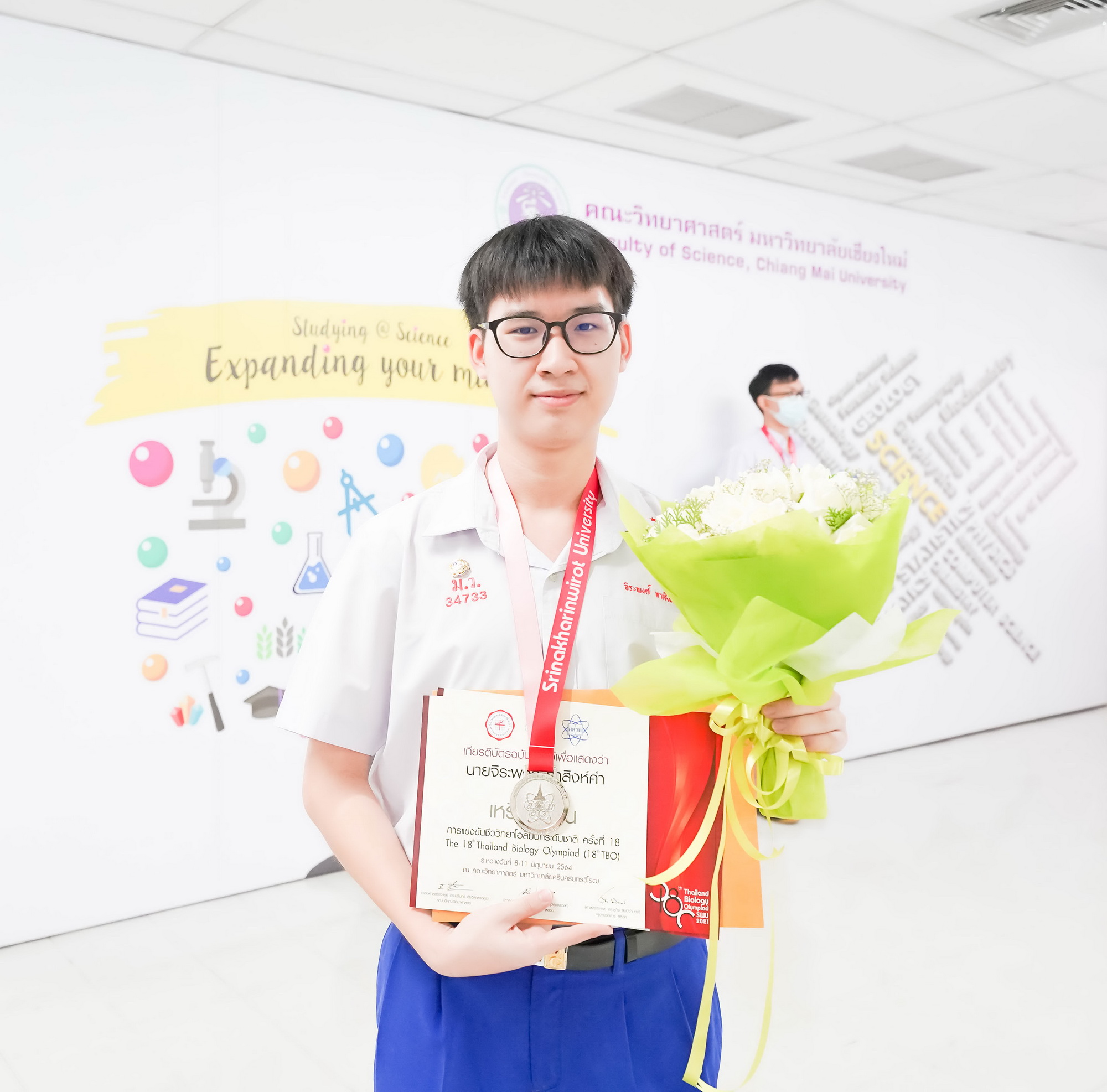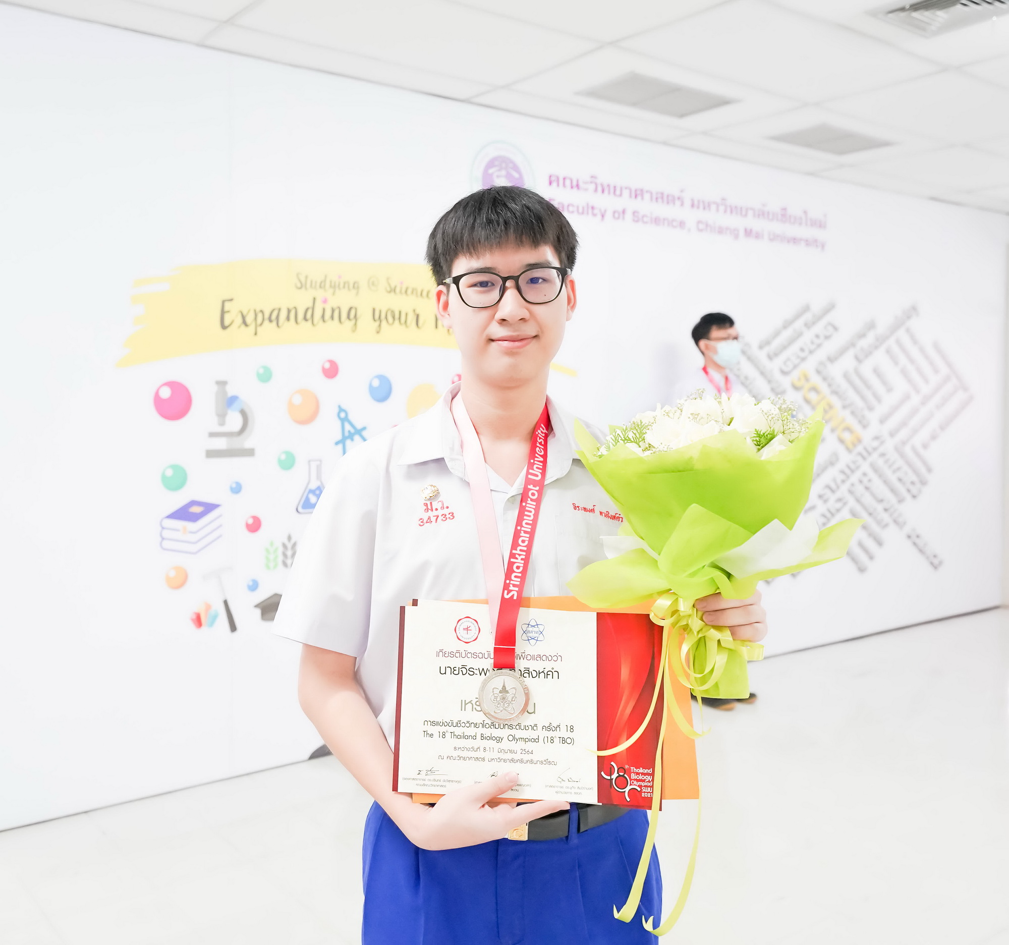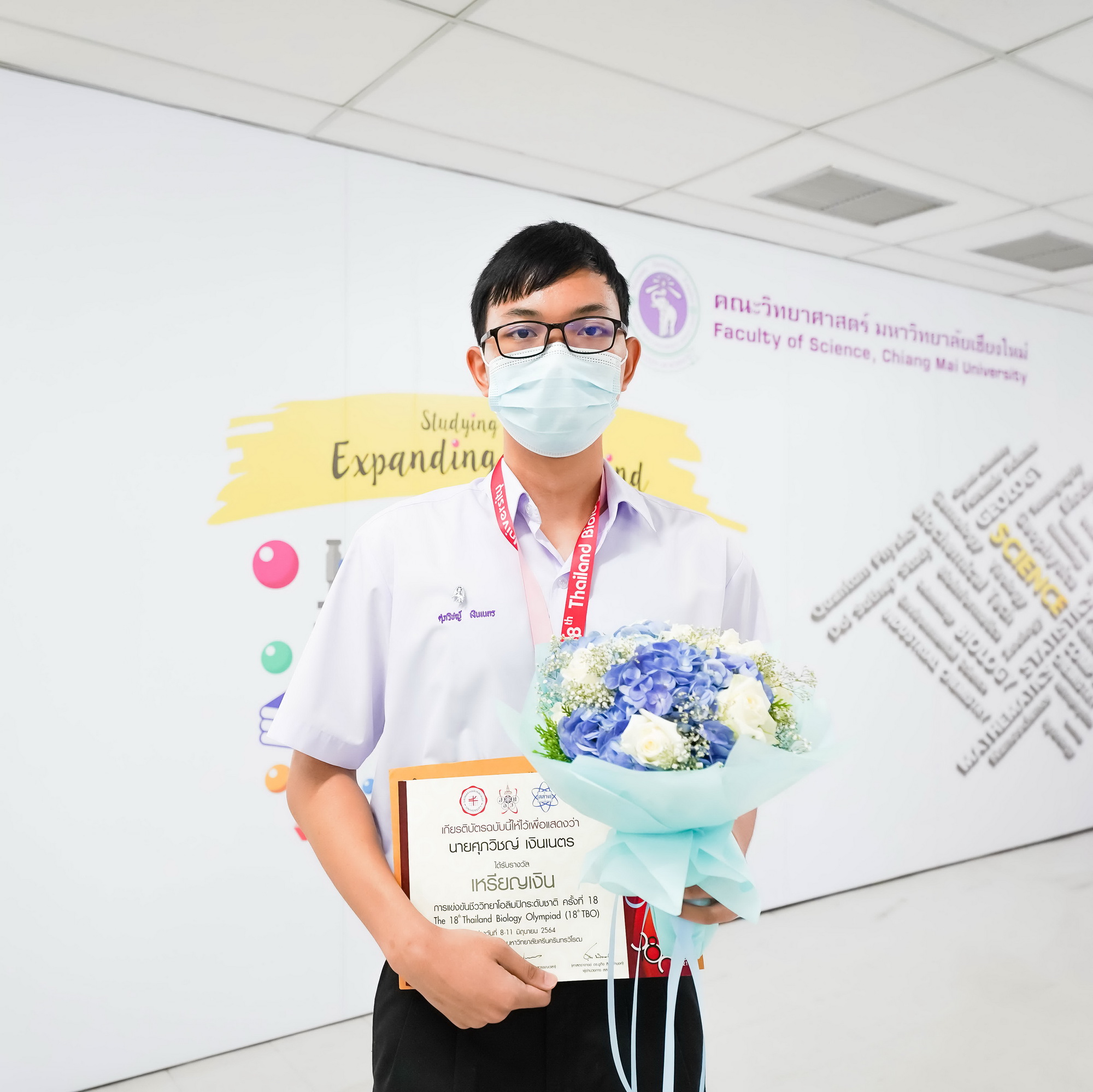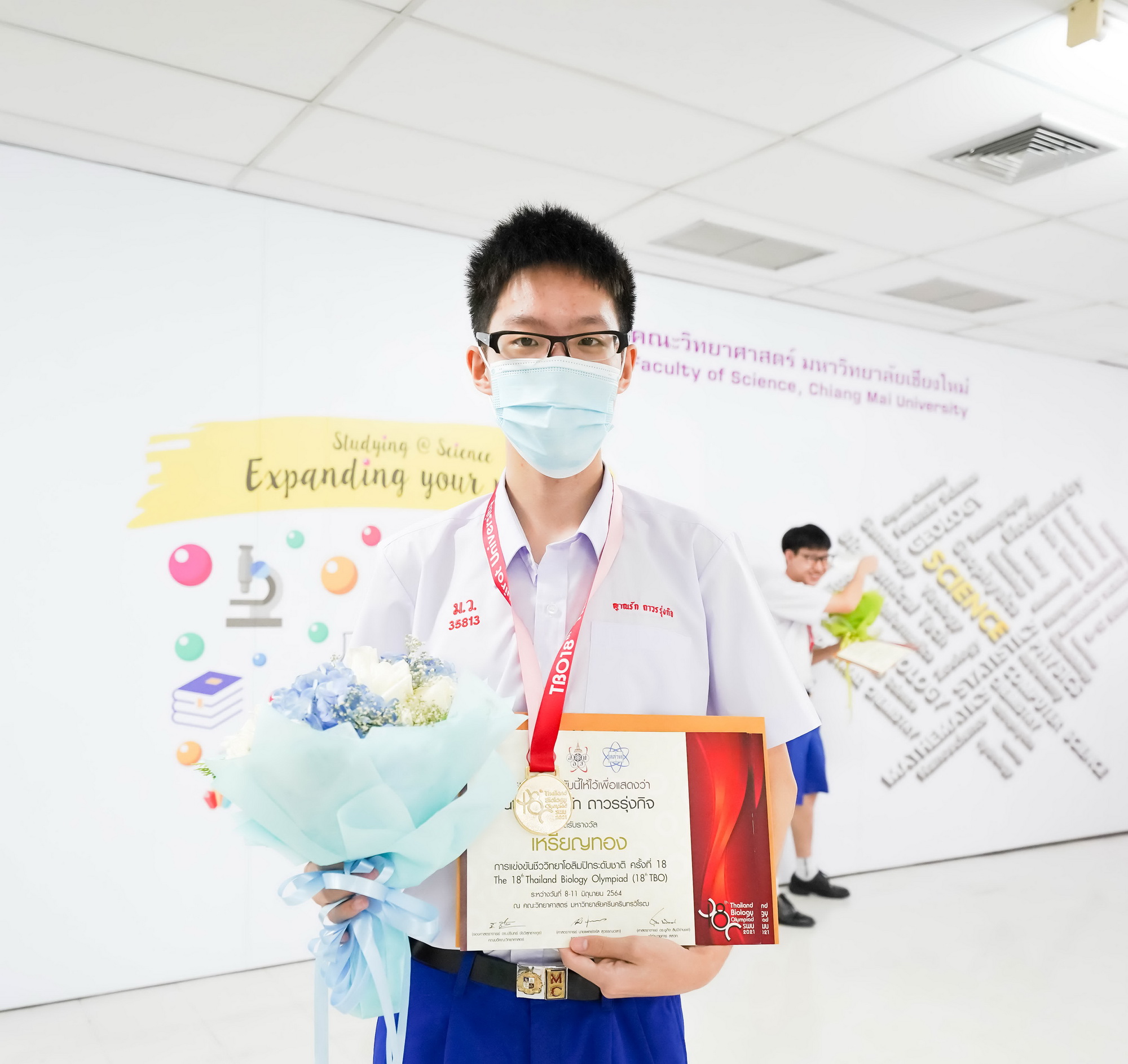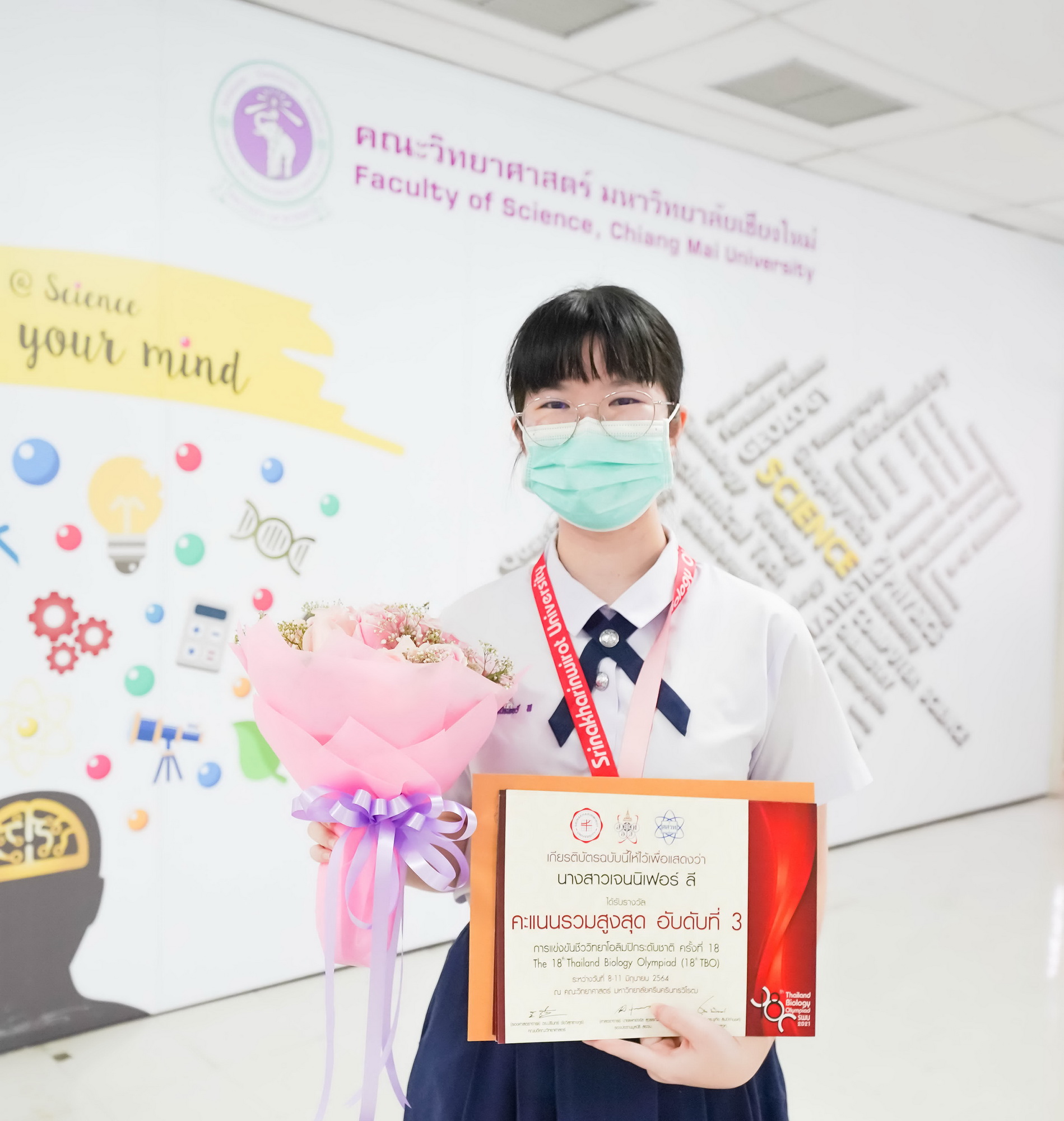 วันที่ 22 กรกฎาคม 2564 คณะวิทยาศาสตร์จัดพิธีมอบเกียรติบัตร เหรียญรางวัล และช่อดอกไม้ เพื่อแสดงความยินดีกับนักเรียนผู้แทนศูนย์ สอวน. มหาวิทยาลัยเชียงใหม่ ที่เข้าร่วมการแข่งขันชีววิทยาโอลิมปิกระดับชาติ ครั้งที่ 18 (18th Thailand Biology Olympiad: 18th TBO) ระหว่างวันที่ 8-11 มิถุนายน 2564 ซึ่งจัดโดยมหาวิทยาลัยศรีนครินทรวิโรฒ ในรูปแบบออนไลน์ โดยมีผู้ช่วยศาสตราจารย์ ดร.ภควรรณ พวงสมบัติ รองคณบดีฝ่ายวิชาการ คณะวิทยาศาสตร์ พร้อมด้วย รองศาสตราจารย์ ดร.หทัยชนก เนียมทรัพย์ รองคณบดีฝ่ายบริหาร ผู้ช่วยศาสตราจารย์ ดร.ชิตชล ผลารักษ์ หัวหน้าภาควิชาชีววิทยา ผู้ช่วยศาสตราจารย์ ดร.สิริพร โรจน์อารยานนท์ ประธานสาขาชีววิทยา ศูนย์ สอวน. มหาวิทยาลัยเชียงใหม่ และนายพร พรมมหาราช เลขานุการคณะวิทยาศาสตร์ ร่วมมอบเกียรติบัตร เหรียญรางวัล และช่อดอกไม้ ให้กับนักเรียนผู้แทนศูนย์ สอวน. มหาวิทยาลัยเชียงใหม่ จำนวน 6 คน ที่เข้าร่วมการแข่งขัน ซึ่งมีผู้เข้าแข่งขันทั้งสิ้น 95 คน จาก 13 ศูนย์ทั่วประเทศ และมีผลการแข่งขัน ดังนี้