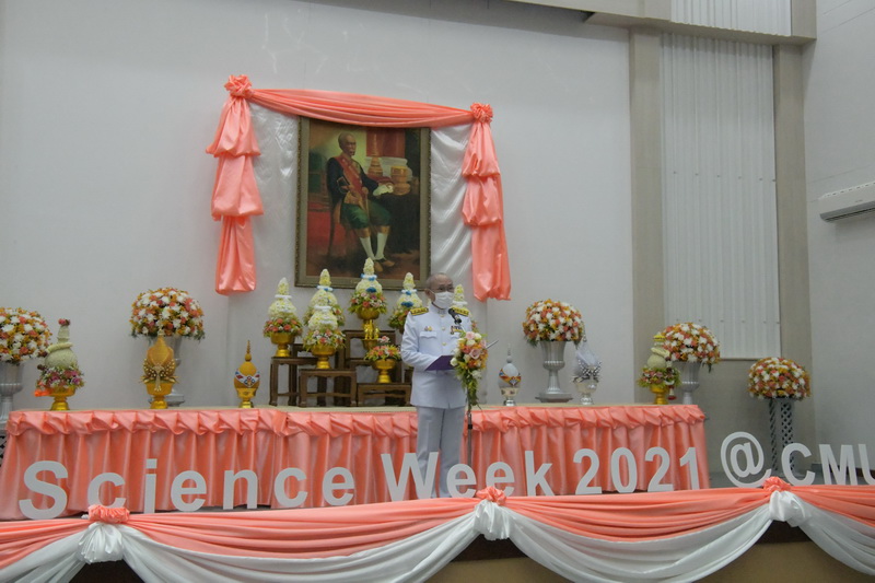 คณะวิทยาศาสตร์ มหาวิทยาลัยเชียงใหม่ จัดพิธีเปิดงานสัปดาห์วิทยาศาสตร์แห่งชาติ ส่วนภูมิภาค ประจำปี พ.ศ. 2564 โดยได้รับเกียรติจากนายเจริญฤทธิ์ สงวนสัตย์ ผู้ว่าราชการจังหวัดเชียงใหม่ เป็นประธานในพิธีถวายพานพุ่มราชสักการะ และกล่าวถวายราชสดุดีพระบาทสมเด็จพระจอมเกล้าเจ้าอยู่หัว “พระบิดาแห่งวิทยาศาสตร์ไทย” และมอบโล่เกียรติคุณแก่คณาจารย์และบุคลากรคณะวิทยาศาสตร์ที่สร้างชื่อเสียงให้กับมหาวิทยาลัยเชียงใหม่ อีกทั้งยังได้รับเกียรติจาก ศาสตราจารย์คลินิก นพ.นิเวศน์ นันทจิต อธิการบดีมหาวิทยาลัยเชียงใหม่ เป็นประธานในพิธีเปิดงาน และศาสตราจารย์ ดร.ธรณินทร์ ไชยเรืองศรี คณบดีคณะวิทยาศาสตร์ กล่าวรายงานความเป็นมาของการจัดงาน เมื่อวันที่ 18 สิงหาคม 2564 ณ ห้องบรรยาย SCB2100 และถ่ายทอดสดผ่านระบบออนไลน์