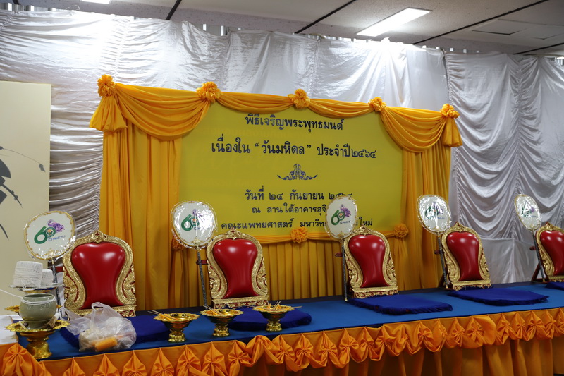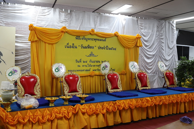 ผู้ช่วยศาสตราจารย์ ดร.จิรัฏฐ์ แสนทน รองคณบดีฝ่ายแผนและยุทธศาสตร์ และนายพร พรมมหาราช เลขานุการคณะวิทยาศาสตร์ ร่วมพิธีวางพวงมาลาถวายบังคมพระราชานุสาวรีย์สมเด็จพระมหิตลาธิเบศร อดุลยเดชวิกรม พระบรมราชชนก เนื่องในวันมหิดล ประจำปี 2564 ณ ลานพระบรมราชานุสาวรีย์ฯ คณะแพทยศาสตร์ มหาวิทยาลัยเชียงใหม่ เมื่อวันที่ 23 กันยายน พ.ศ. 2564