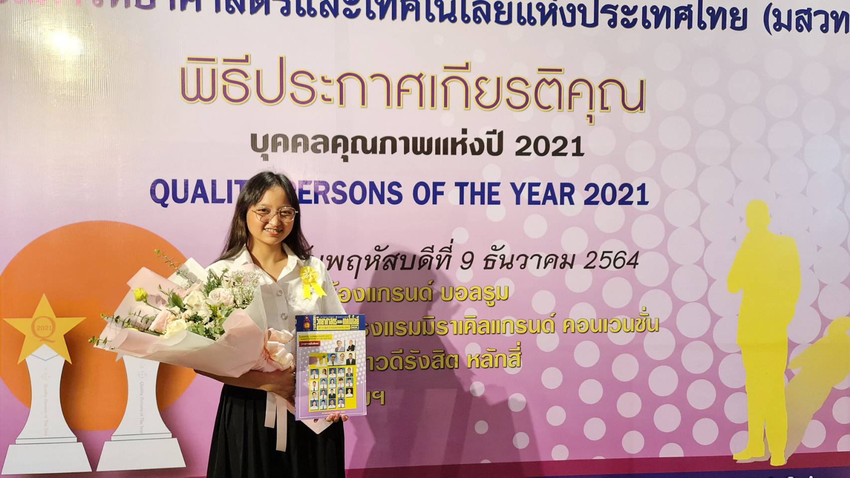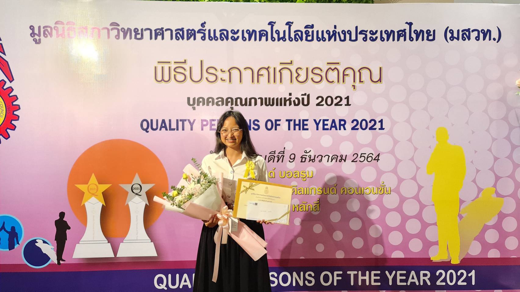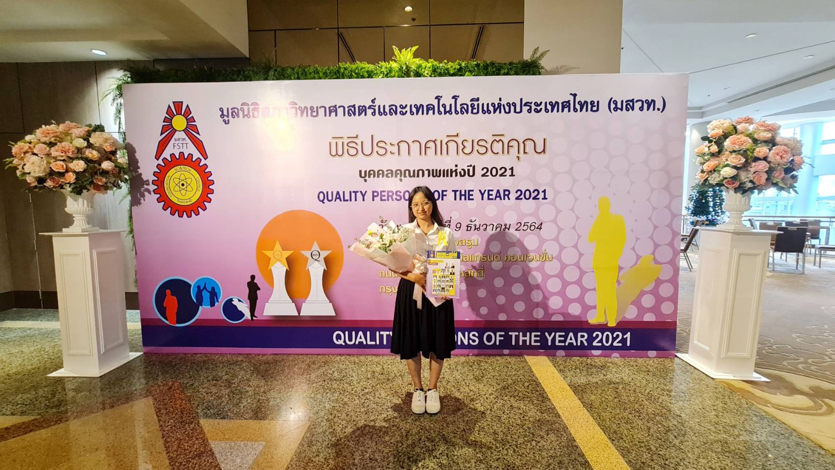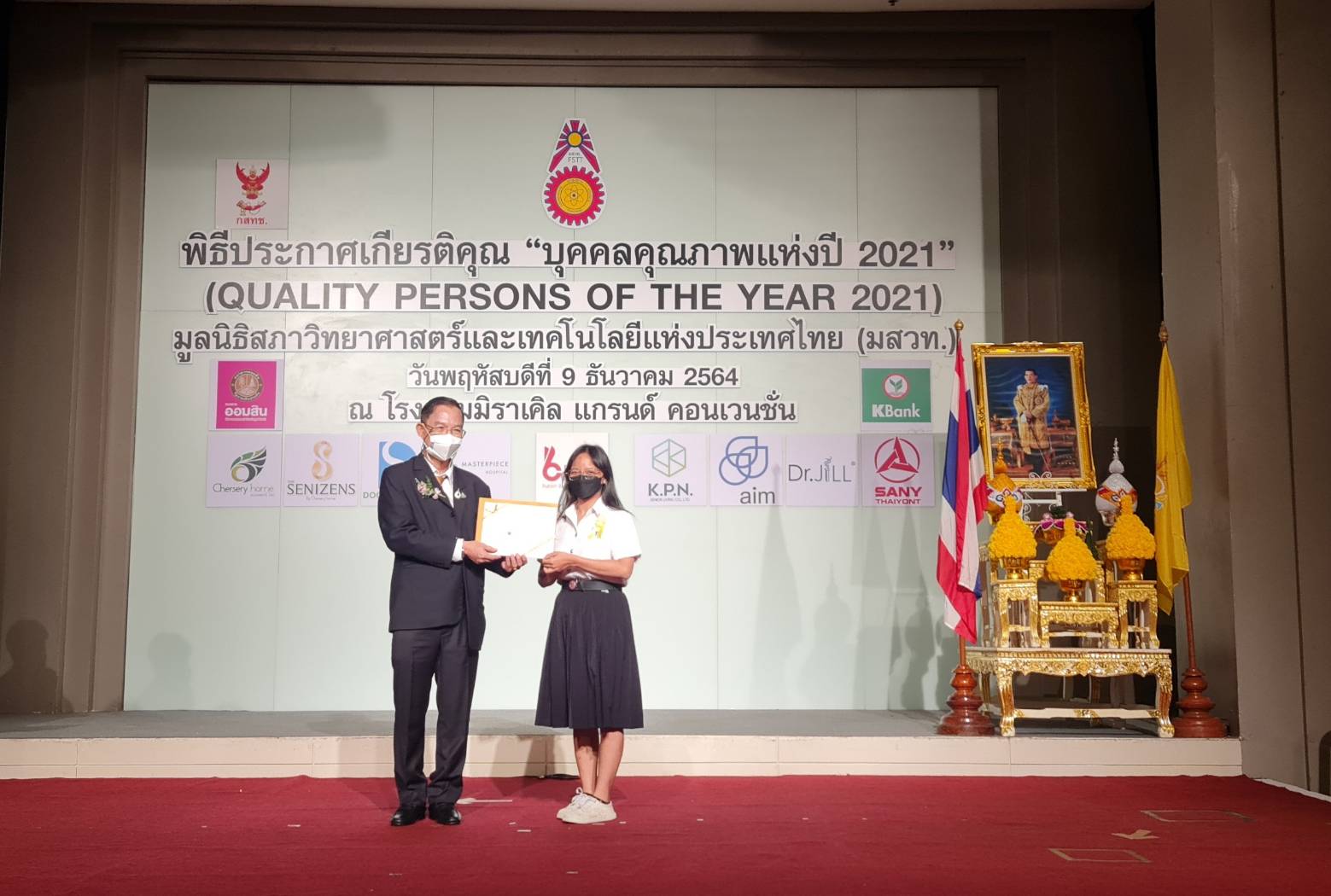 นางสาวพิชญ์พาณี บุญประดับ นักศึกษาชั้นปีที่ 3 สาขาวิชาวิทยาศาสตร์สิ่งแวดล้อม คณะวิทยาศาสตร์ มช. ได้รับทุนเยาวชนคุณภาพแห่งปี 2021” (Quality Youths Scholarship of The Year 2021) จากมูลนิธิสภาวิทยาศาสตร์และเทคโนโลยีแห่งประเทศไทย (มสวท.) กระทรวงวิทยาศาสตร์และเทคโนโลยี เมื่อวันที่ 9 ธันวาคม 2564 ณ โรงแรมมิราเคิล แกรนด์ คอนเวนชั่น