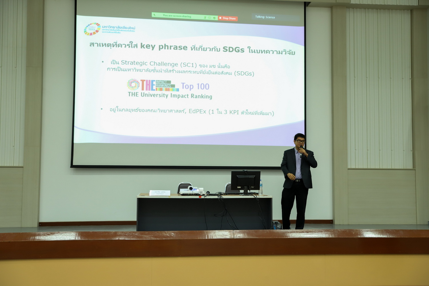 กิจกรรมภายในงานประกอบด้วย การบรรยายพิเศษหัวข้อ "การขับเคลื่อนงานวิจัยสู่การใช้ประโยชน์ต่อภาคธุรกิจ" โดย ผู้ช่วยศาสตราจารย์ ดร.ธัญญานุภาพ อานันทนะ ผู้อำนวยการอุทยานวิทยาศาสตร์และเทคโนโลยี หัวข้อ "ยุทธศาสตร์ด้านการวิจัยของชาติและมหาวิทยาลัยเชียงใหม่" โดย รองศาสตราจารย์ ดร.วินิตา บุณโยดม หัวหน้าศูนย์วิจัยวัสดุศาสตร์ และหัวข้อ "การขับเคลื่อนงานวิจัยตอบโจทย์ SDGs" โดย ผู้ช่วยศาสตราจารย์ ดร.สุเมธ สกุลเสริมสุข ผู้ช่วยคณบดีฝ่ายวิจัยและวิเทศสัมพันธ์