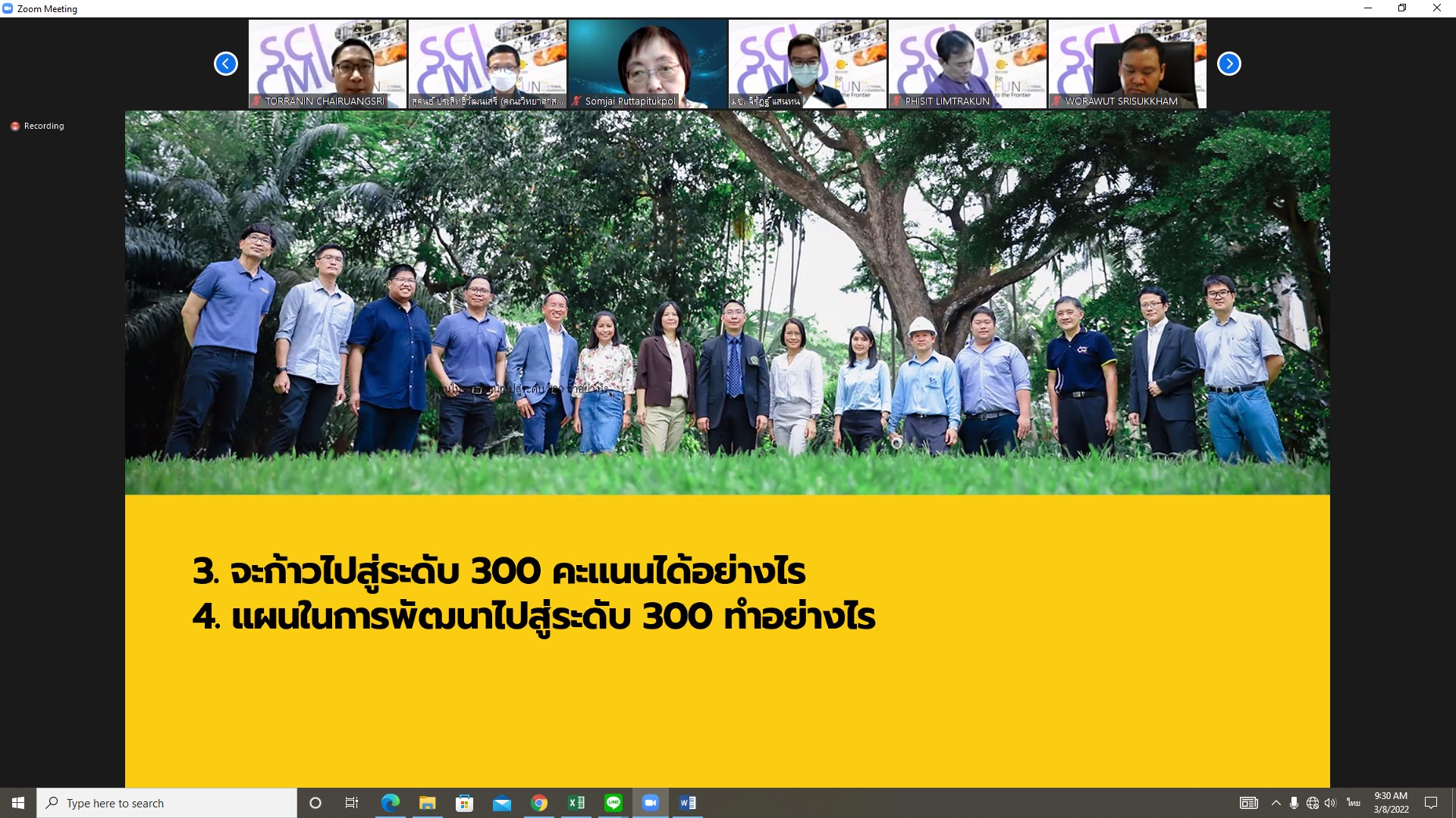 โดยการประชุมในครั้งนี้ นอกจากจะเป็นการติดตามความก้าวหน้าในการดำเนินงาน และผลลัพธ์ที่ผ่านมาของคณะวิทยาศาสตร์แล้ว ยังเป็นการเตรียมความพร้อมก่อนการประเมินระดับ 300 คะแนน ในปี พ.ศ. 2565 อีกด้วย