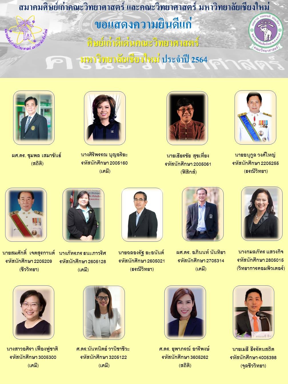 ศิษย์เก่าดีเด่นคณะวิทยาศาสตร์ ประจำปี 2564