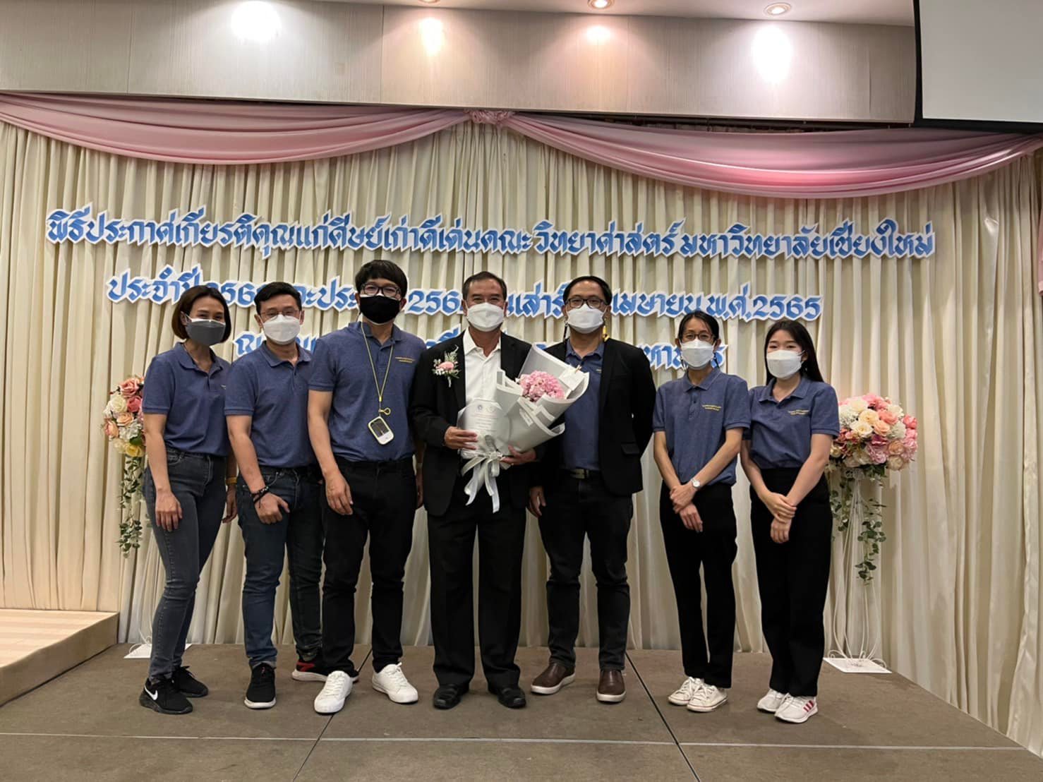 ผู้ช่วยศาสตราจารย์ ดร.ชัยพร ตั้งทอง รองคณบดีฝ่ายพัฒนาคุณภาพนักศึกษาและศิษย์เก่าสัมพันธ์ คณะวิทยาศาสตร์ ดร.สมหมาย เตชวาล นายกสมาคมศิษย์เก่าคณะวิทยาศาสตร์ พร้อมด้วยบุคลากรหน่วยพัฒนาคุณภาพนักศึกษาและศิษย์เก่าสัมพันธ์ ร่วมแสดงความยินดีกับศิษย์เก่าคณะวิทยาศาสตร์ที่ได้รับการเชิดชูเกียรติเป็นศิษย์เก่าดีเด่นคณะวิทยาศาสตร์ ประจำปี 2563-2564 เมื่อวันที่ 2 เมษายน 2565 ณ ร้านเพลินวิภาวดีรังสิต กรุงเทพมหานคร โดยมีรายชื่อ ดังนี้
