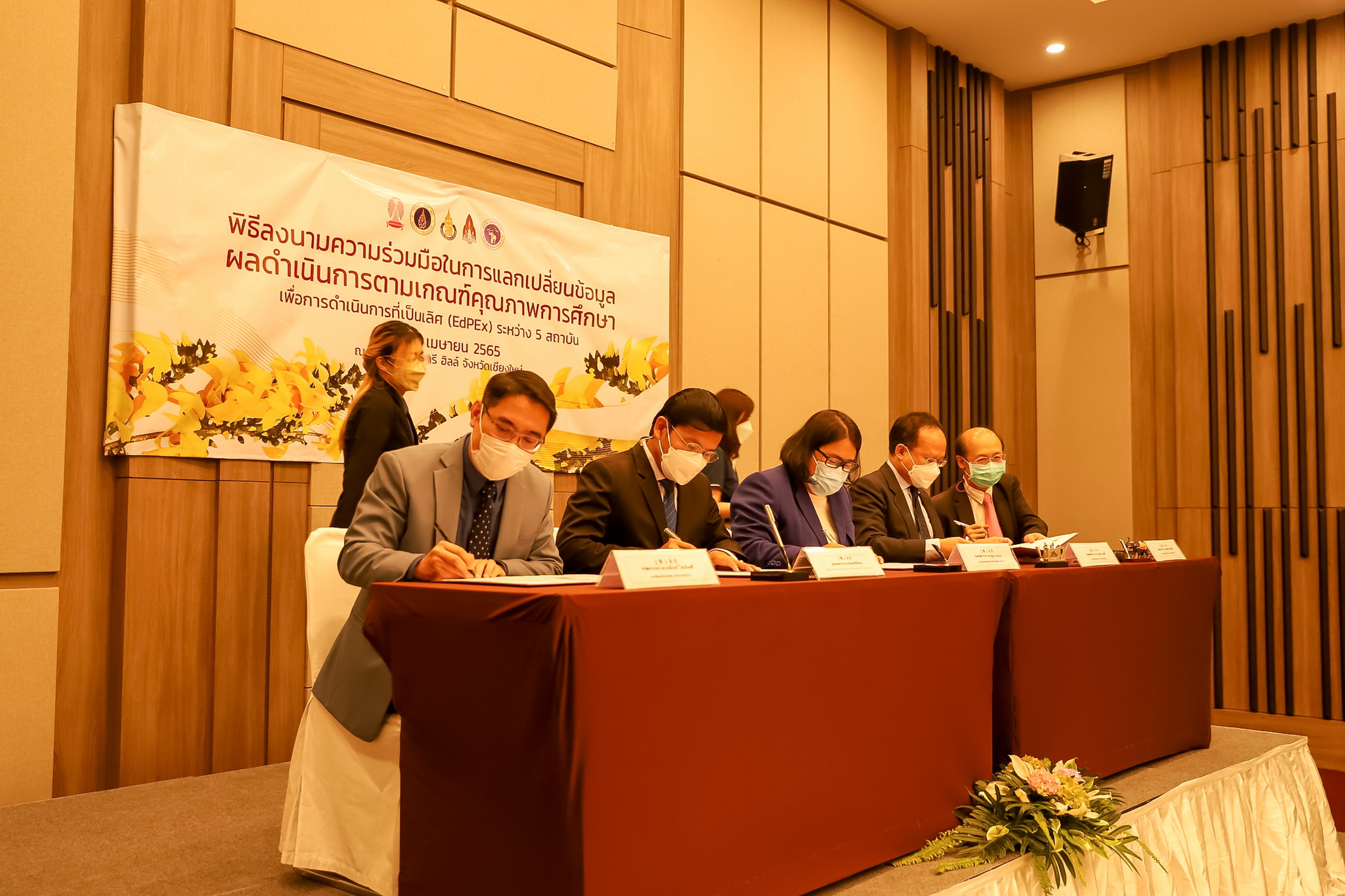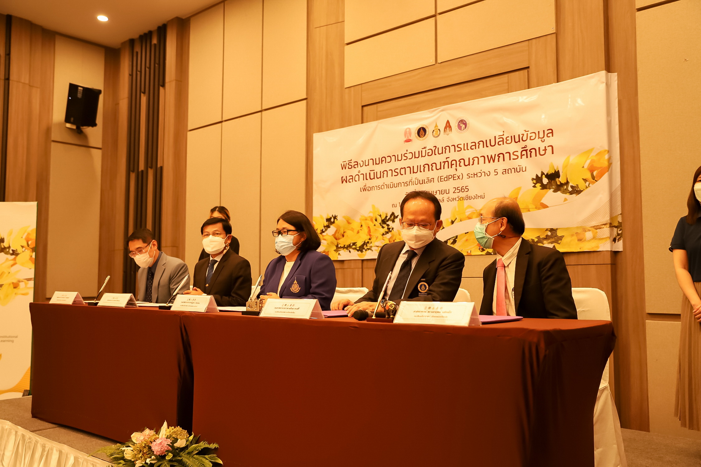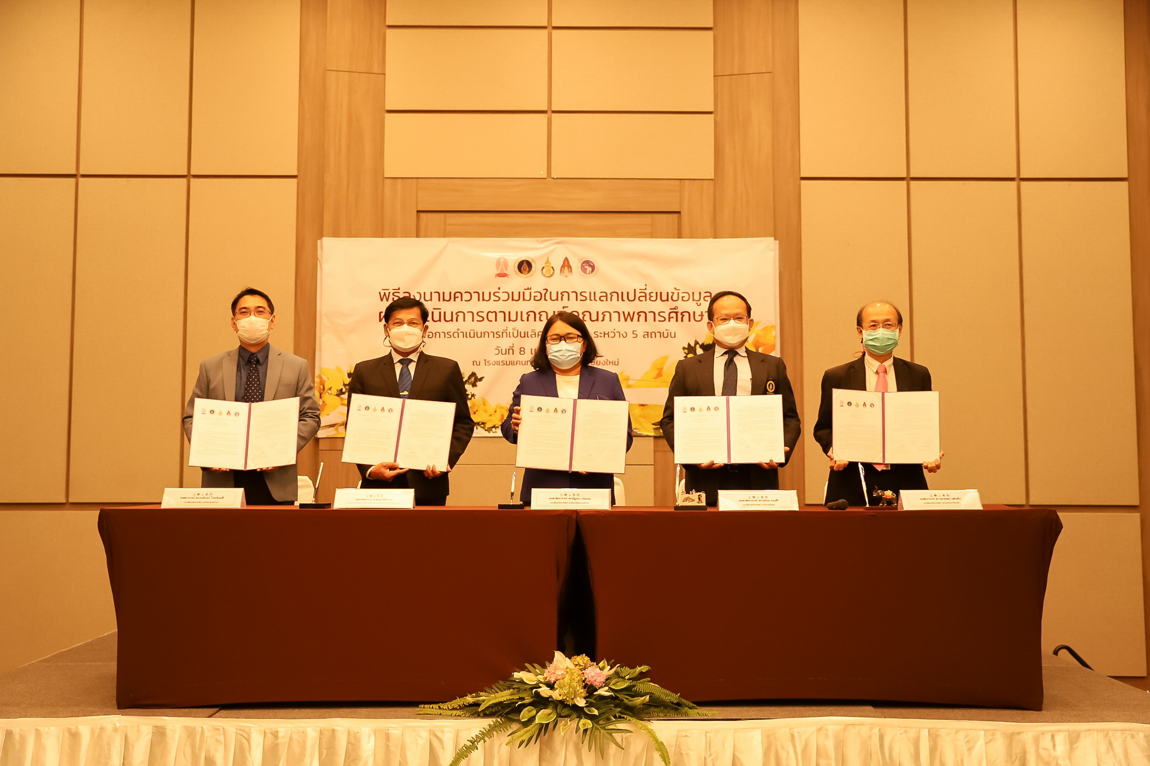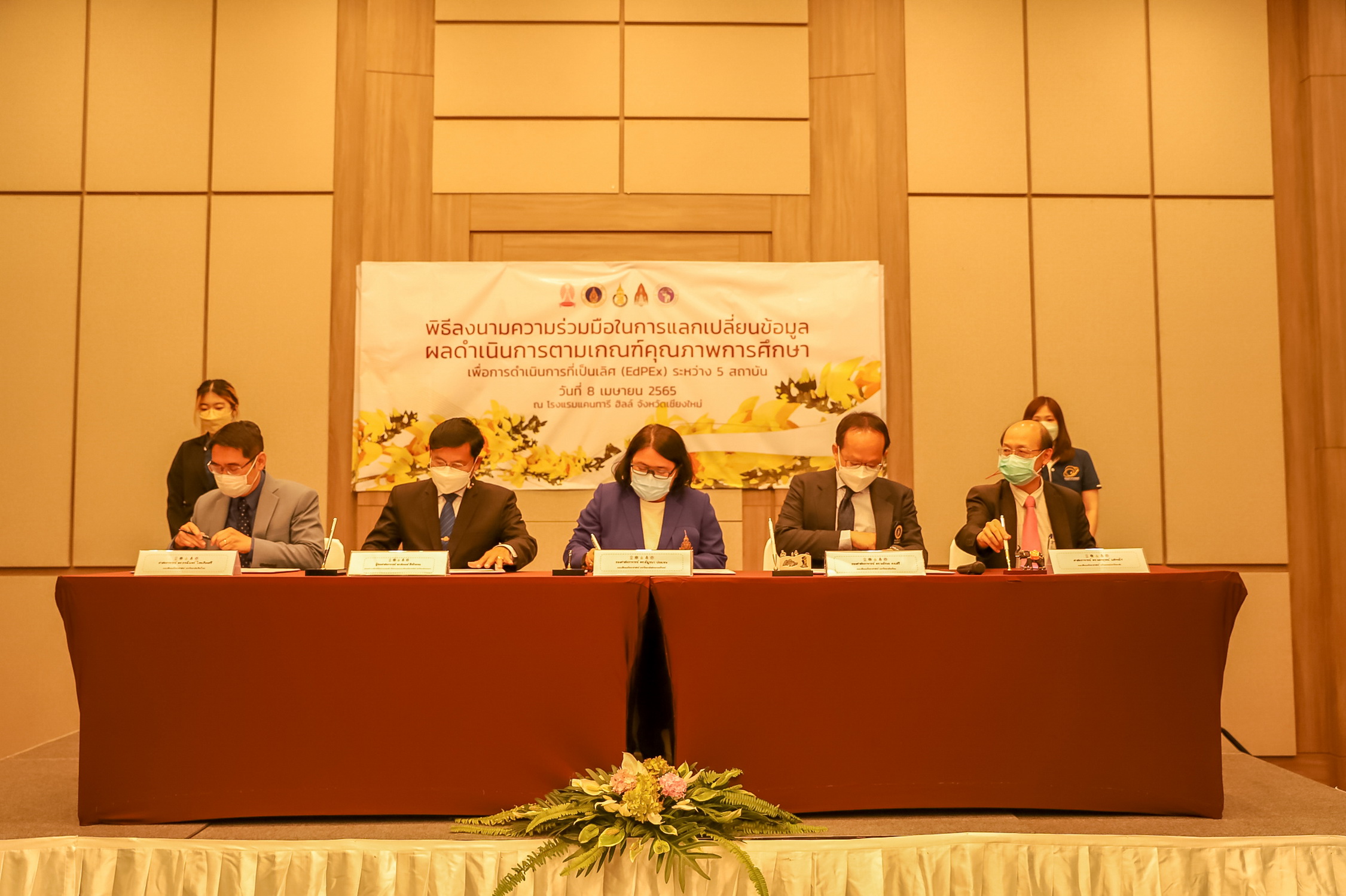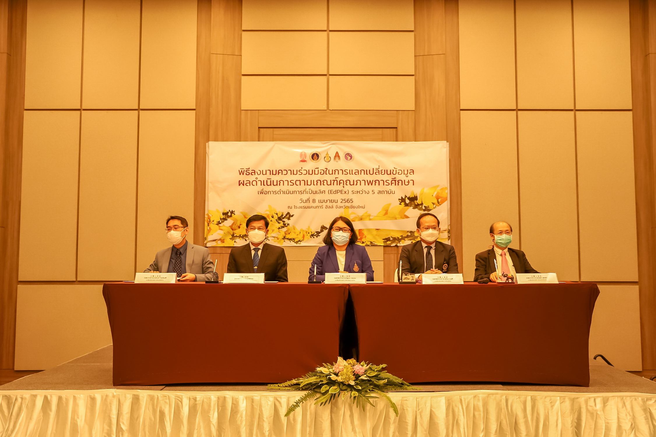 วันที่ 8 เมษายน 2565 - ศาสตราจารย์ ดร.ธรณินทร์ ไชยเรืองศรี คณบดีคณะวิทยาศาสตร์ มหาวิทยาลัยเชียงใหม่ ลงนามความร่วมมือในการแลกเปลี่ยนข้อมูลผลการดำเนินการตามเกณฑ์คุณภาพการศึกษาเพื่อการดำเนินการที่เป็นเลิศ (EdPEx) ร่วมกับผู้บริหารคณะวิทยาศาสตร์ จุฬาลงกรณ์มหาวิทยาลัย คณะวิทยาศาสตร์ มหาวิทยาลัยมหิดล คณะวิทยาศาสตร์ มหาวิทยาลัยสงขลานครินทร์ และคณะวิทยาศาสตร์ มหาวิทยาลัยขอนแก่น รวม 5 สถาบัน ณ โรงแรมแคนทารี ฮิลล์ จังหวัดเชียงใหม่ ซึ่งประกอบด้วย