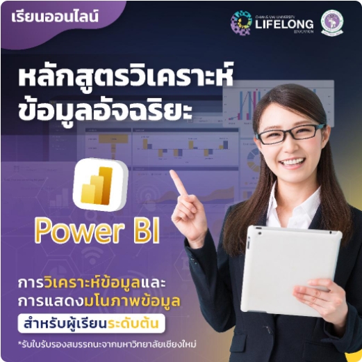 ภาควิชาวิทยาการคอมพิวเตอร์ คณะวิทยาศาสตร์ เปิดรับสมัครผู้ที่สนใจเข้าร่วมอบรมหลักสูตรระยะสั้น การวิเคราะห์ข้อมูลและการแสดงมโนภาพข้อมูลด้วย Power BI และการวิเคราะห์ Cryptocurrency โดยใช้ machine learning ภายใต้วิทยาลัยการศึกษาตลอดชีวิต มหาวิทยาลัยเชียงใหม่