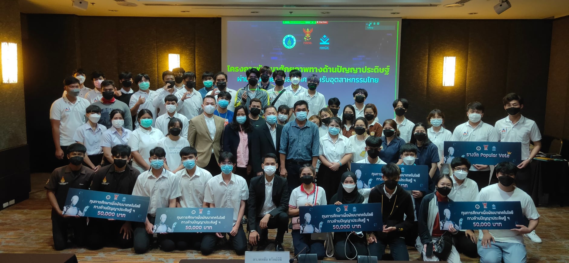 นักศึกษาภาควิชาวิทยาการคอมพิวเตอร์ คณะวิทย์ มช. พร้อมเพื่อนร่วมทีม คว้ารางวัลชนะเลิศ พร้อมทุนการศึกษา 5 หมื่นบาท เพื่อพัฒนาเทคโนโลยีทางด้านปัญญาประดิษฐ์ฯ จากโครงการพัฒนาศักยภาพทางด้านปัญญาประดิษฐ์ (Artificial Intelligence) ผ่านเครือข่ายสารสนเทศ สำหรับอุตสาหกรรมไทย ระหว่างวันที่ 8-11 เมษายน 2565 ที่กรุงเทพฯ