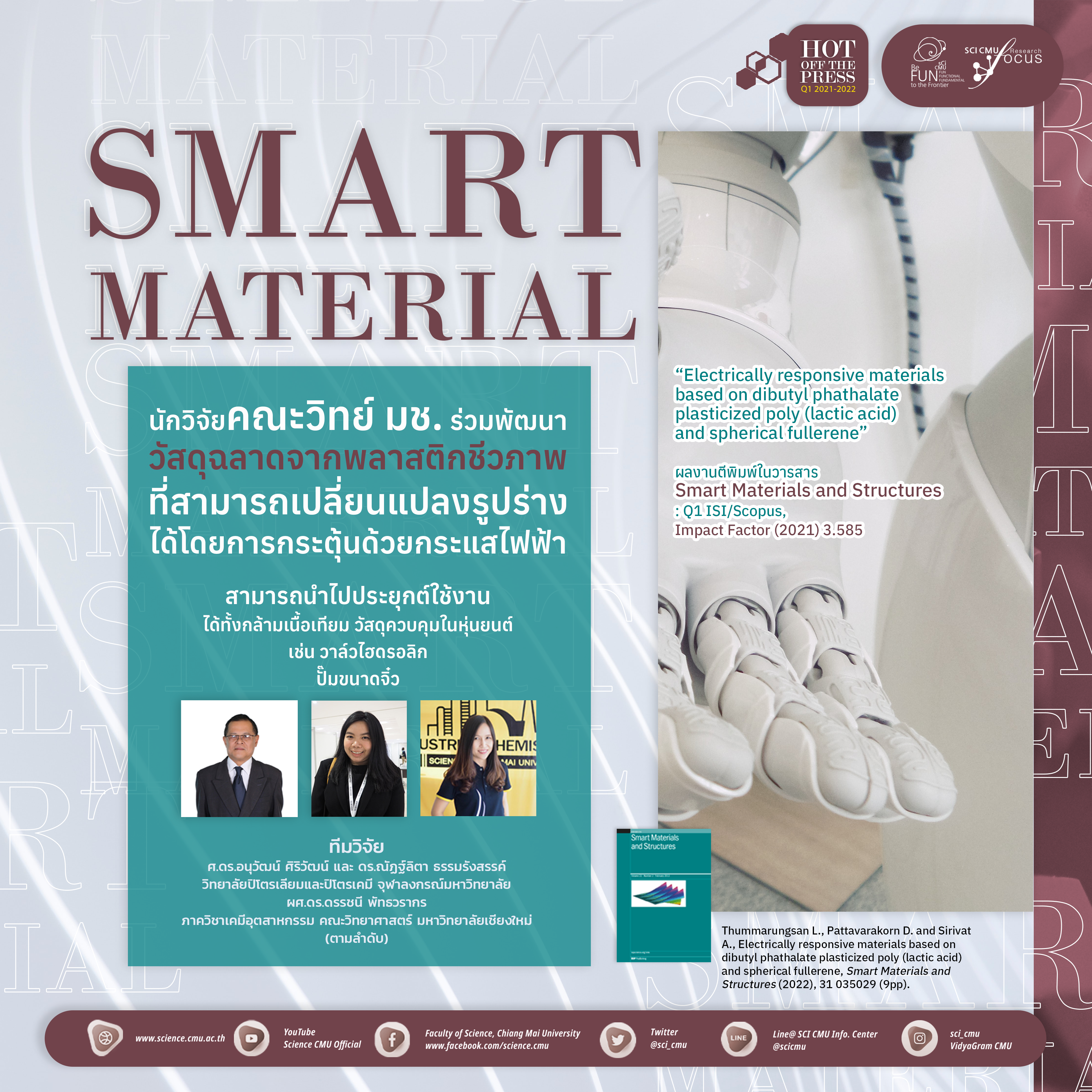 นักวิจัยคณะวิทย์ มช. ร่วมพัฒนาวัสดุฉลาด (SMART MATERIAL) จากพลาสติกชีวภาพ สามารถเปลี่ยนแปลงรูปร่างได้โดยการกระตุ้นด้วยกระแสไฟฟ้า นำไปประยุกต์ใช้งานได้หลากหลาย ทั้งกล้ามเนื้อเทียม วัสดุควบคุมในหุ่นยนต์ เช่น วาล์วไฮดรอลิก และปั๊มขนาดจิ๋ว อ่านต่อ Click
