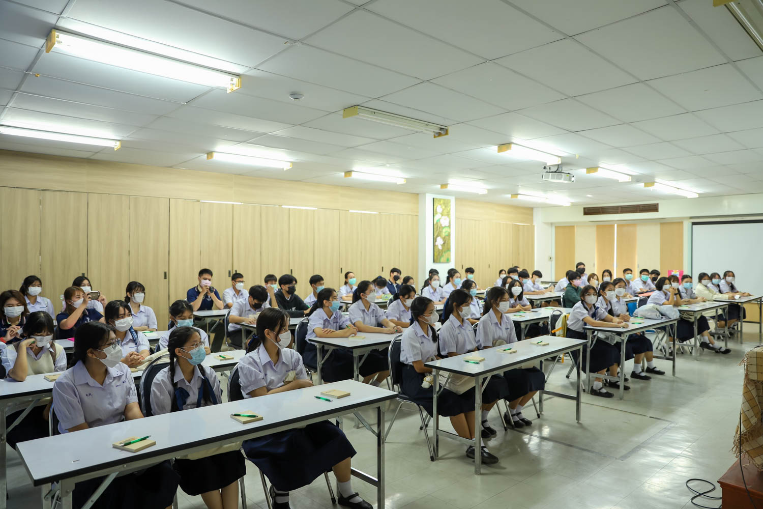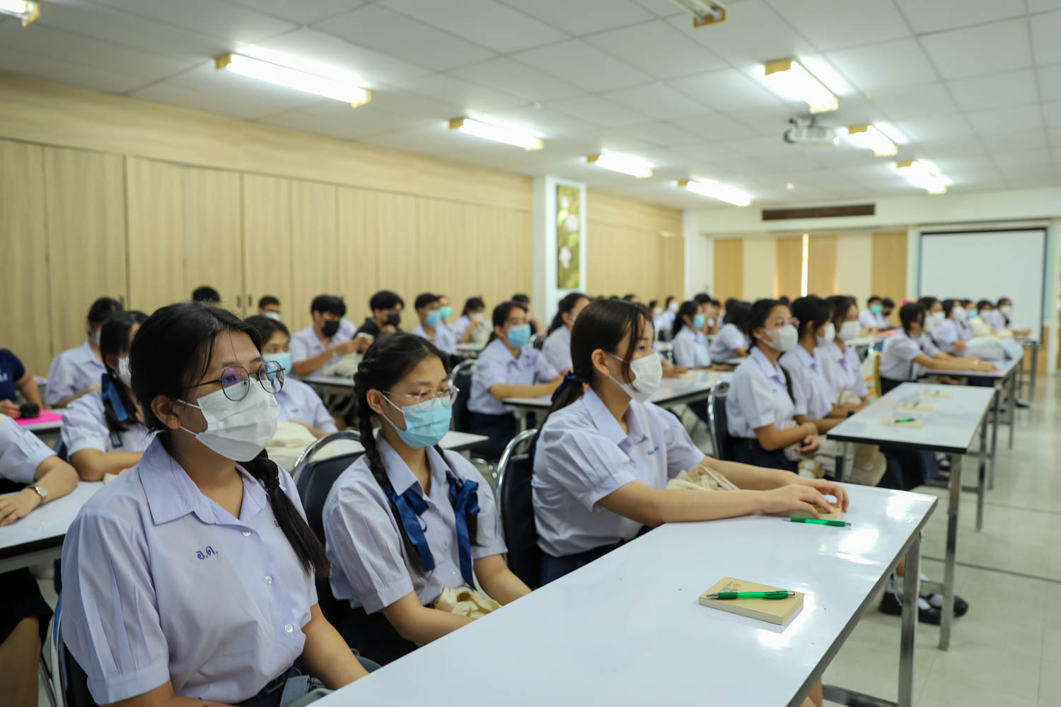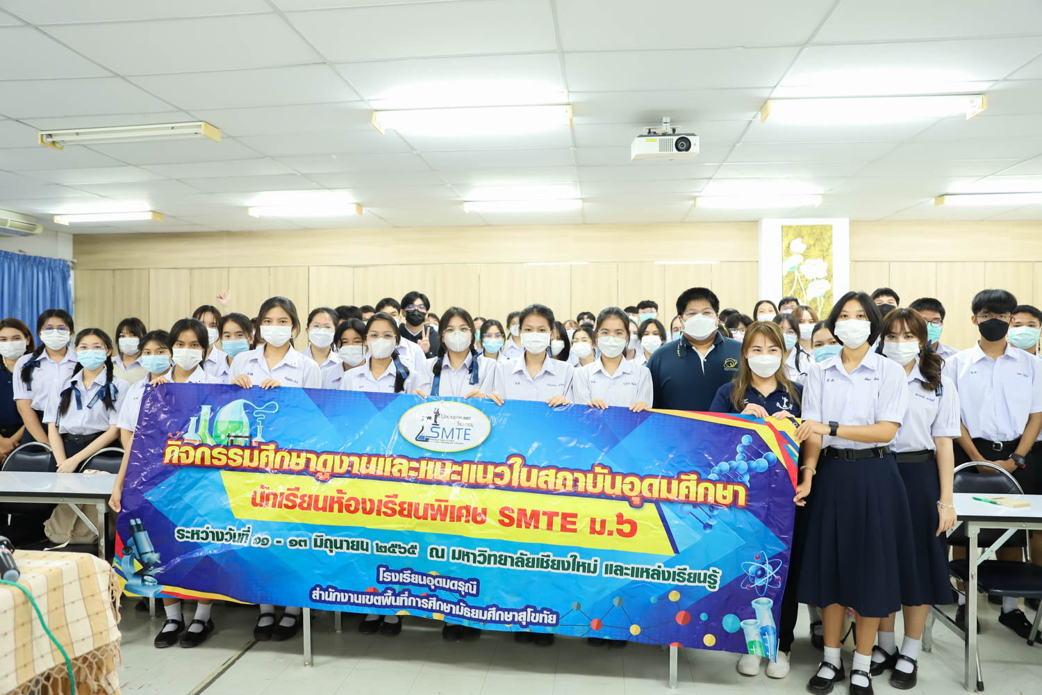วันที่ 13 มิถุนายน 2565 ผู้ช่วยศาสตราจารย์ ดร.ศุภณัฐ ชัยดี ผู้ช่วยคณบดีฝ่ายสื่อสารองค์กร คณะวิทยาศาสตร์ กล่าวต้อนรับ พร้อมกับบรรยายแนะนำหลักสูตร และภาพรวมการเรียนการสอนของคณะวิทยาศาสตร์ ให้แก่นักเรียนระดับมัธยมศึกษาตอนปลาย จากโรงเรียนอุดมดรุณี จังหวัดสุโขทัย ที่มาเยี่ยมชม และศึกษาดูงานด้านการเรียนการสอนของคณะฯ ณ ห้องสัมมนา ชั้น 2 อาคาร 40 ปี คณะวิทยาศาสตร์ เพื่อให้นักเรียนมีข้อมูลประกอบการตัดสินใจศึกษาต่อระดับอุมดมศึกษา ทั้งนี้ คณะฯ ได้เปิดโอกาสให้นักเรียนเข้าเยี่ยมชมห้องปฏิบัติการวิจัยพลาสมาและลำอนุภาค ณ ภาควิชาฟิสิกส์และวัสดุศาสตร์ และห้องปฏิบัติการทางสรีรวิทยาและเทคโนโลยีหลังการเก็บเกี่ยว ภาควิชาชีววิทยา เพื่อให้นักเรียนได้รับประสบการณ์การเรียนในห้องเรียนจริง