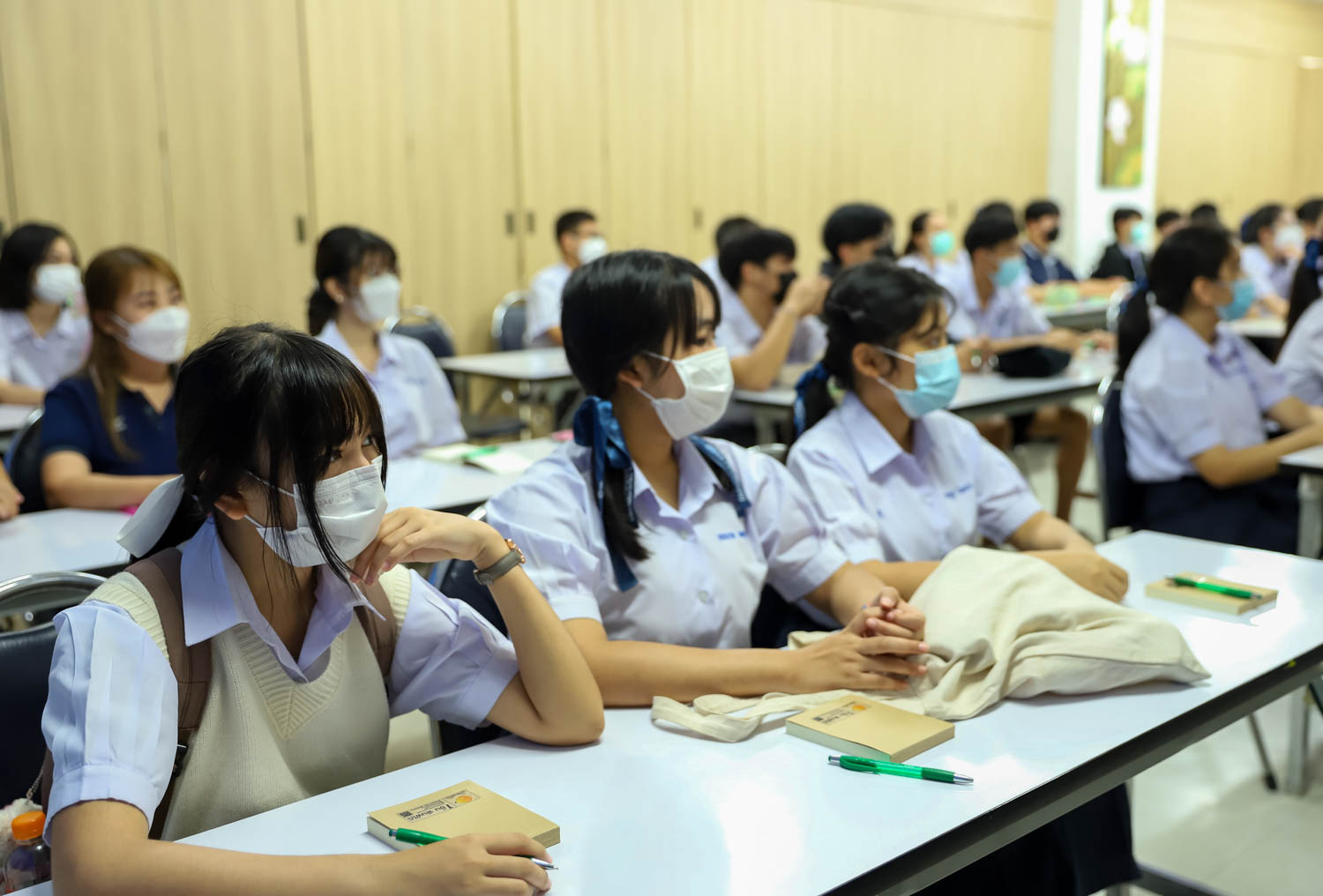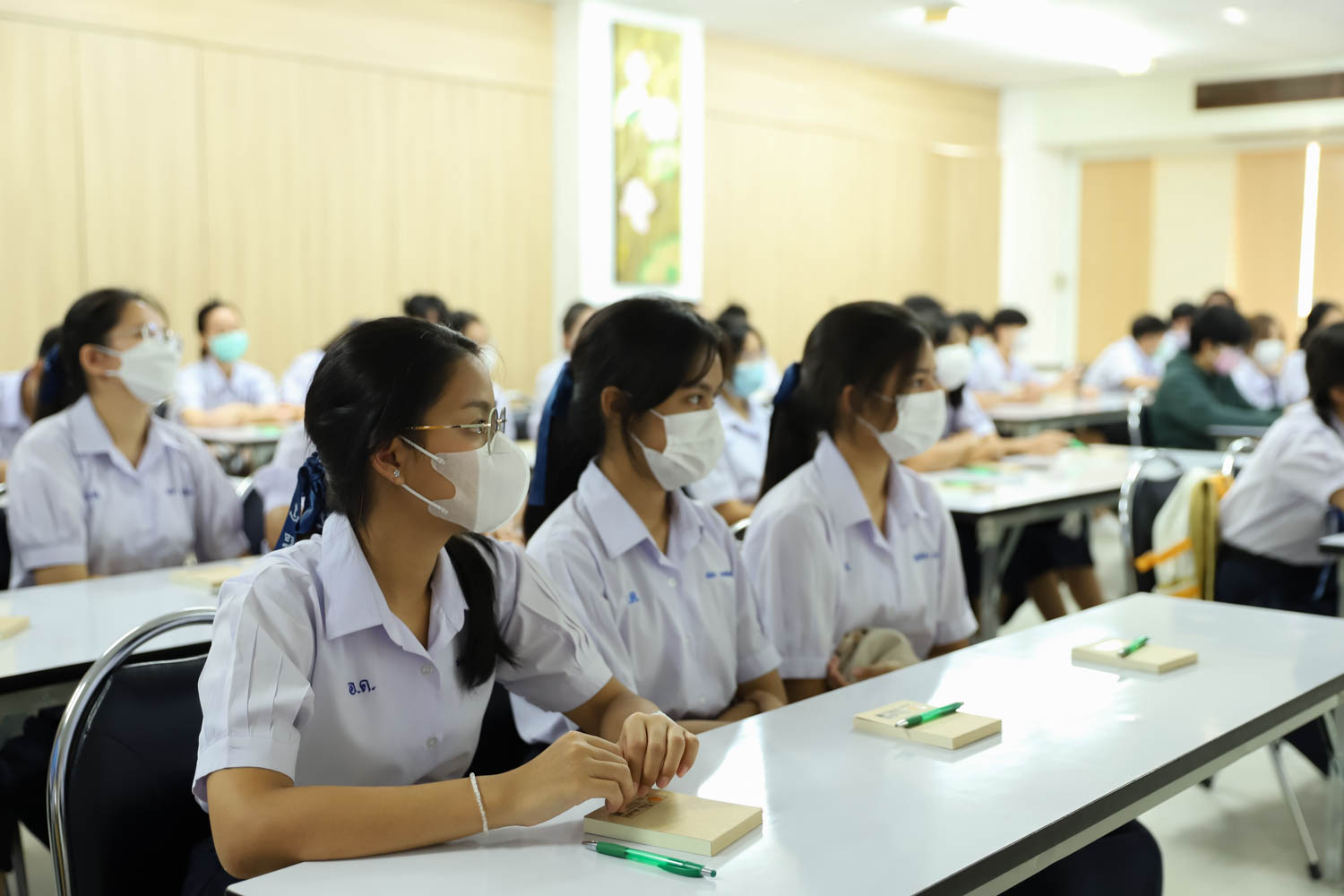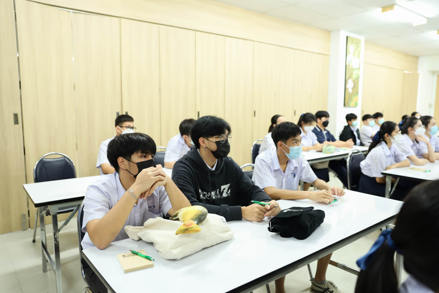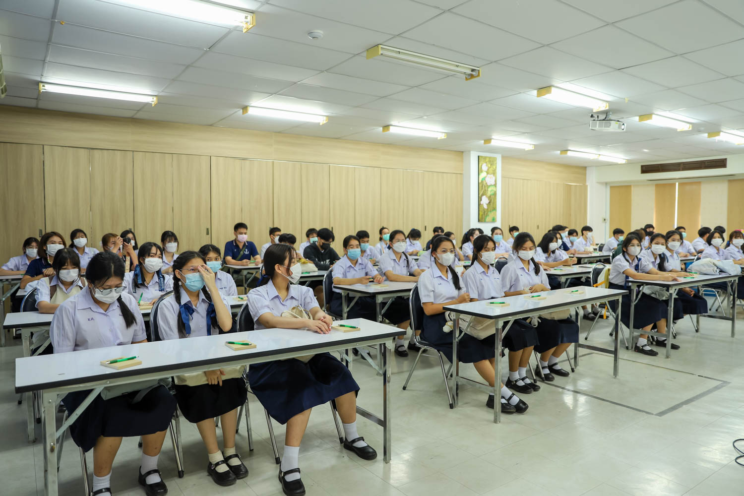 วันที่ 13 มิถุนายน 2565 ผู้ช่วยศาสตราจารย์ ดร.ศุภณัฐ ชัยดี ผู้ช่วยคณบดีฝ่ายสื่อสารองค์กร คณะวิทยาศาสตร์ กล่าวต้อนรับ พร้อมกับบรรยายแนะนำหลักสูตร และภาพรวมการเรียนการสอนของคณะวิทยาศาสตร์ ให้แก่นักเรียนระดับมัธยมศึกษาตอนปลาย จากโรงเรียนอุดมดรุณี จังหวัดสุโขทัย ที่มาเยี่ยมชม และศึกษาดูงานด้านการเรียนการสอนของคณะฯ ณ ห้องสัมมนา ชั้น 2 อาคาร 40 ปี คณะวิทยาศาสตร์ เพื่อให้นักเรียนมีข้อมูลประกอบการตัดสินใจศึกษาต่อระดับอุมดมศึกษา ทั้งนี้ คณะฯ ได้เปิดโอกาสให้นักเรียนเข้าเยี่ยมชมห้องปฏิบัติการวิจัยพลาสมาและลำอนุภาค ณ ภาควิชาฟิสิกส์และวัสดุศาสตร์ และห้องปฏิบัติการทางสรีรวิทยาและเทคโนโลยีหลังการเก็บเกี่ยว ภาควิชาชีววิทยา เพื่อให้นักเรียนได้รับประสบการณ์การเรียนในห้องเรียนจริง