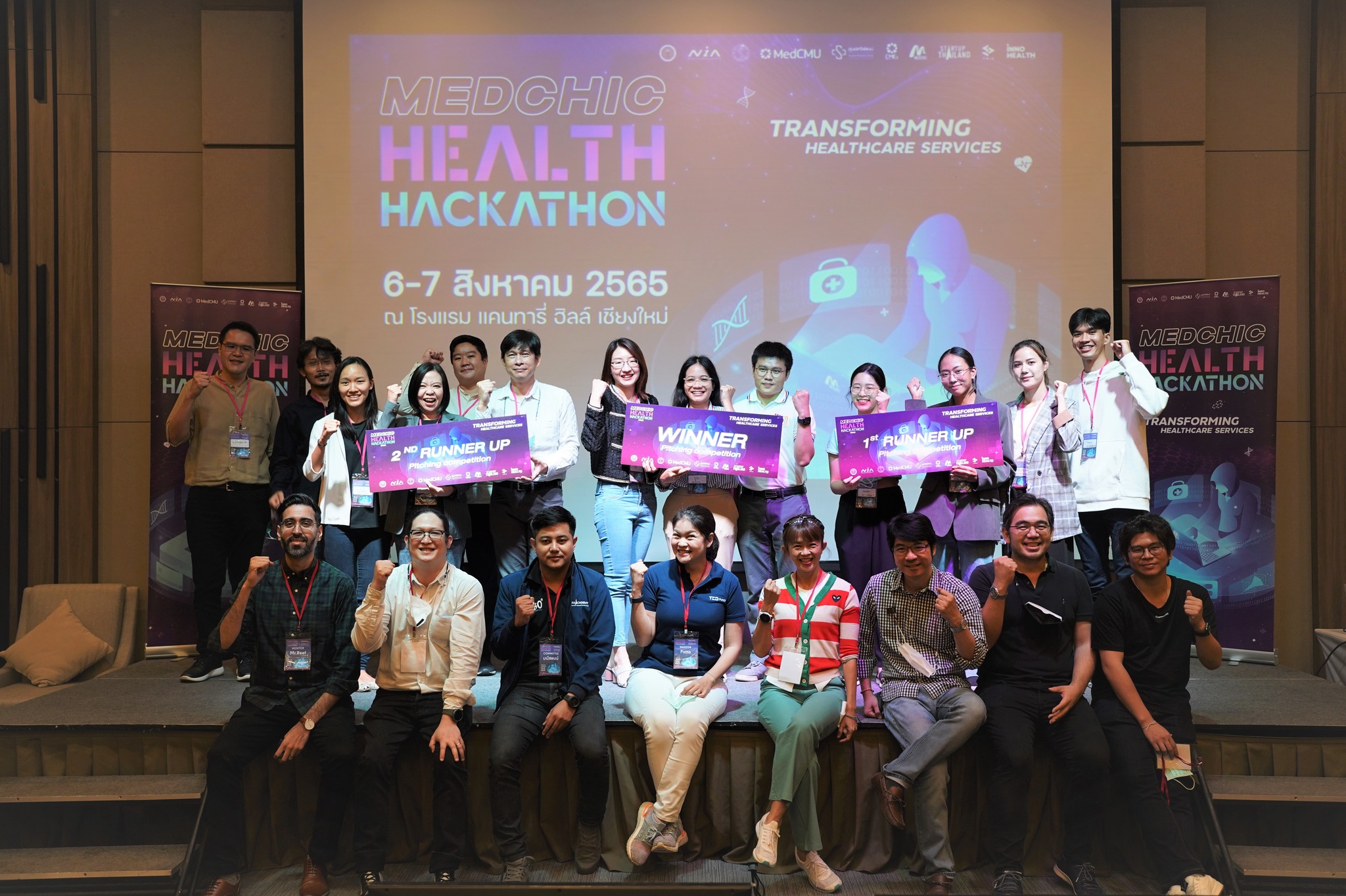ขอแสดงความยินดีกับทีม Ai In TBI ที่ได้รับรางวัลชนะเลิศ การแข่งขัน MEDCHIC Health Hackathon 2022 การแข่งขันเพื่อยกระดับ Solution การดูแลรักษาสุขภาพรูปแบบใหม่ ภายใต้ธีม “Transforming Healthcare Services” เมื่อวันที่ 6 - 7 สิงหาคม 2565 ณ โรงแรมแคนทารี่ ฮิลล์ เชียงใหม่ ซึ่งจัดโดย ศูนย์นวัตกรรมการแพทย์และสุขภาพ (MEDCHIC) คณะแพทยศาสตร์ มหาวิทยาลัยเชียงใหม่ ร่วมกับสำนักงานนวัตกรรมแห่งชาติ (องค์การมหาชน) หรือ NIA