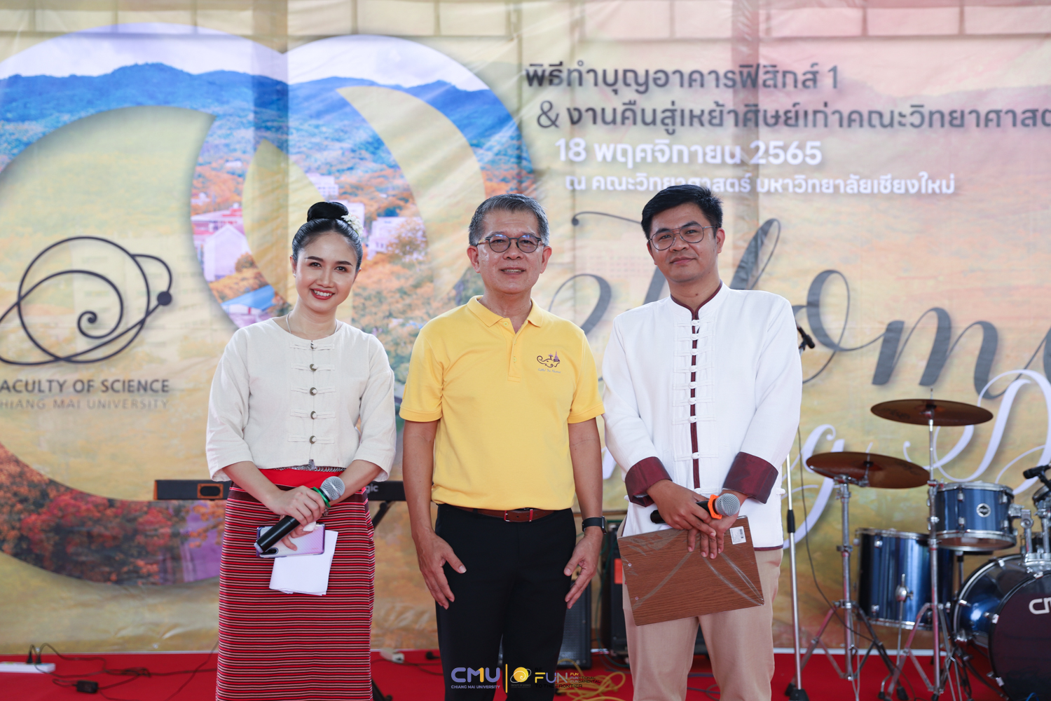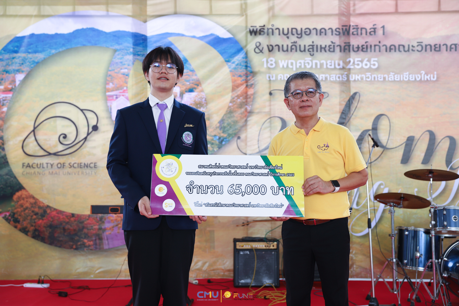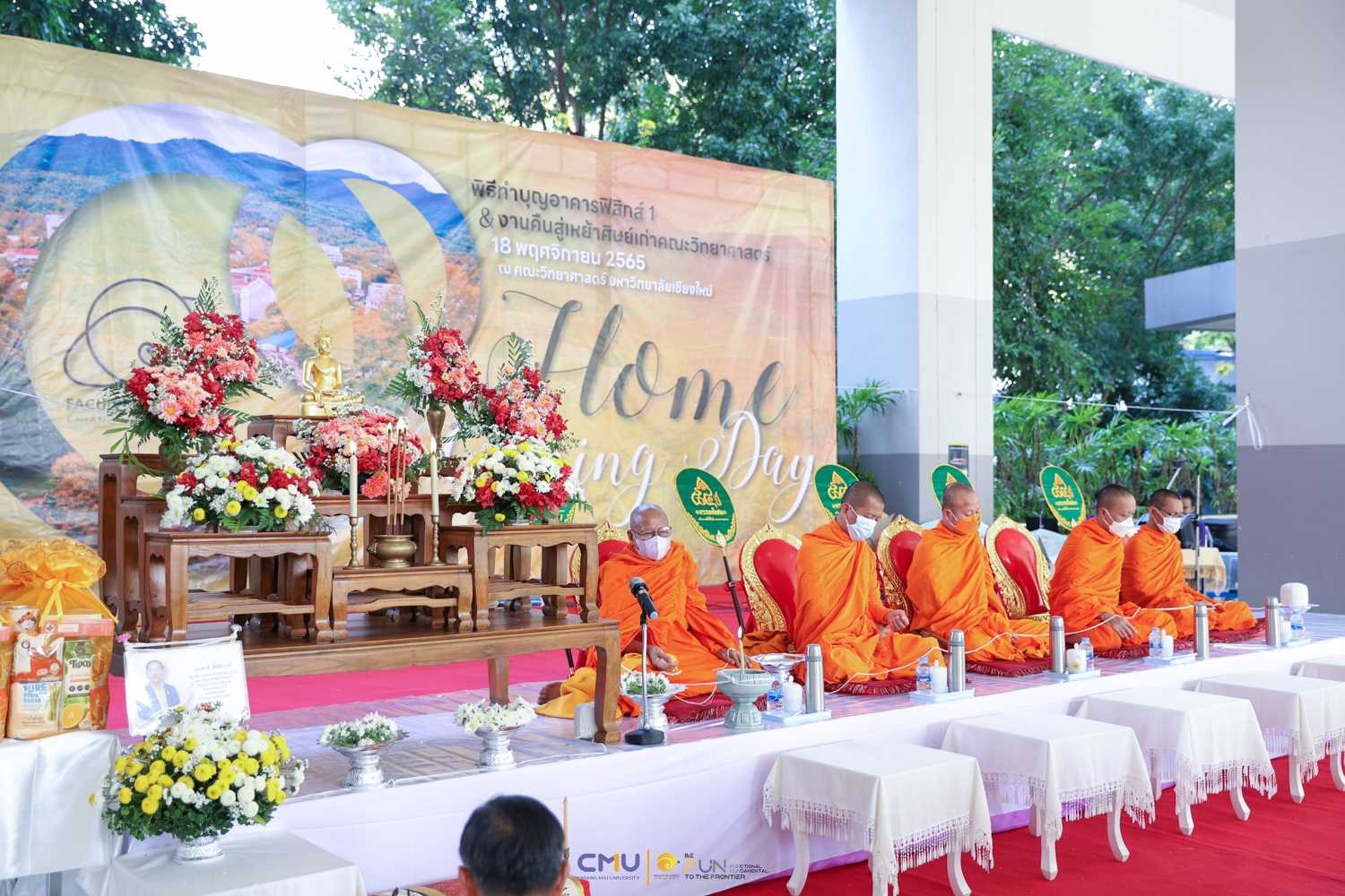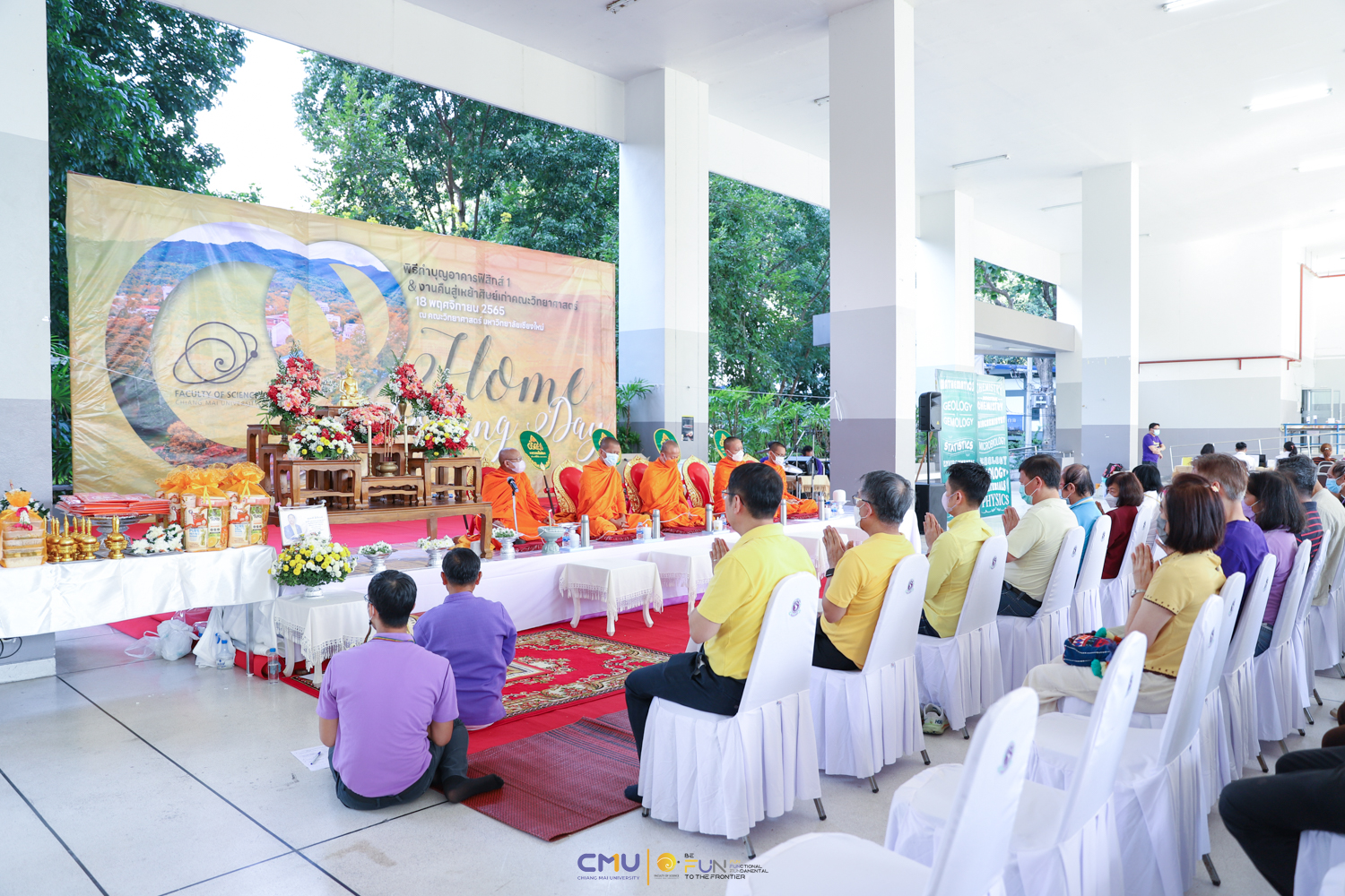 วันศุกร์ที่ 18 พฤศจิกายน 2565 คณะวิทยาศาสตร์จัดพิธีทำบุญตึกฟิสิกส์ 1 และงานคืนสู่เหย้าศิษย์เก่าคณะวิทยาศาสตร์ ณ อาคารฟิสิกส์ 1 และโถงชั้น 1 อาคาร 40 ปี คณะวิทยาศาสตร์ โดยในช่วงเช้า มีการจัดพิธีแสดงความระลึกถึง คุณชาลี ตั้งจีรวงษ์ ประธานกองทุน 60 ปี คณะวิทยาศาสตร์ (ท่านแรก) และพิธีทำบุญอุทิศส่วนกุศลแด่ผู้มีอุปการคุณ ตลอดจนคณาจารย์ และบุคลากรคณะวิทยาศาสตร์ที่ล่วงลับไปแล้ว จากนั้นมีการจัดงานคืนสู่เหย้าศิษย์เก่าคณะวิทยาศาสตร์ โดยมี ศาสตราจารย์ ดร.ธรณินทร์ ไชยเรืองศรี คณบดีคณะวิทยาศาสตร์ พร้อมด้วย ดร.สมหมาย เตชวาล นายกสมาคมศิษย์เก่าคณะวิทยาศาสตร์ ตลอดจนผู้บริหาร และศิษย์เก่าเข้าร่วมงาน ภายในงานมีการมอบเงินสนับสนุนกิจกรรมรับน้องขึ้นดอยจากสมาคมศิษย์เก่า พิธีรับมอบทุนจากศิษย์เก่า พิธีแสดงกตเวทิตาจิตแด่อาจารย์อาวุโส กิจกรรมของสมาคมศิษย์เก่า และการแสดงโดยวงดนตรีสากล คณะวิทยาศาสตร์ ซึ่งบรรยากาศในงานเป็นไปอย่างอบอุ่นและสนุกงาน