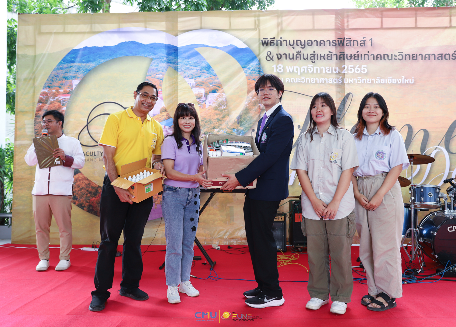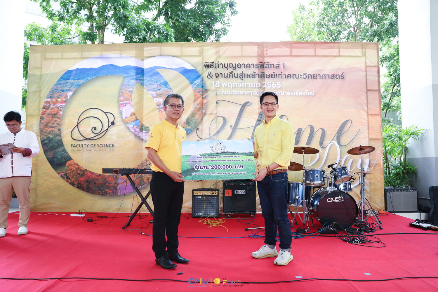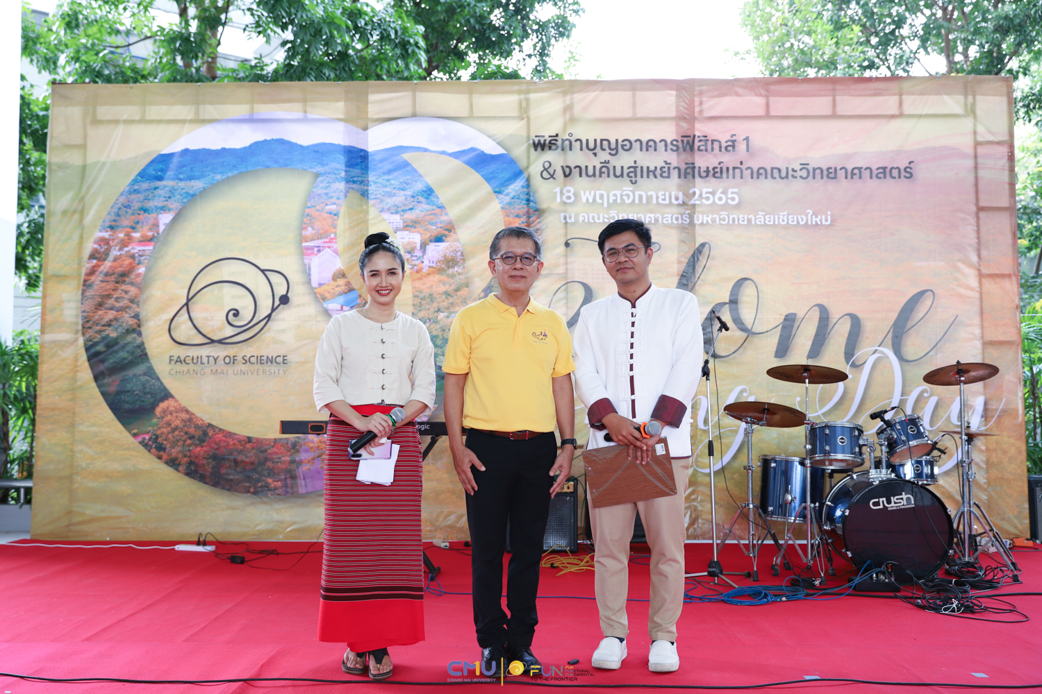 วันศุกร์ที่ 18 พฤศจิกายน 2565 คณะวิทยาศาสตร์จัดพิธีทำบุญตึกฟิสิกส์ 1 และงานคืนสู่เหย้าศิษย์เก่าคณะวิทยาศาสตร์ ณ อาคารฟิสิกส์ 1 และโถงชั้น 1 อาคาร 40 ปี คณะวิทยาศาสตร์ โดยในช่วงเช้า มีการจัดพิธีแสดงความระลึกถึง คุณชาลี ตั้งจีรวงษ์ ประธานกองทุน 60 ปี คณะวิทยาศาสตร์ (ท่านแรก) และพิธีทำบุญอุทิศส่วนกุศลแด่ผู้มีอุปการคุณ ตลอดจนคณาจารย์ และบุคลากรคณะวิทยาศาสตร์ที่ล่วงลับไปแล้ว จากนั้นมีการจัดงานคืนสู่เหย้าศิษย์เก่าคณะวิทยาศาสตร์ โดยมี ศาสตราจารย์ ดร.ธรณินทร์ ไชยเรืองศรี คณบดีคณะวิทยาศาสตร์ พร้อมด้วย ดร.สมหมาย เตชวาล นายกสมาคมศิษย์เก่าคณะวิทยาศาสตร์ ตลอดจนผู้บริหาร และศิษย์เก่าเข้าร่วมงาน ภายในงานมีการมอบเงินสนับสนุนกิจกรรมรับน้องขึ้นดอยจากสมาคมศิษย์เก่า พิธีรับมอบทุนจากศิษย์เก่า พิธีแสดงกตเวทิตาจิตแด่อาจารย์อาวุโส กิจกรรมของสมาคมศิษย์เก่า และการแสดงโดยวงดนตรีสากล คณะวิทยาศาสตร์ ซึ่งบรรยากาศในงานเป็นไปอย่างอบอุ่นและสนุกงาน