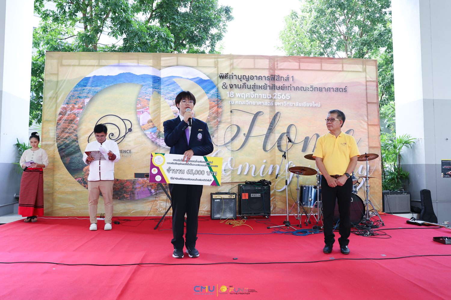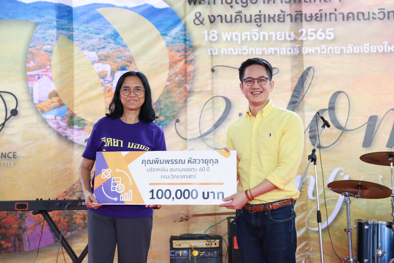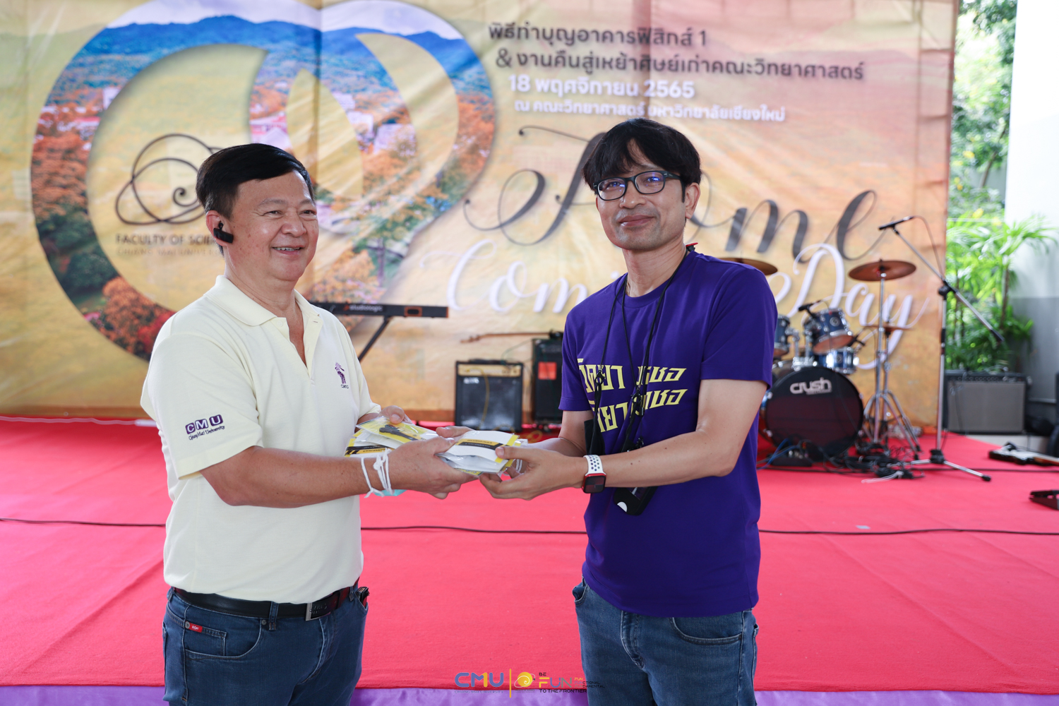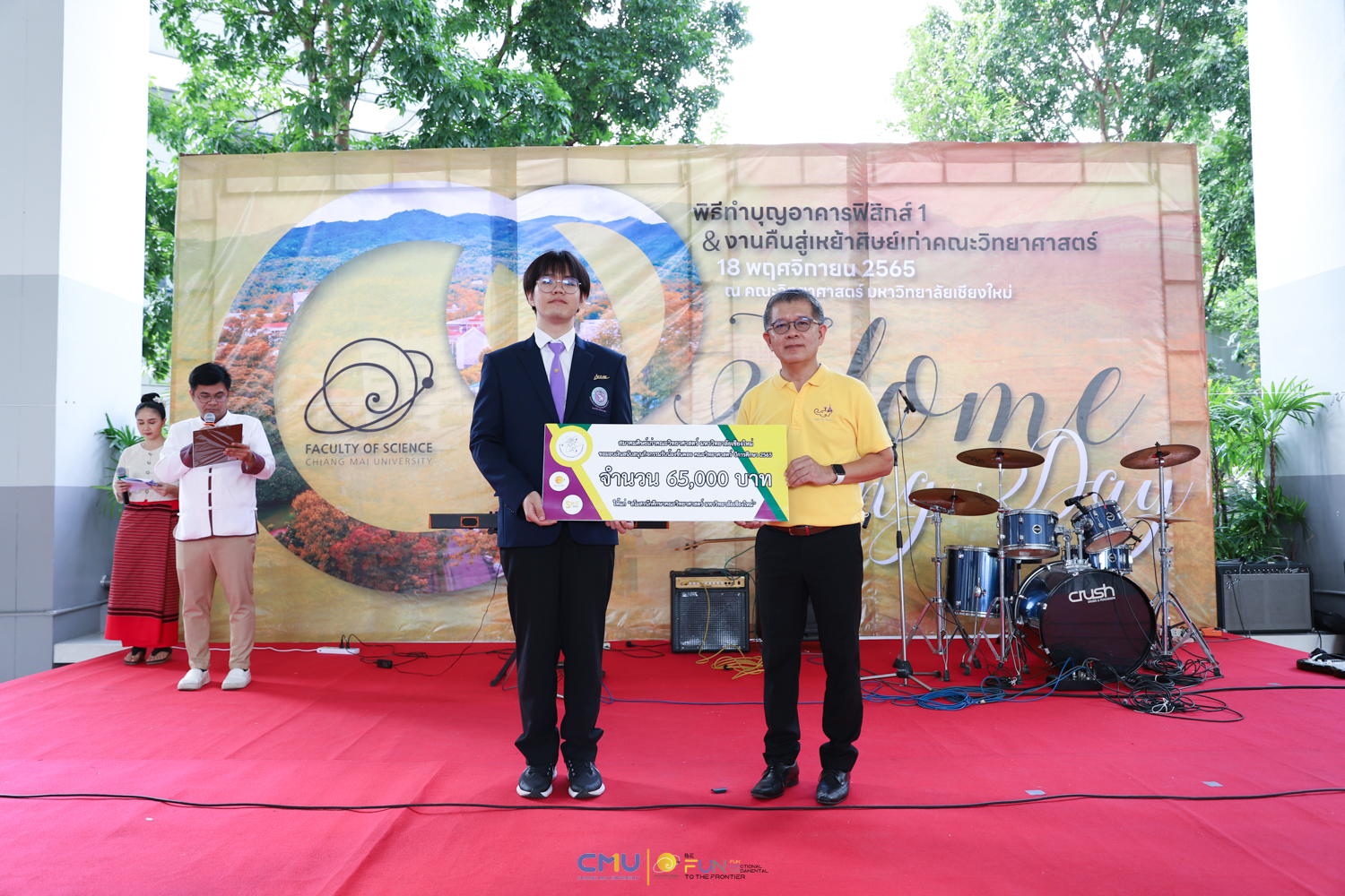 วันศุกร์ที่ 18 พฤศจิกายน 2565 คณะวิทยาศาสตร์จัดพิธีทำบุญตึกฟิสิกส์ 1 และงานคืนสู่เหย้าศิษย์เก่าคณะวิทยาศาสตร์ ณ อาคารฟิสิกส์ 1 และโถงชั้น 1 อาคาร 40 ปี คณะวิทยาศาสตร์ โดยในช่วงเช้า มีการจัดพิธีแสดงความระลึกถึง คุณชาลี ตั้งจีรวงษ์ ประธานกองทุน 60 ปี คณะวิทยาศาสตร์ (ท่านแรก) และพิธีทำบุญอุทิศส่วนกุศลแด่ผู้มีอุปการคุณ ตลอดจนคณาจารย์ และบุคลากรคณะวิทยาศาสตร์ที่ล่วงลับไปแล้ว จากนั้นมีการจัดงานคืนสู่เหย้าศิษย์เก่าคณะวิทยาศาสตร์ โดยมี ศาสตราจารย์ ดร.ธรณินทร์ ไชยเรืองศรี คณบดีคณะวิทยาศาสตร์ พร้อมด้วย ดร.สมหมาย เตชวาล นายกสมาคมศิษย์เก่าคณะวิทยาศาสตร์ ตลอดจนผู้บริหาร และศิษย์เก่าเข้าร่วมงาน ภายในงานมีการมอบเงินสนับสนุนกิจกรรมรับน้องขึ้นดอยจากสมาคมศิษย์เก่า พิธีรับมอบทุนจากศิษย์เก่า พิธีแสดงกตเวทิตาจิตแด่อาจารย์อาวุโส กิจกรรมของสมาคมศิษย์เก่า และการแสดงโดยวงดนตรีสากล คณะวิทยาศาสตร์ ซึ่งบรรยากาศในงานเป็นไปอย่างอบอุ่นและสนุกงาน