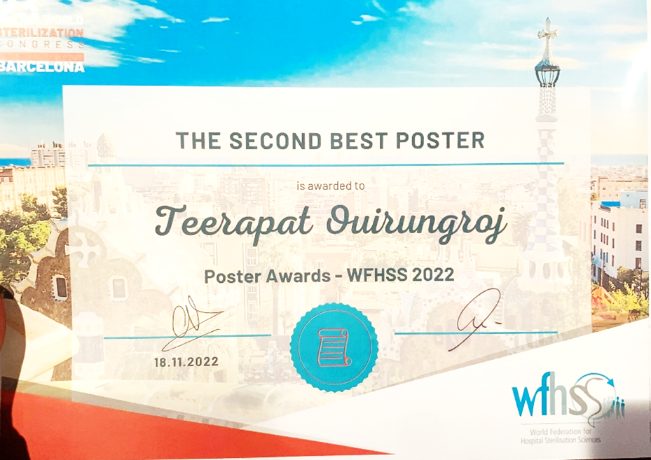 [3] Teerapat Ouirungroj, A smart-detection approach for protein residuals to evaluate the cleaning efficacy of reusable medical and surgical devices, 19th NOVEMBER 2022, 23st WORLD STERILIZATION CONGRESS, Barcelona, Spain.