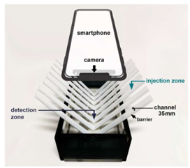 ทีมนักวิจัยมหาวิทยาลัยเชียงใหม่ ที่รวมนักวิจัยที่มีความความเชี่ยวชาญจากหลายหน่วยงาน ได้แก่ คณะวิทยาศาสตร์ คณะเภสัชศาสตร์ ผ่านกลุ่มวิจัยความเป็นเลิศนวัตกรรมวิทยาศาสตร์และเทคโนโลยีการวิเคราะห์เพื่อเศรษฐกิจและสังคมบนความหลากหลายทางชีวภาพ (Center of Excellence for Innovation in Analytical Science and Technology for Biodiversity-based Economic and Society (I-ANALY-S-T_B.BES-CMU)) ได้ร่วมกันพัฒนาแพลตฟอร์มการวิเคราะห์ทางเคมีแนวใหม่ ที่อาศัยการเคลื่อนที่ของหยด (platform with moving drop) โดยใช้วัสดุอุปกรณ์ที่หาได้ง่ายเป็นส่วนประกอบ เช่น ก้านคนกาแฟ ซึ่งสามารถทำการวิเคราะห์โดยใช้ปริมาตรในระดับไมโครลิตร ติดตามตรวจวัดปฏิกิริยาเคมีที่เกิดขึ้นด้วยสมาร์ทโฟน