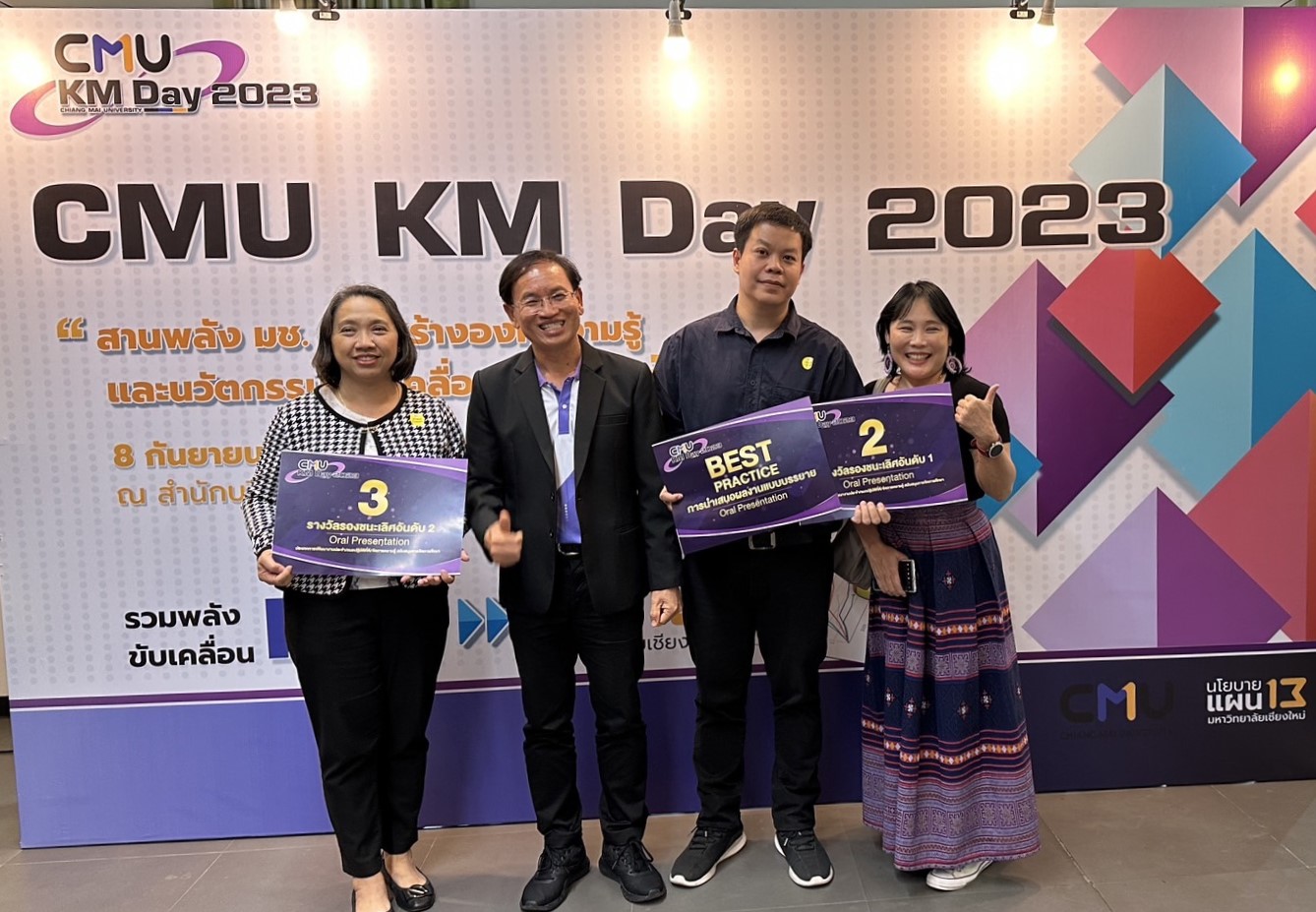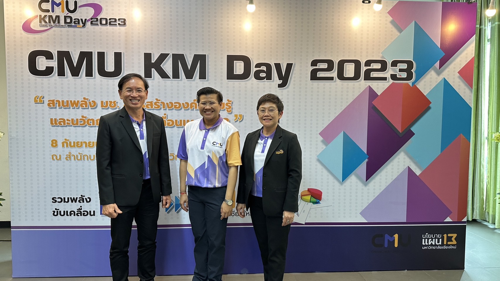 งาน CMU - KM Day ประจำปี 2566 จัดโดยมหาวิทยาลัยเชียงใหม่ โดยกองบริหารงานบุคคล ร่วมกับคณะเภสัชศาสตร์ และคณะพยาบาลศาสตร์ สำนักบริการวิชาการ สำนักบริการเทคโนโลยีสารสนเทศ และสภาพนักงาน เครือข่ายหัวหน้างานบริหารและธุรการ เครือข่ายวิจัยและนวัตกรรมบุคลากรสายสนับสนุน เครือข่ายบริหารงานบุคคล มหาวิทยาลัยเชียงใหม่ ได้จัดโครงการ CMU - KM Day ประจำปี 2566 พัฒนางานประจำนำสู่มหาวิทยาลัยแห่งความสุข สำหรับบุคลากรสายปฏิบัติการ มหาวิทยาลัยเชียงใหม่ “สานพลัง มช. สรรสร้างองค์ความรู้ และนวัตกรรม ขับเคลื่อนแผนฯ 13” ณ สำนักบริการวิชาการ มหาวิทยาลัยเชียงใหม่ เมื่อวันศุกร์ที่ 8 กันยายน 2566