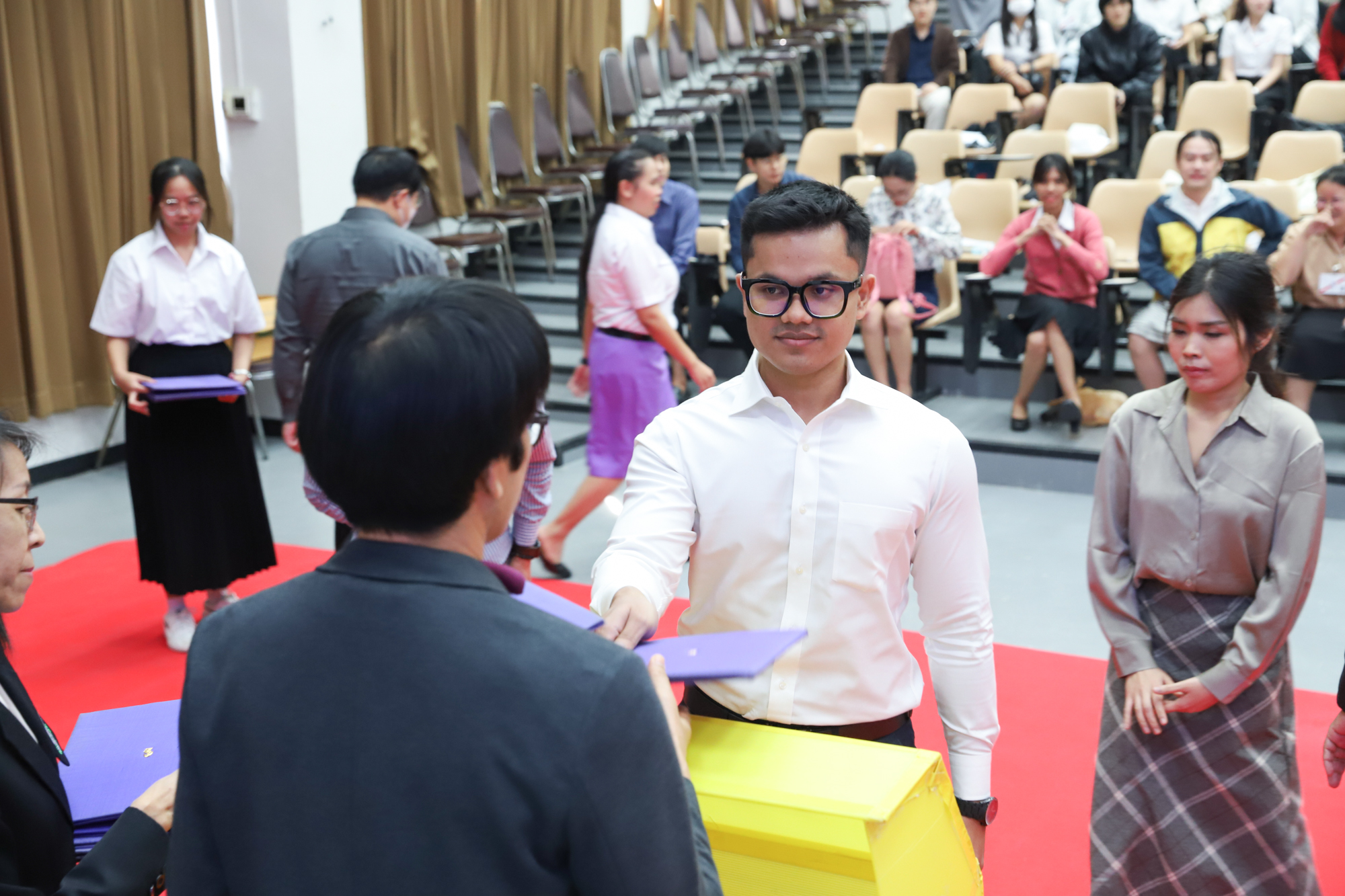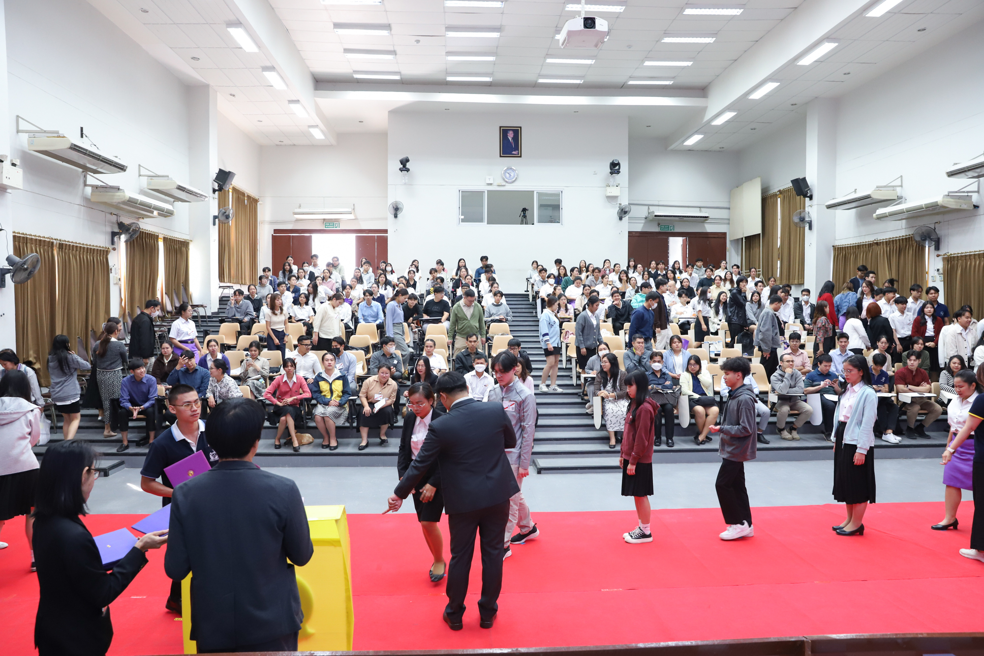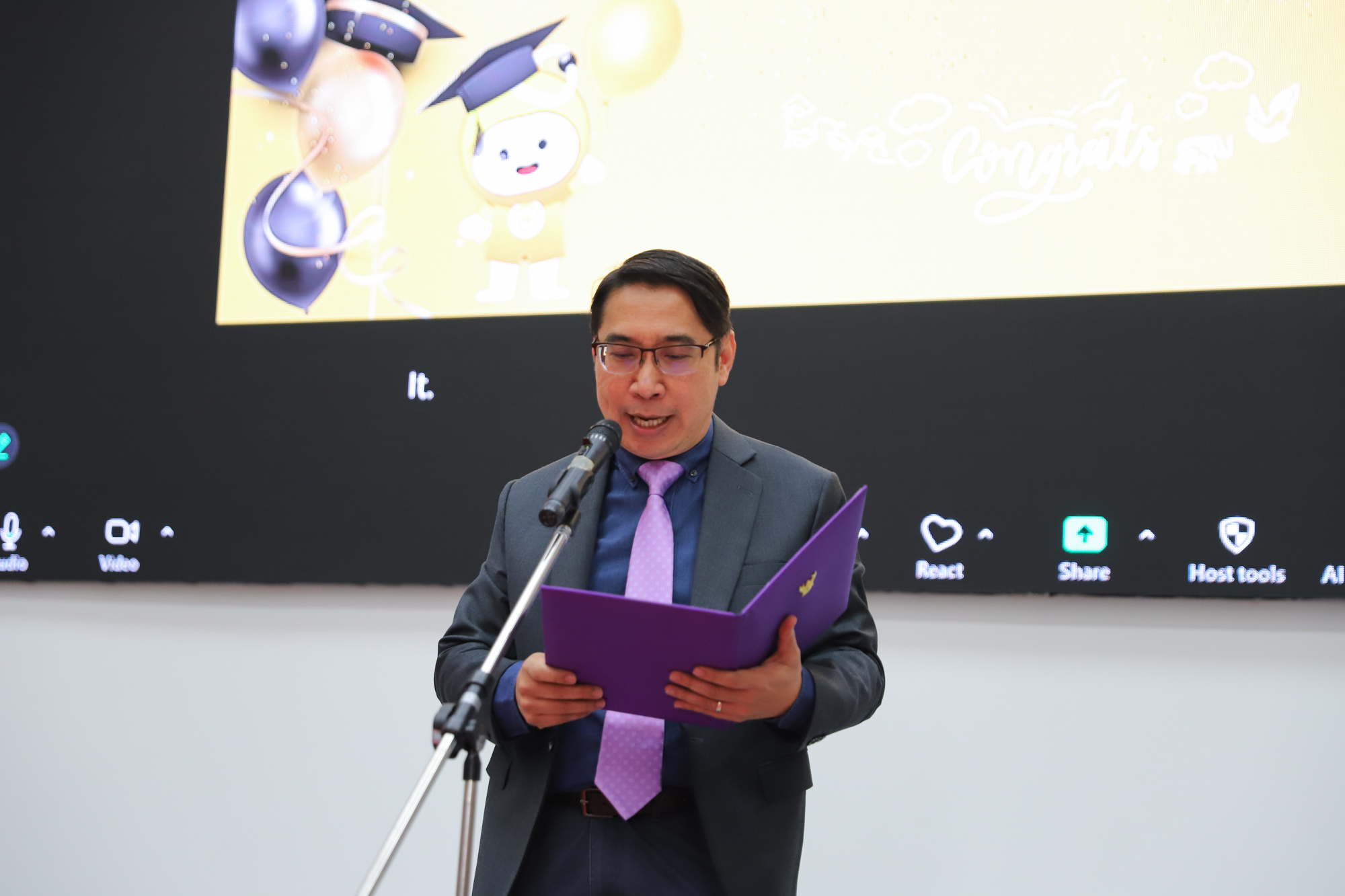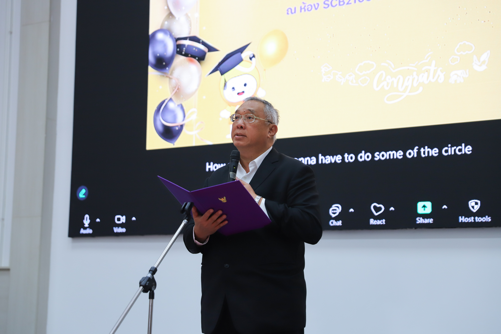 ศาสตราจารย์ (เชี่ยวชาญพิเศษ) ดร.ธรณินทร์ ไชยเรืองศรี คณบดีคณะวิทยาศาสตร์ และคุณพร้อมพร อิศรางกูร ณ อยุธยา นายกสมาคมนักศึกษาเก่าคณะวิทยาศาสตร์ กล่าวต้อนรับ และแสดงความยินดีกับบัณฑิตใหม่ของคณะวิทยาศาสตร์ ที่จะเข้ารับพระราชทานปริญญาบัตร ครั้งที่ 59 ของมหาวิทยาลัยเชียงใหม่ ในวันที่ 15-16 มกราคม 2568 ในการฝึกซ้อมเข้ารับพระราชทานปริญญาบัตรของบัณฑิตคณะวิทยาศาสตร์ เมื่อวันที่ 12 มกราคม 2568 ณ ห้องบรรยาย SCB2100 อาคาร 40 ปี คณะวิทยาศาสตร์