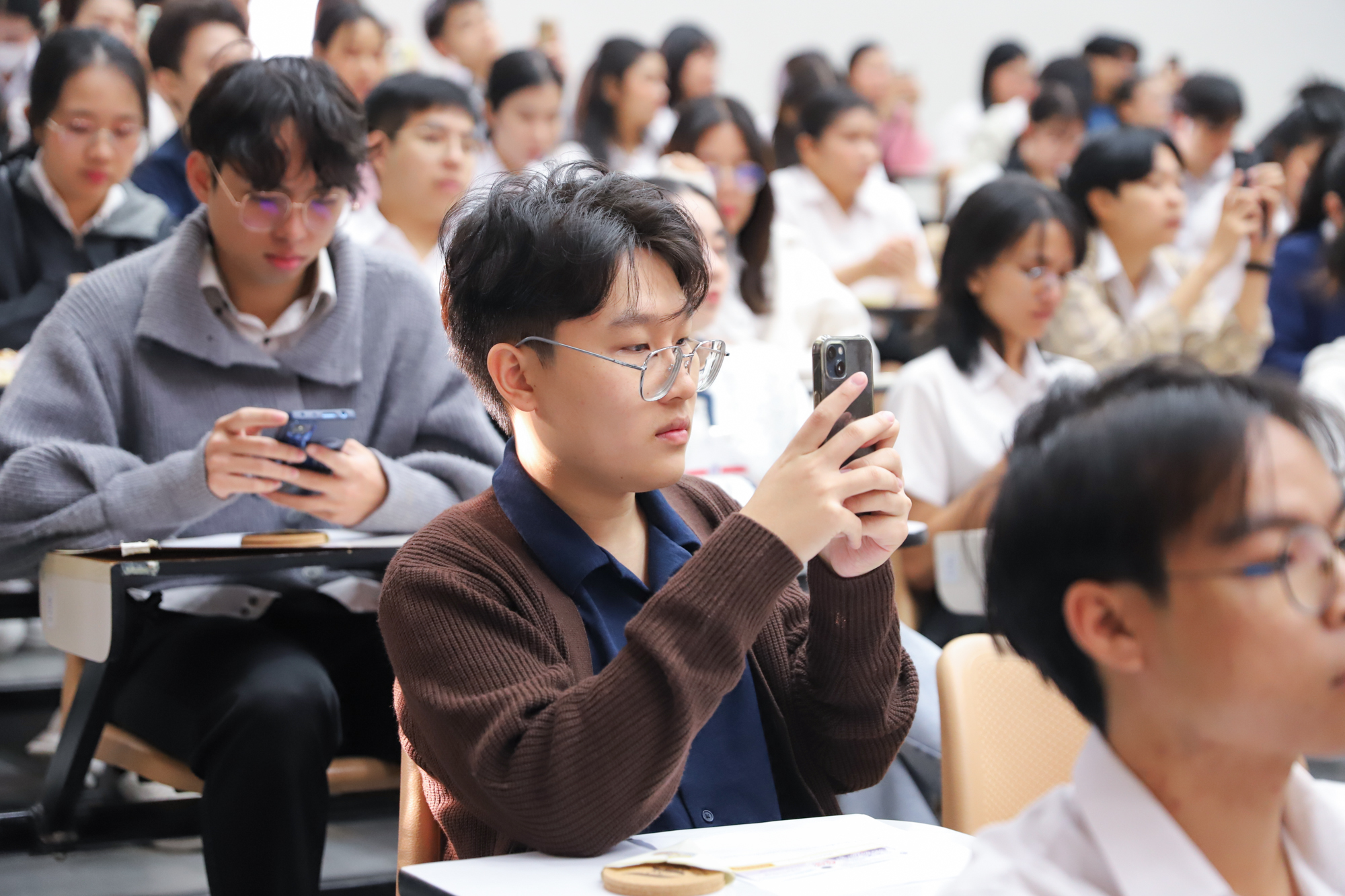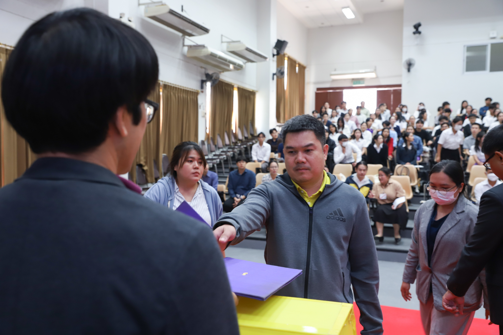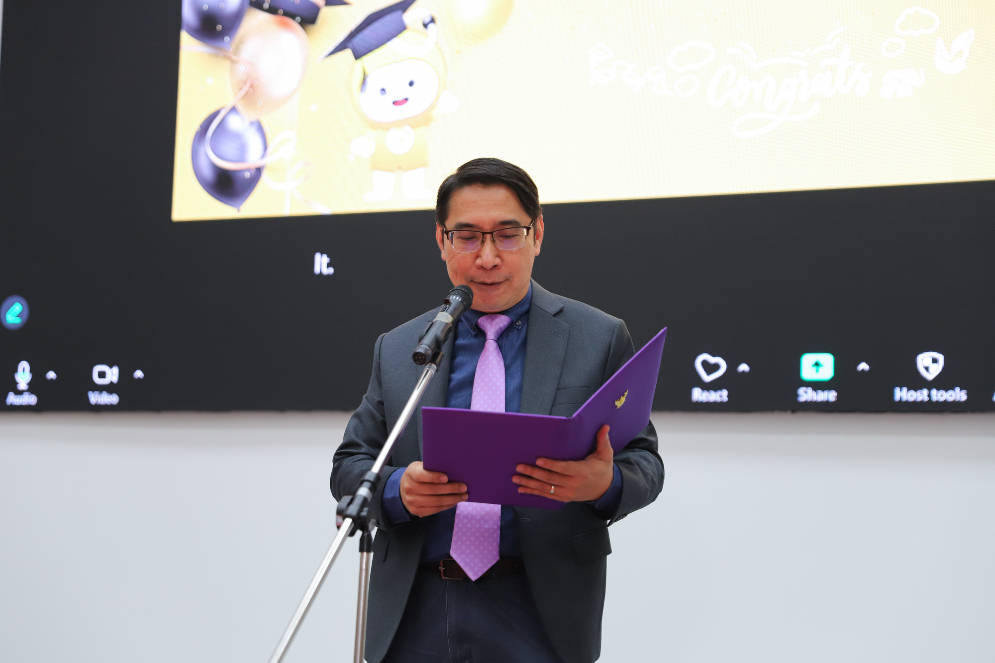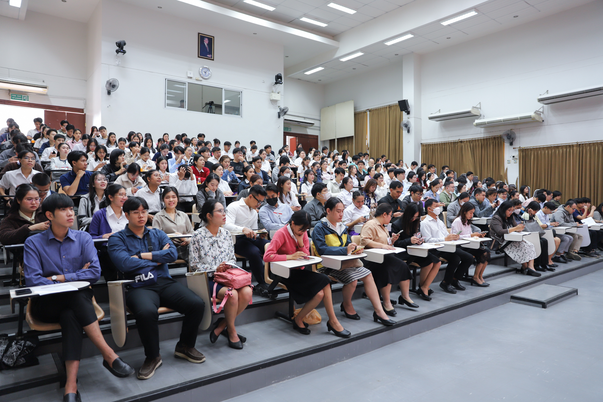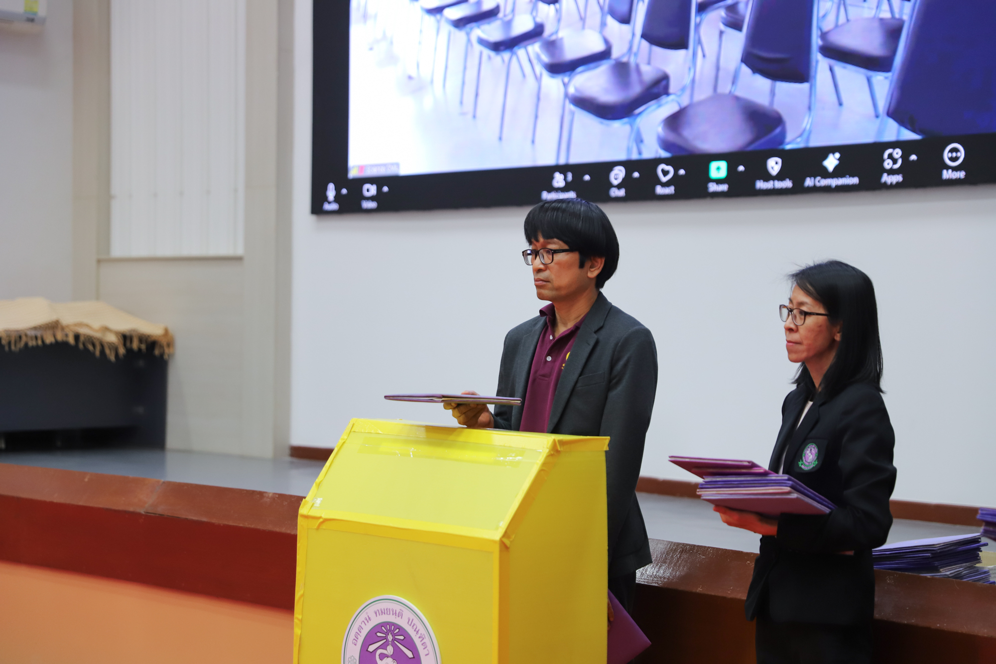 ศาสตราจารย์ (เชี่ยวชาญพิเศษ) ดร.ธรณินทร์ ไชยเรืองศรี คณบดีคณะวิทยาศาสตร์ และคุณพร้อมพร อิศรางกูร ณ อยุธยา นายกสมาคมนักศึกษาเก่าคณะวิทยาศาสตร์ กล่าวต้อนรับ และแสดงความยินดีกับบัณฑิตใหม่ของคณะวิทยาศาสตร์ ที่จะเข้ารับพระราชทานปริญญาบัตร ครั้งที่ 59 ของมหาวิทยาลัยเชียงใหม่ ในวันที่ 15-16 มกราคม 2568 ในการฝึกซ้อมเข้ารับพระราชทานปริญญาบัตรของบัณฑิตคณะวิทยาศาสตร์ เมื่อวันที่ 12 มกราคม 2568 ณ ห้องบรรยาย SCB2100 อาคาร 40 ปี คณะวิทยาศาสตร์